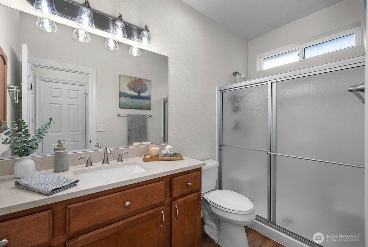 Welcome to this beautifully maintained South point floor plan in the sought-after 55+ Jubilee community, where pride of ownership shines throughout. Recent updates include a new roof (2023) and exterior paint (2019), adding both value and peace of mind. Inside, bright natural light fills the space, highlighting the kitchen’s hardwood floors, quartz countertops, upgraded cabinetry, pull-out shelves, and a new dishwasher (2022). The living room opens to a private back patio overlooking professionally landscaped backyard, featuring a charming corner seating area and ample space for gardening and creativity. The primary bedroom offers a bay window, walk-in closet, and an additional linen closet, while the primary bath boasts quartz counters and a walk-in shower with built-in seat. The second bedroom/den includes a generous walk-in closet, and the second bath is enhanced with quartz countertops and a solar tube for natural light. In the garage, you’ll find a convenient workbench and overhead storage. Residents of Jubilee enjoy an exceptional lifestyle with amenities that include a fitness center, pool, tennis courts, scenic walking trails, a private community beach, and over 80 clubs/groups. Enjoy easy access to nearby dining, shopping, and medical facilities all just minutes from the Jubilee community. (Images contain virtual staging)