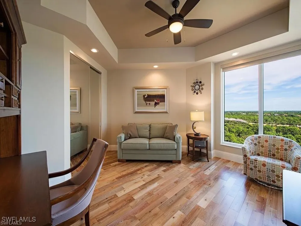 Highly Motivated – New Price! Experience unparalleled luxury in this stunning sky home, masterfully curated by Robb & Stucky Interiors. From your screened lanai, savor breathtaking eastern sunrises and mesmerizing western sunsets over the Gulf and Estero Bay. Convenience meets security with two designated parking spaces and nearby storage. Step into your private, secured elevator lobby and discover a spacious residence featuring three bedrooms and three bathrooms. The chef’s kitchen boasts a Wolfe gas cooktop, wall oven, convection microwave and premium Subzero refrigerator. Retreat to the lavish master suite, complete with a private sitting area, expansive custom walk-in closets for both him and her, and an opulent en-suite bathroom featuring a walk-in shower and soaking tub. Exclusive amenities abound, including a rooftop social lounge, fitness center, theater, billiard room, sauna, and golf training facility. Indulge in the negative-edge pool, cabanas, pavilion dining, and two gas grills for entertaining. Beyond the condo, immerse yourself in the resort-style living of Bonita Bay—Memberships include five championship golf courses, sports/racquet center, world-class fitness and lifestyle facility, and luxury spa and salon. All residents can enjoy a private, new luxurious beach club, marina, scenic walking and biking trails, and three beautifully maintained parks offering bocce, tennis, pickleball, basketball and kayaking.