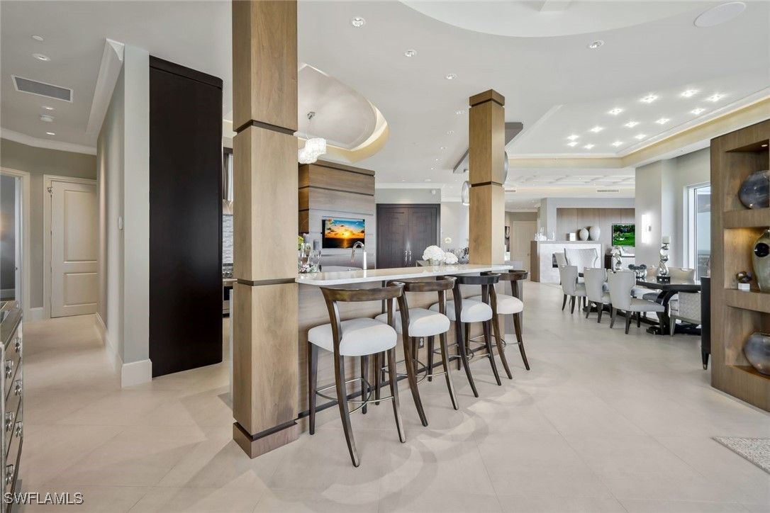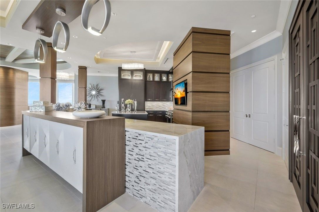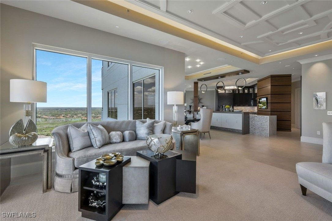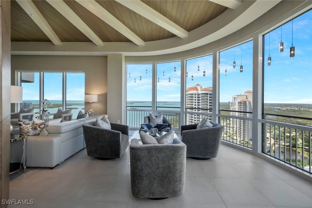 One of the most unique and stunning homes in all of Bonita Bay! ABSOLUTELY GORGEOUS with an esteemed PRIVATE TWO car garage - overlooking the Estero Bay and Gulf of Mexico! This home is pure sophistication and luxury! Located in the desirable Tavira high rise building, "move right in" to this exquisite home in the sky. This home's talented designer/owner lovingly designed the space - a true masterpiece! No expense was spared with the beautifully designed interior - from the ceiling details to the flooring to the state of the art kitchen. The dual secure coded elevators open to a private foyer leading into an elegant open-concept living space adorned with high-end exquisite finishes, a fireplace, and multiple balconies. Additional features include stunning kitchen cabinets, quartz counter-tops, a custom bar area, GORGEOUS lighting, VOLUME ceilings with extra height, a stunning primary suite, split bedrooms, several outdoor spaces and so much more. Entertain friends & family in this elegant (yet comfortable) home. This home is meant to be enjoyed - a true spiritual retreat! Tavira is one of Bonita Bay's most esteemed high rise buildings. Amenities include a beach park, nature trails, a marina and optional club membership including golf, tennis, several restaurants and a fitness center. All this and a PRIME location within Southwest Florida, close to world renowned beaches, restaurants, the burgeoning downtown Bonita Springs and the Southwest Florida Airport! Do not hesitate as homes in Bonita Bay like this one RARELY become available! Be sure to view the accompanying video of this home!
