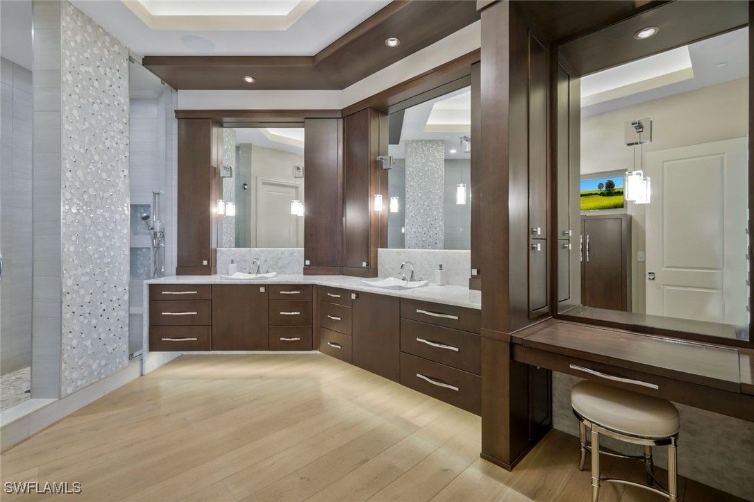 - Wet Bar, Breakfast Bar, Built-in Features, Bathtub, Closet Cabinetry, Coffered Ceiling(s), Dual Sinks, Entrance Foyer, Eat-in Kitchen, French Door(s)/Atrium Door(s), Fireplace, High Ceilings, Kitchen Island, Living/Dining Room, Multiple Shower Heads, Custom Mirrors, Pantry, Sitting Area In Primary Bedroom, Separate Shower, Cable TV, Bar