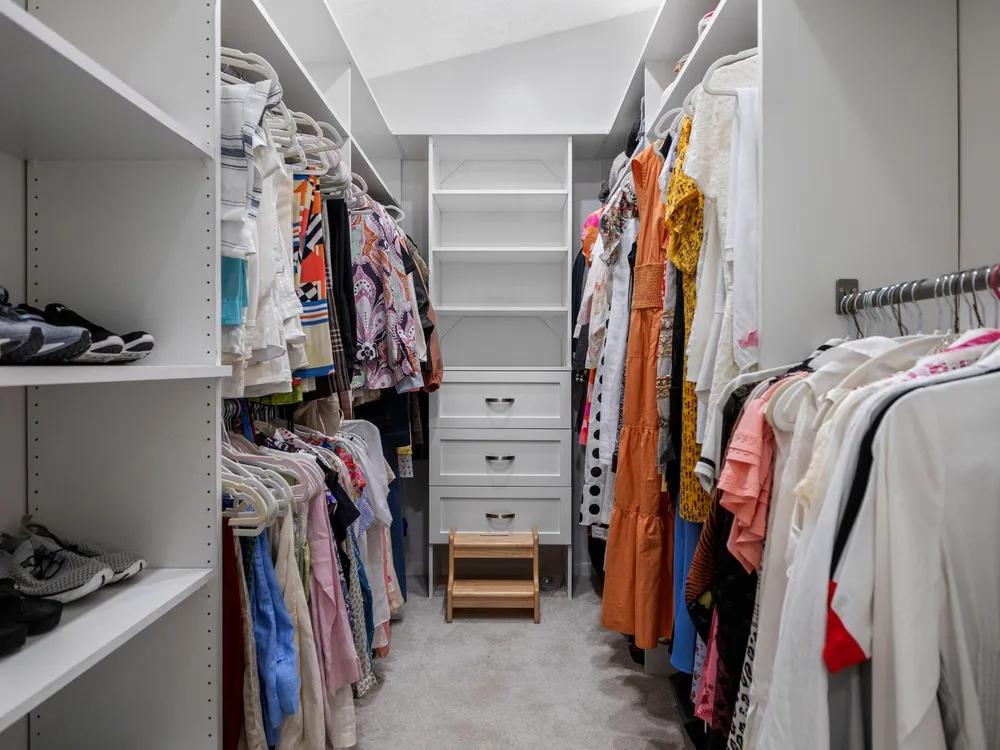 - Built-in Shelving, Cathedral Ceiling(s), Entrance Foyer, Kitchen Island, Pantry, Split Bedrooms, Walk-In Closet(s), Great Room, Living/Dining Room, Single Hung Wood Window(s), Sliding Window(s), Primary Downstairs, Separate Shower