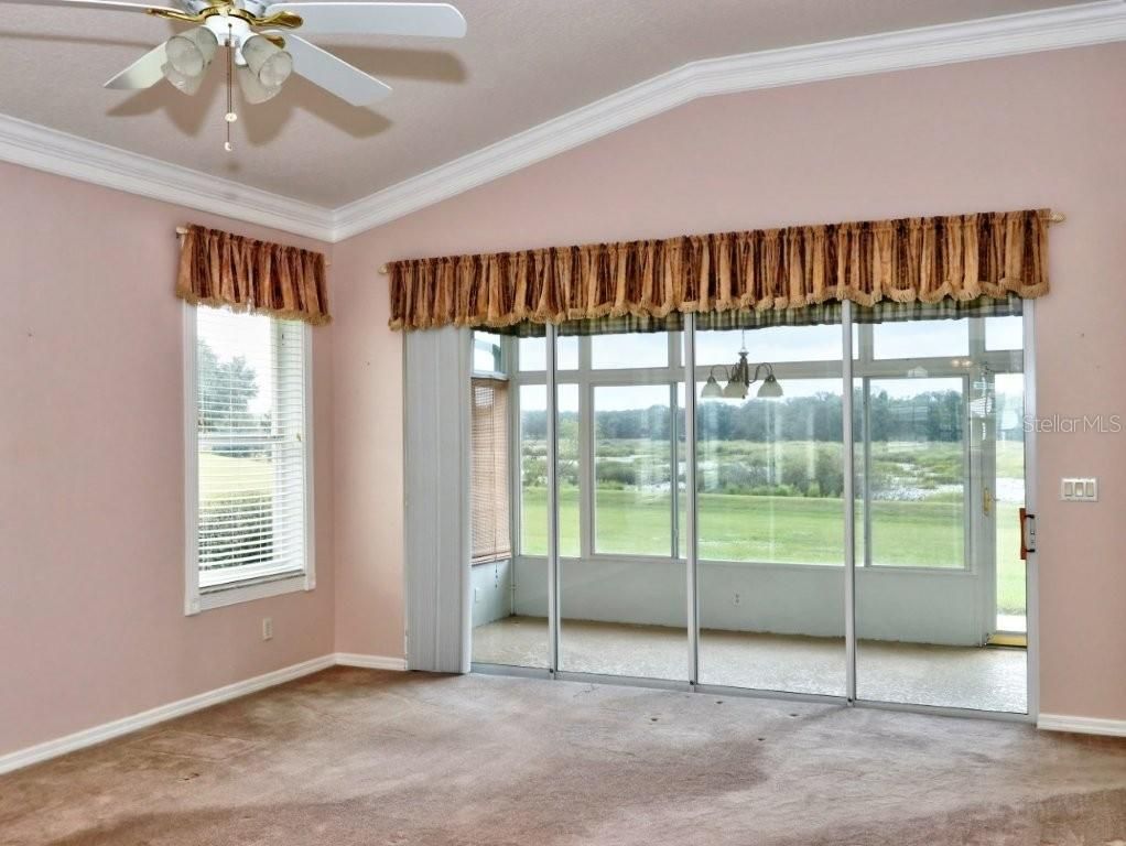 No rear neighbors plus spectacular panoramic view! This light, bright and open floor plan 3/2 Diamond model is located in beautiful 55+ Royal Highlands gated community. The kitchen is open to the living room and is equipped with a gas stove, new built-in microwave, 42” cabinets with pull-outs, recessed lighting and a convenient closet pantry. The spacious primary suite has a large walk-in closet, volume ceilings, dual sink vanity, pocket doors, storage cabinet, walk-in shower with seat and a jetted tub. Sliding doors in the living room lead to a 8x15 lanai with an adjacent cement patio where you and your friends can BBQ and enjoy the conservation view from your backyard. There is a vaulted ceiling in the living room along with a plant ledge. Additional features: NEW ROOF 2018, GAS HOT WATER HEATER 2022, crown molding throughout, expanded 2-car garage, ceiling fans, marble windowsills, utility sink in garage, pull-down stairs in the garage for easy access to the attic, irrigation system and mature landscaping with cement curbing. All appliances included. Royal Highlands is located within easy access to the FL Turnpike. Situated on 1,092 acres of land this expertly planned resident owned community of 1500 homes boasts approximately 35 percent conservation land. This natural preserve is the habitat of waterfowl, native birds, and other wildlife. In addition there are 4 lakes, rolling hills with panoramic views, and an 18-hole Golf Course and restaurant, all adding to Royal Highlands' expansive feel. Royal Highlands offers an array of amenities and activities to keep you engaged and entertained including an outdoor pool and a heated indoor pool as well as over 100 clubs and common interest groups to choose from. Royal Highlands has four pickleball courts. Royal Highlands is in close proximity to the Orlando Airport and the attractions. The new Orlando Health South Lake Hospital Emergency Room and Medical Pavilion is located nearby on Hwy.27 north. This home sits on a beautiful lot but won’t sit around for long so don’t miss out on this incredible opportunity. Schedule a viewing today and start living the retirement lifestyle you’ve always dreamed of!