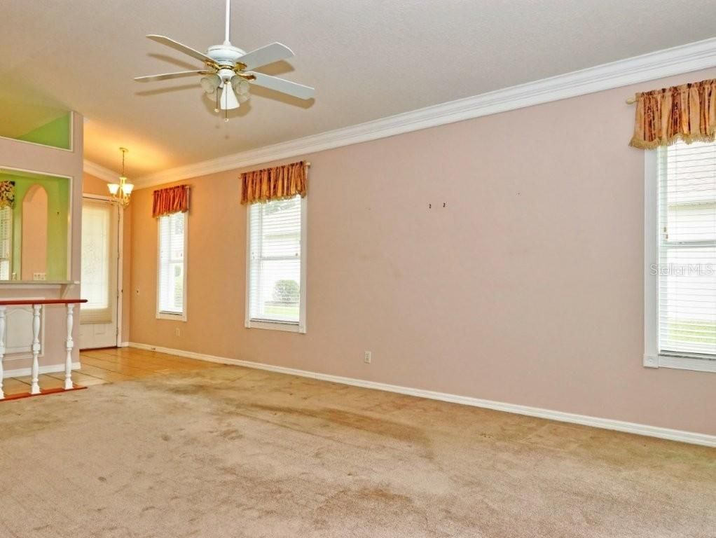 - Ceiling Fan(s), Crown Molding, Eat-in Kitchen, High Ceilings, Open Floorplan, Main Level Primary, Thermostat, Walk-In Closet(s), Window Treatments