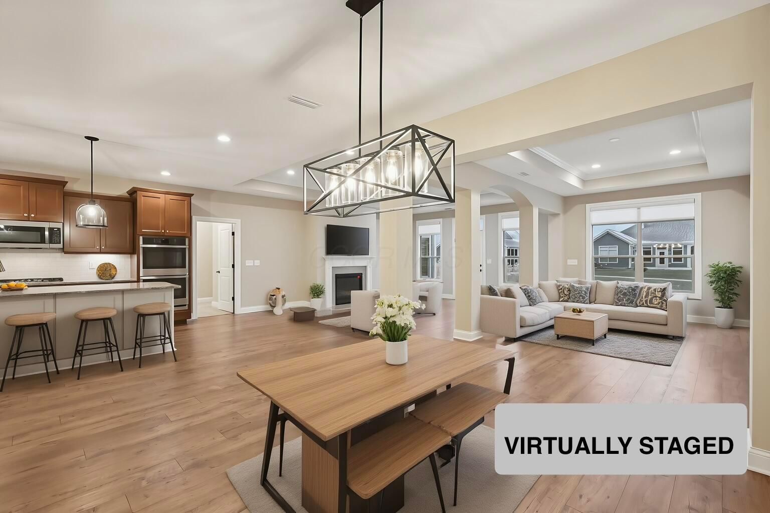 Better Than New — Luxuriously Upgraded Verona Floor Plan on One of the BEST Lots! Why wait to build when you can move right into this stunning, fully upgraded Verona model on a premier lot backing to peaceful green space. Enjoy sunsets on the expansive 20x30 paver patio overlooking green space or relax on your private covered side porch. Ideal location just across from the pickleball courts, clubhouse, fitness center, pool, community mailboxes, and extra parking. Inside, you'll love the custom open kitchen with high-end appliances including a double oven, a massive granite island, and beautiful finishes throughout. This unique floor plan offers three separate entertaining spaces—a spacious great room with cozy fireplace, an oversized dining area, and a bright flex room filled with windows for additional living or gathering space. Double French doors lead to the perfect sunroom or home office, adding even more versatility. The upper level features a private rear staircase entrance, ideal for guests or a separate living suite. This level includes a huge bonus room, a generous bedroom, a full bath, and an oversized storage closet—giving you the function of a finished lower level, but with more light, openness, and no below-grade concerns. Throughout the home you'll find custom lighting, upgraded window treatments, ample closet space, and a true turnkey feel. This home offers exceptional value—showcasing upgrades and quality far beyond what it would cost to rebuild today. Home offers a Rain Soft whole house water treatment system. Don't miss this opportunity to own one of the most desirable better than new homes in the community!