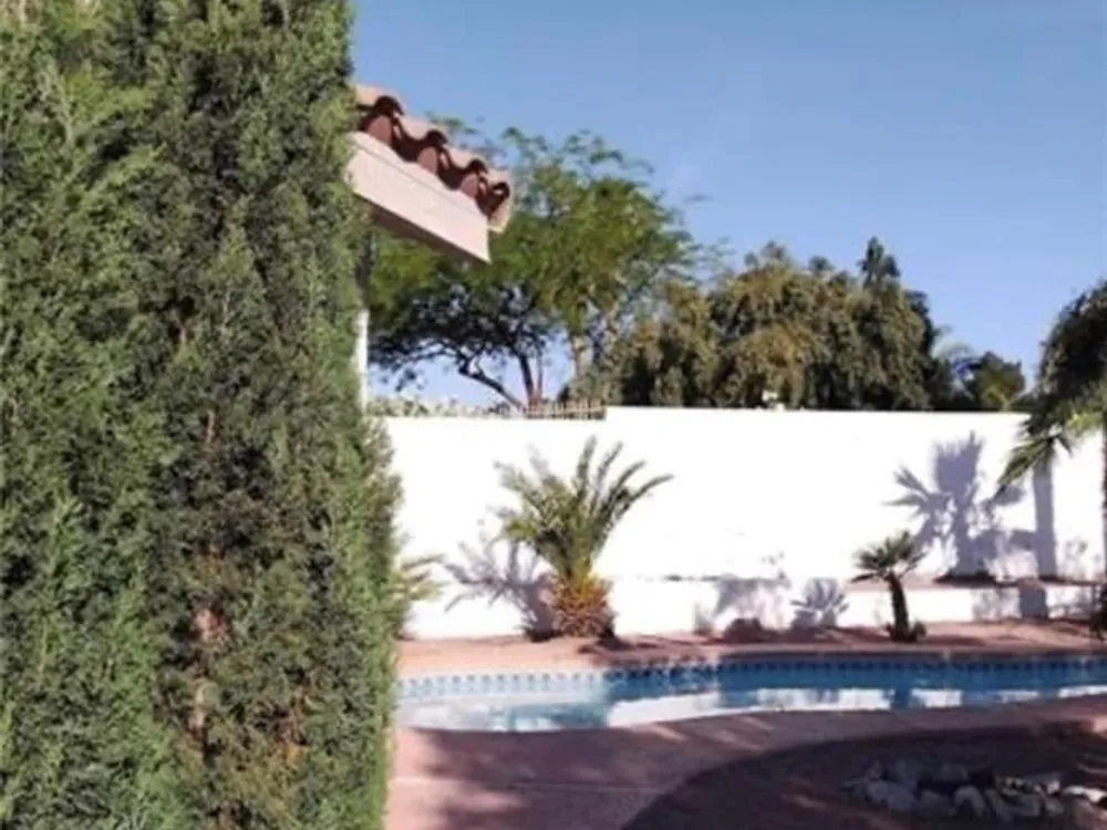 Single story gated community with pool and spa.The backyard has a large patio that overlooks the pool! Great for entertaining and summer BBQ. Beautiful desert landscaping which is easy to care for. Huge kitchen perfect for cooking or casual dining with an island and a lot of counter and cabinet space. Open floor plan with three bedrooms, 2 bathrooms and 2 car attached garage. Separate family room with fireplace.