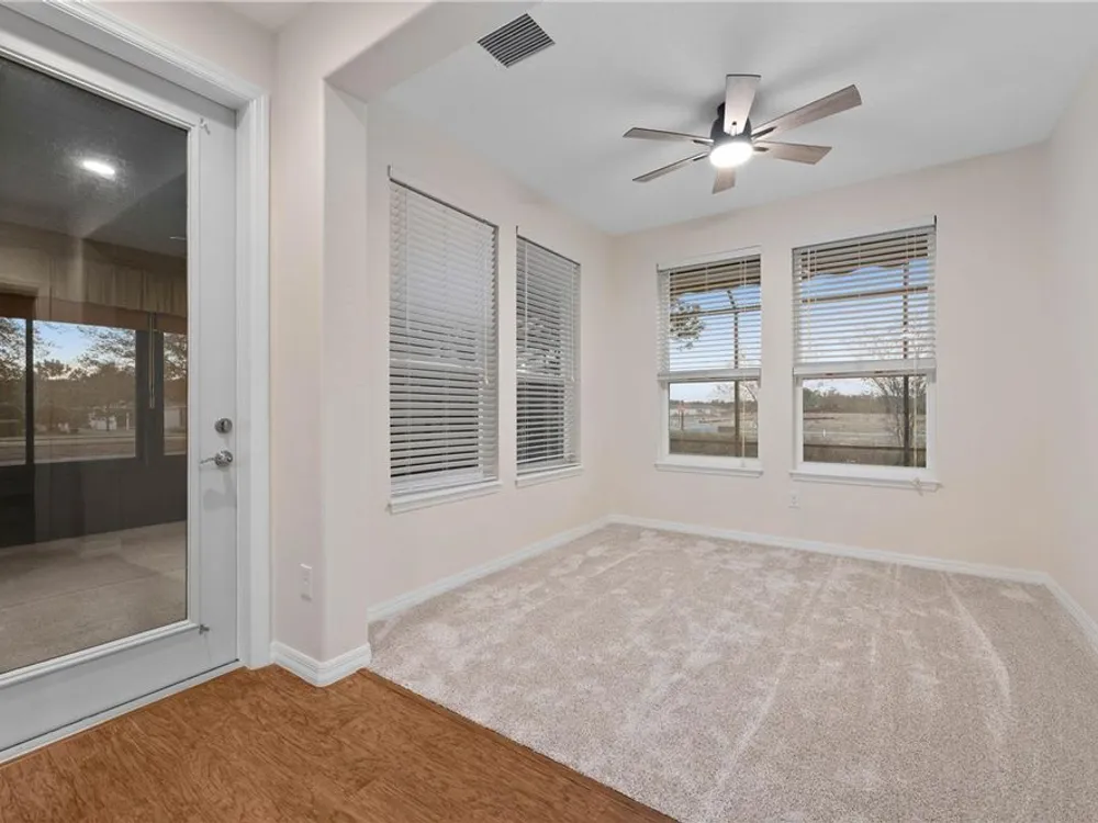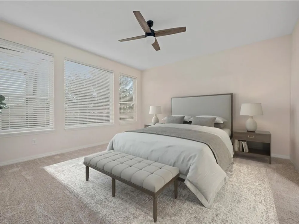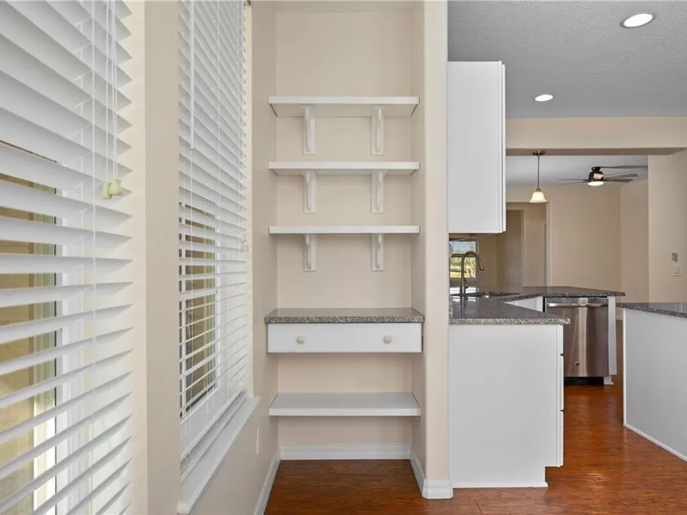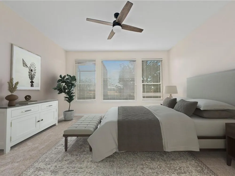 - Ceiling Fan(s), Eat-in Kitchen, Main Level Primary, Stone Counters, Thermostat, Walk-In Closet(s)