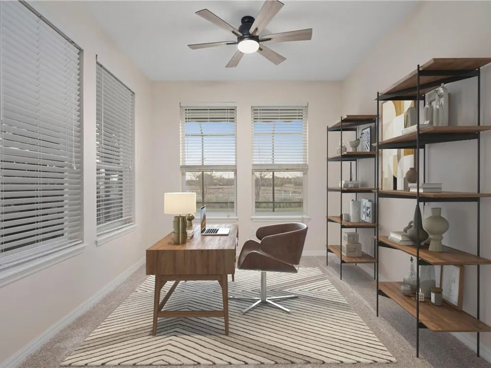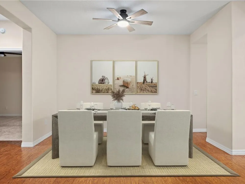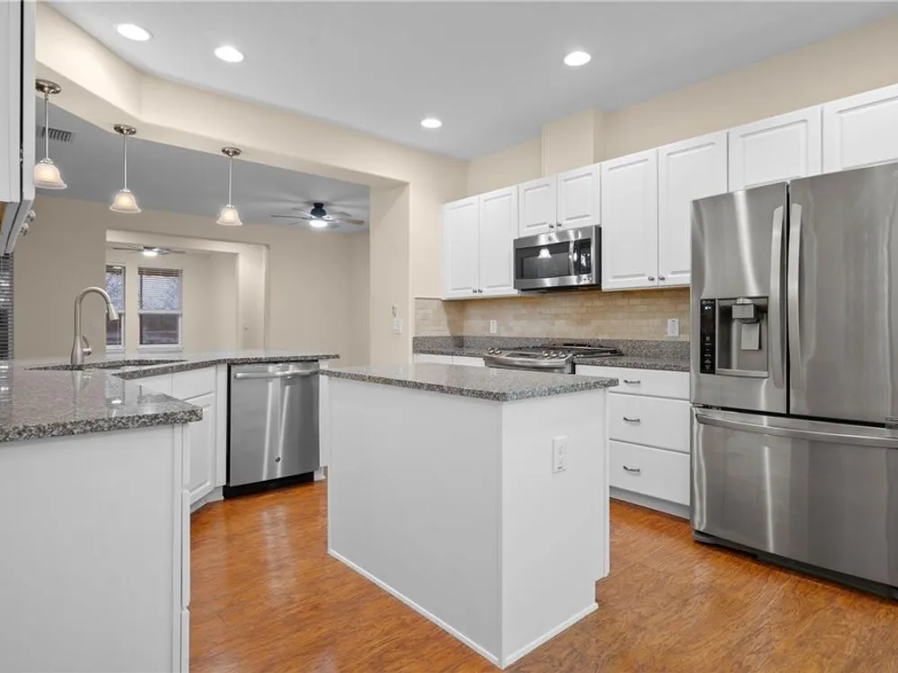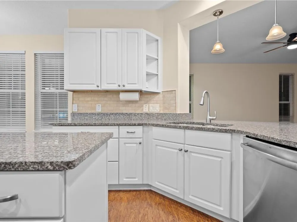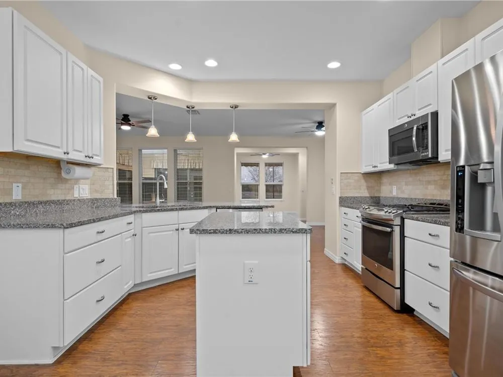 - Ceiling Fan(s), Eat-in Kitchen, Main Level Primary, Stone Counters, Thermostat, Walk-In Closet(s)