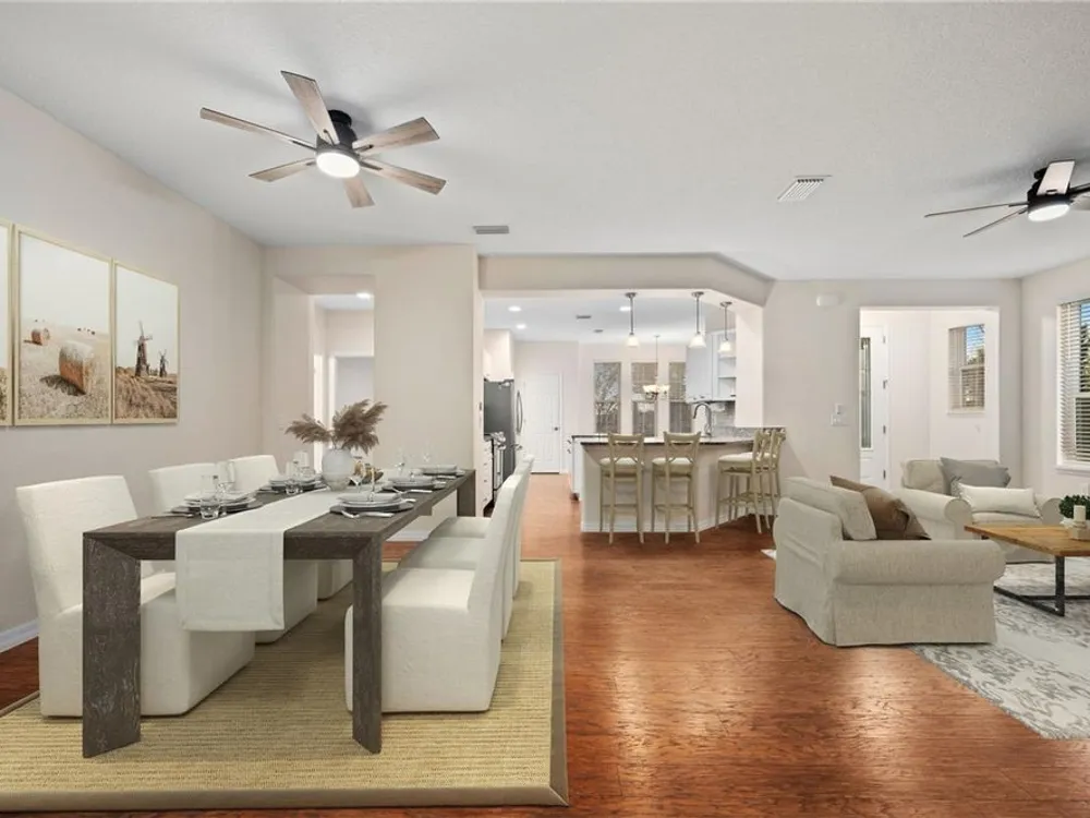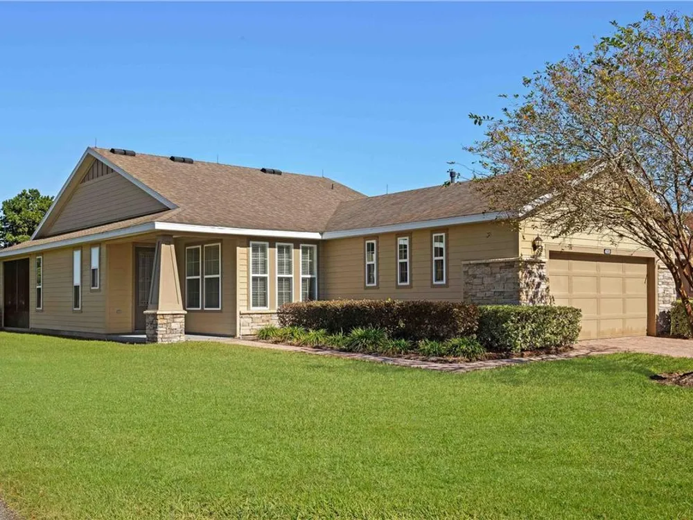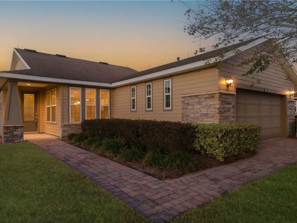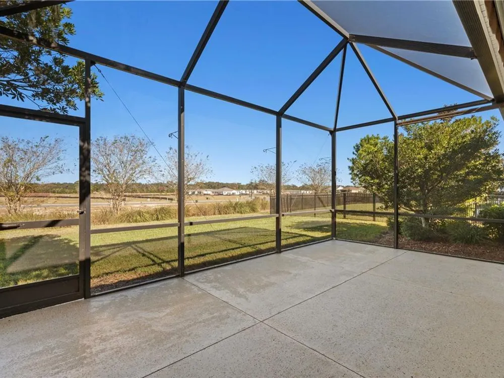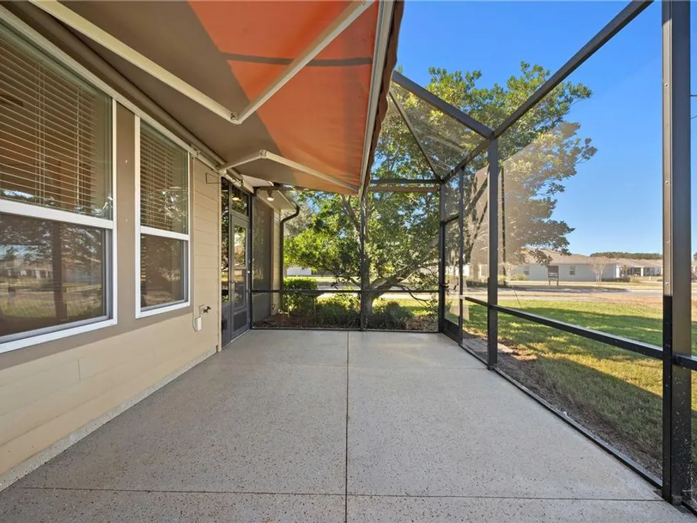 Seller will provide a credit towards the one time club fee! Step into this beautifully designed Monaco model, where comfort meets style in the heart of the sought-after Ocala Preserve community. Resting on a corner lot and boasting nearly 1,700 sq. ft. of open living space, this 2-bedroom, 2-bathroom home, with an additional versatile den, offers the perfect blend of functionality and elegance. As you enter through the glass-inset front door and defined entryway, you’re welcomed by soaring ceilings and an abundance of natural light streaming through large windows. The open-concept living and dining areas create a bright, airy atmosphere, while the well-appointed kitchen is a chef’s dream — featuring custom cabinetry, generous counter space, and a cozy breakfast nook. The thoughtful split-bedroom floor plan ensures privacy for both owners and guests. The spacious owner’s suite is a true retreat, complete with a spa-like bathroom, tall counters, a walk-in shower, and a large walk-in closet. The versatile den invites creativity, offering the potential for a home office, craft space, or extra guest room. Step outside to your private, enclosed lanai — perfect for morning coffee or evening relaxation. Love outdoor living? The extended patio with a birdcage enclosure provides additional space to unwind, with unobstructed views of open fields and no rear neighbors. When the Florida sun is at its peak, a retractable SunSetter awning offers shade and comfort at the touch of a button. Nestled in the peaceful, all-ages phase of Ocala Preserve — away from the hustle and bustle of new construction — this home offers a tranquil escape while still being minutes from world-class equestrian events. Don’t miss the opportunity to make this exceptional property your own. Schedule your private tour today!