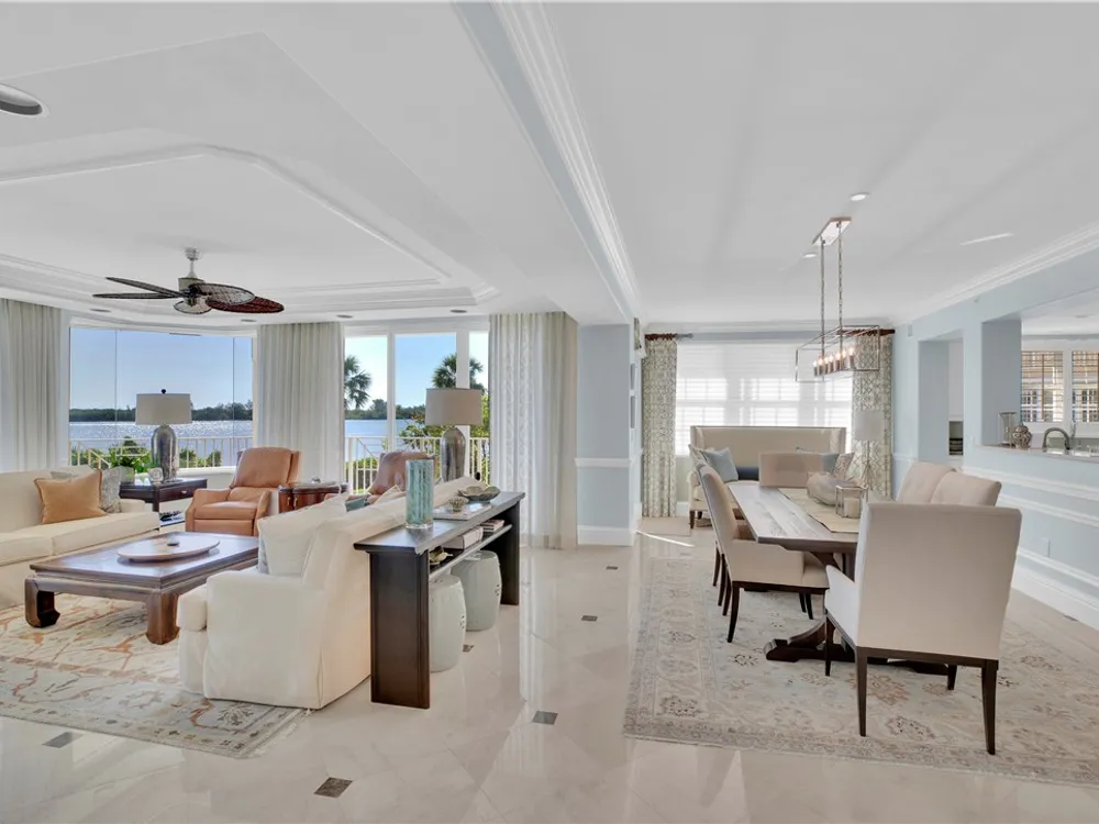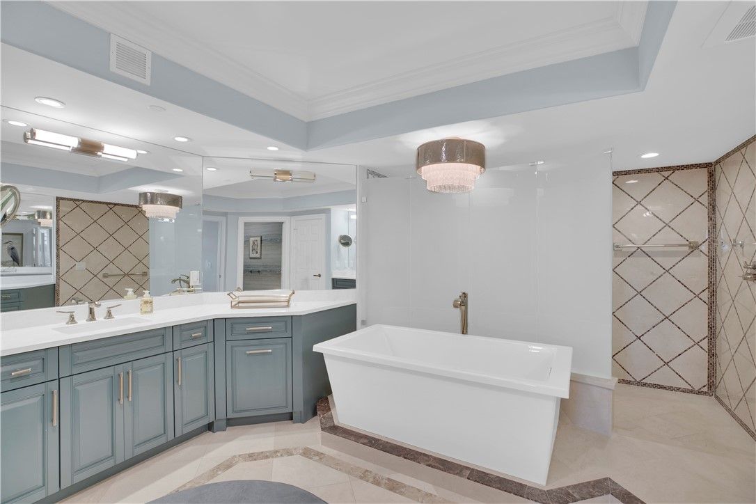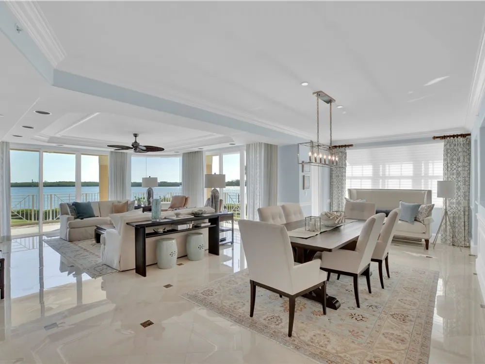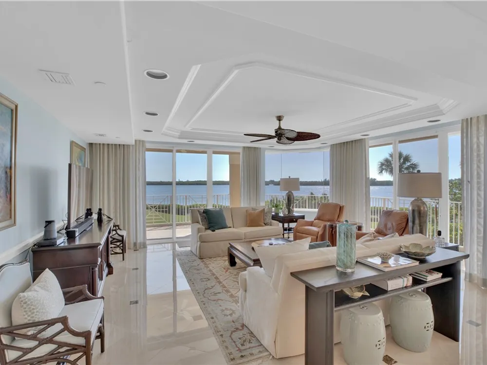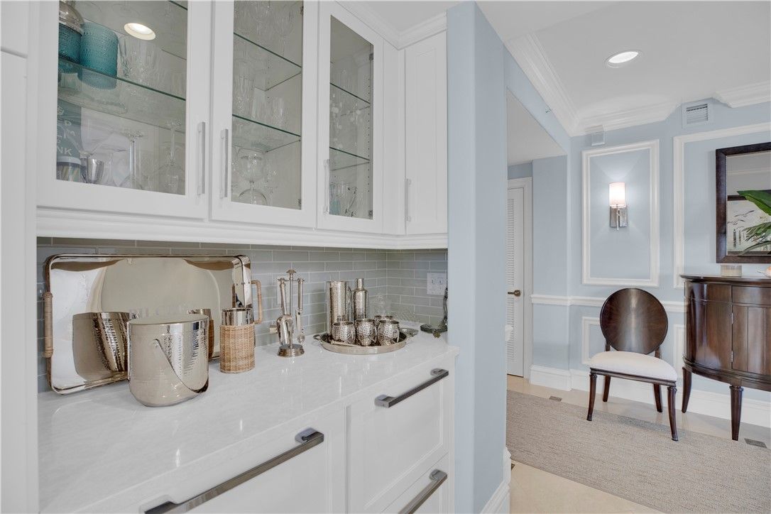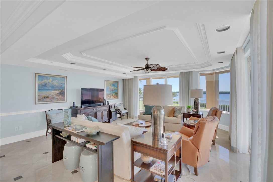 Exquisite direct riverfront 3/3 condo residence, private elevator entrance, 2 car garage, top of the line finishes, fixtures and millwork. Fabulous built in bar/butler’s pantry, renovations by Helmut House. May be sold turnkey. The most stunning waterfront residence and listing in all of Grand Harbor. Enjoy the GH lifestyle, golf, tennis, fitness, pickleball, marina, beach club and so much more. Sizes approx./subject to error.
