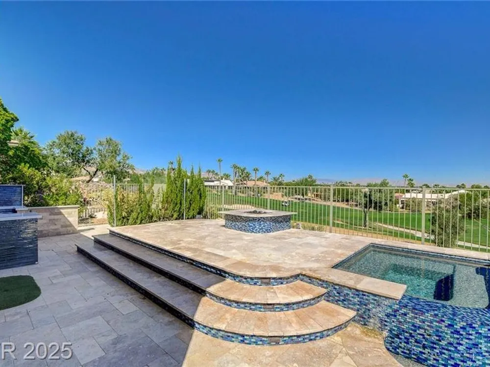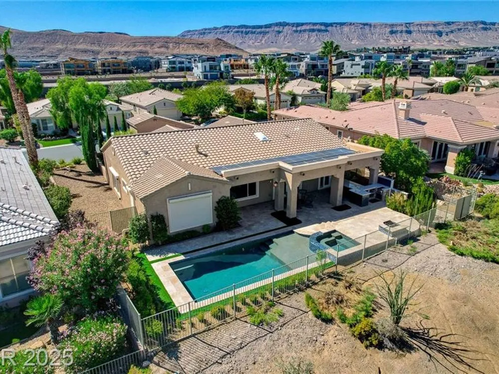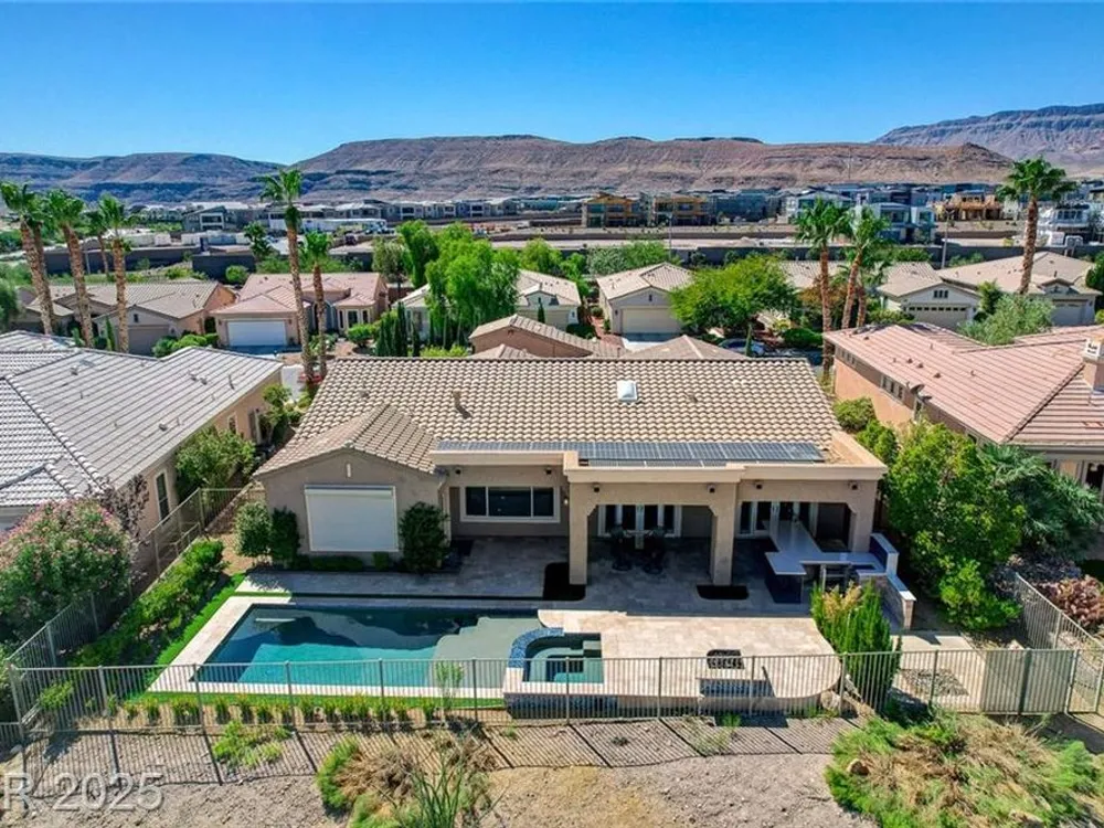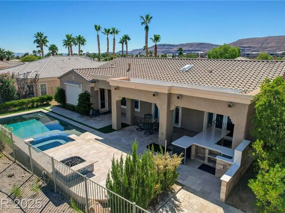 THIS 'SIENA' IN SUMMERLIN OASIS IS ALL ABOUT VIEWS... FULL STRIP, GOLF COURSE & MOUNTAINS... SUNRISES & SUNSETS, A LG SALT WATER POOL & SPA, FIREPIT & B/I BBQ AREA TO RELAX, ENTERTAIN, AND TAKE IN THE SITES EVERY DAY & NIGHT! CURB APPEAL W/ SYNTHETIC SOD, BOULDERS & MATURE LANDSCAPING, PAVER DRIVE, WALKWAY & COURTYARD, 3 CAR GARAGE, LG COVERED PATIO IN FULLY FENCED REAR, MAKES THE EXTERIOR BEAUTIFUL & COMPLETE. THE INTERIOR HAD A REHAB STARTED BUT IS NOT FINISHED, PONY WALLS & COLUMNS HAVE ALREADY BEEN REMOVED SO YOU CAN COMPLETE THE REMODEL & MAKE IT YOUR OWN. '7120' FLOOR PLAN, APPROX 2309/SF, 3 BED, 3 BATH, ENCLOSED DEN, OPEN GREAT RM CONCEPT, KITCHEN W/ MAPLE CABINETRY, GRANITE COUNTERTOPS & STAINLESS APPLIANCES, LAUNDRY RM W/ CABINETS & SINK, TILE, LED RECESSED CANS, AND A HOME GENERATOR. YOU CAN REMOVE ALL & START OVER OR KEEP SOME & CONTINUE WHAT WAS STARTED, GIVING YOU MANY OPTIONS TO BE CREATIVE! (THERE ARE A FEW OWNED & INSTALLED SOLAR PANELS, BUT NO OTHER INFO IS AVAILABLE).