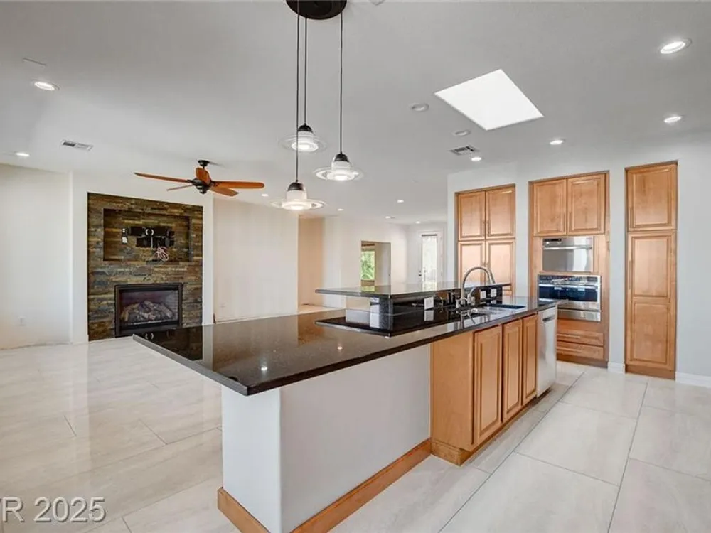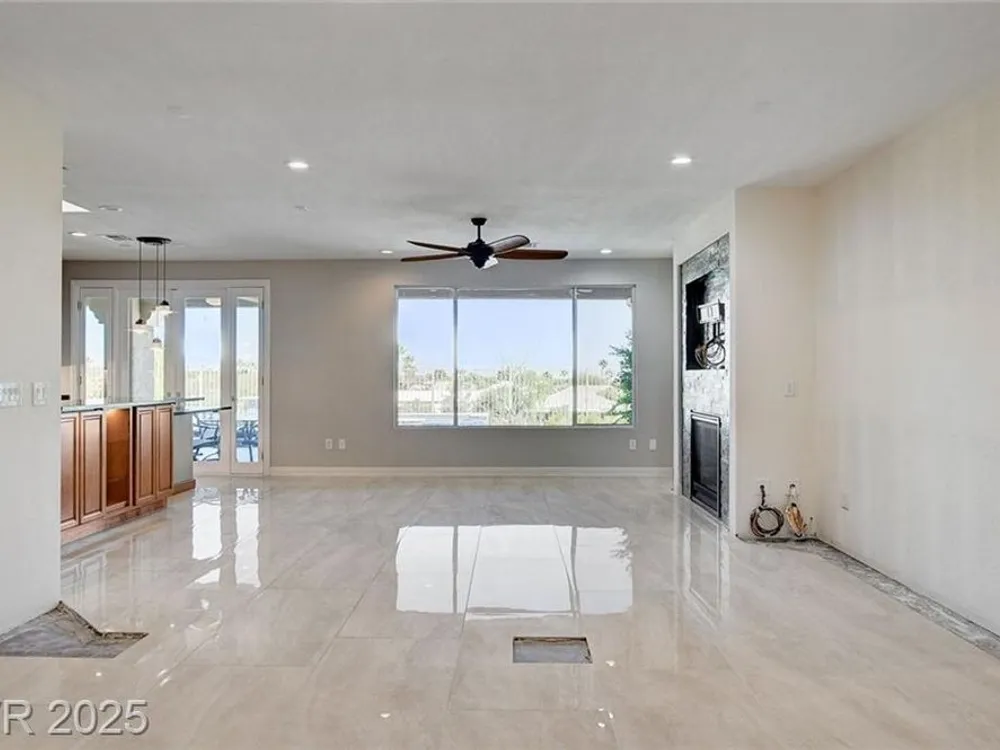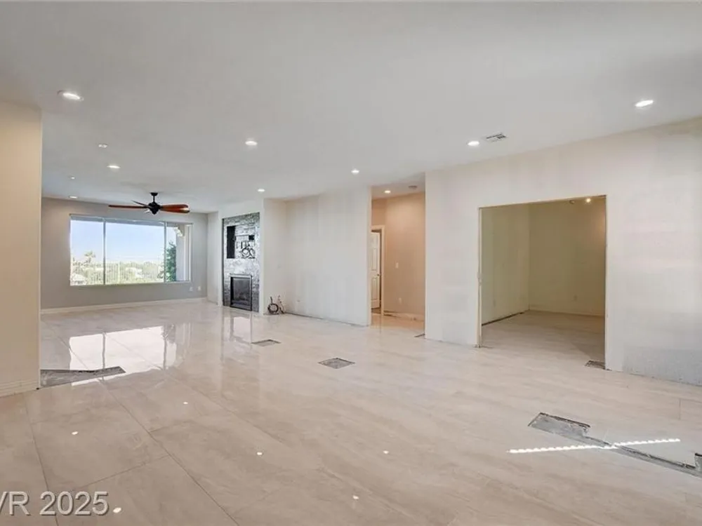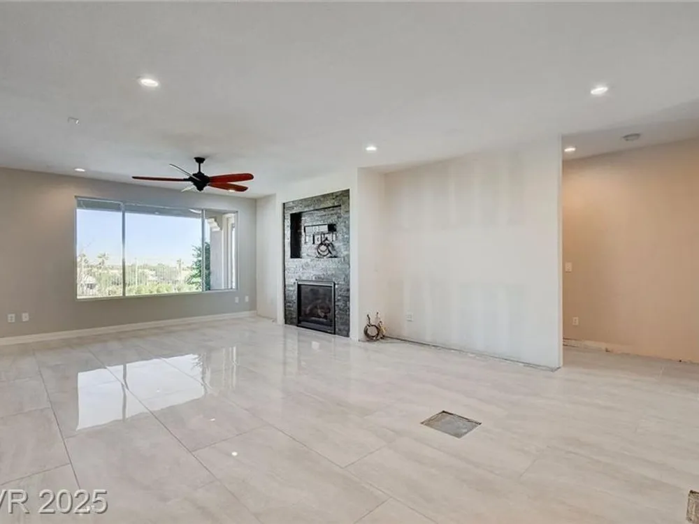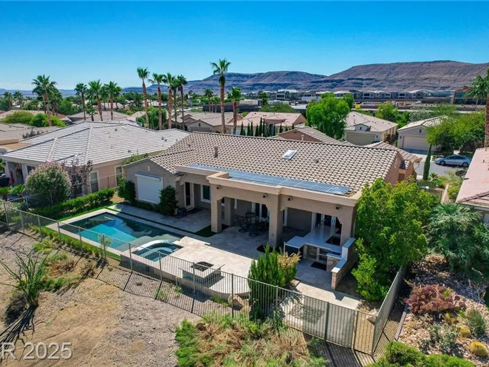 THIS 'SIENA' IN SUMMERLIN OASIS IS ALL ABOUT VIEWS... FULL STRIP, GOLF COURSE & MOUNTAINS... SUNRISES & SUNSETS, A LG SALT WATER POOL & SPA, FIREPIT & B/I BBQ AREA TO RELAX, ENTERTAIN, AND TAKE IN THE SITES EVERY DAY & NIGHT! CURB APPEAL W/ SYNTHETIC SOD, BOULDERS & MATURE LANDSCAPING, PAVER DRIVE, WALKWAY & COURTYARD, 3 CAR GARAGE, LG COVERED PATIO IN FULLY FENCED REAR, MAKES THE EXTERIOR BEAUTIFUL & COMPLETE. THE INTERIOR HAD A REHAB STARTED BUT IS NOT FINISHED, PONY WALLS & COLUMNS HAVE ALREADY BEEN REMOVED SO YOU CAN COMPLETE THE REMODEL & MAKE IT YOUR OWN. '7120' FLOOR PLAN, APPROX 2309/SF, 3 BED, 3 BATH, ENCLOSED DEN, OPEN GREAT RM CONCEPT, KITCHEN W/ MAPLE CABINETRY, GRANITE COUNTERTOPS & STAINLESS APPLIANCES, LAUNDRY RM W/ CABINETS & SINK, TILE, LED RECESSED CANS, AND A HOME GENERATOR. YOU CAN REMOVE ALL & START OVER OR KEEP SOME & CONTINUE WHAT WAS STARTED, GIVING YOU MANY OPTIONS TO BE CREATIVE! (THERE ARE A FEW OWNED & INSTALLED SOLAR PANELS, BUT NO OTHER INFO IS AVAILABLE).