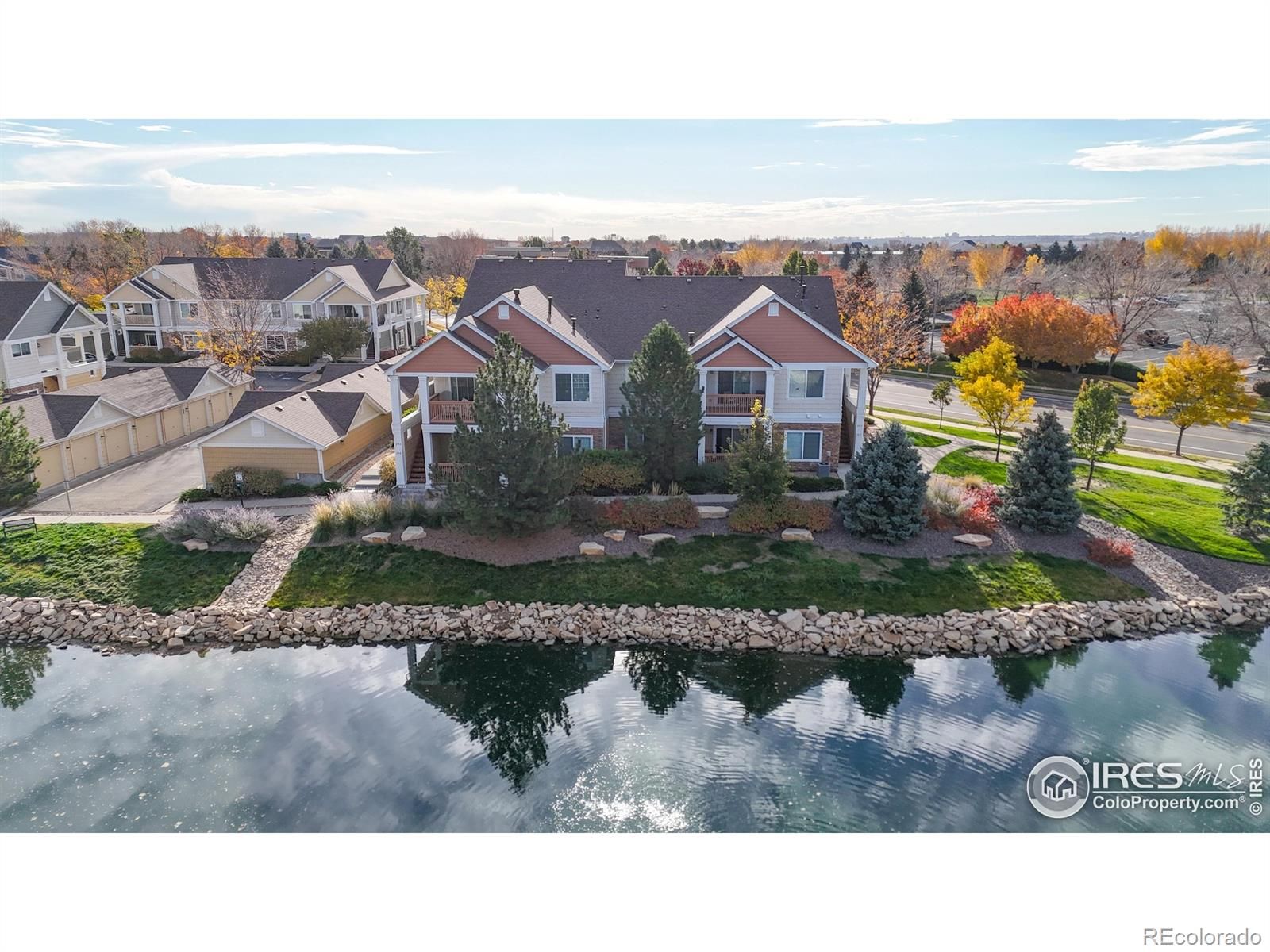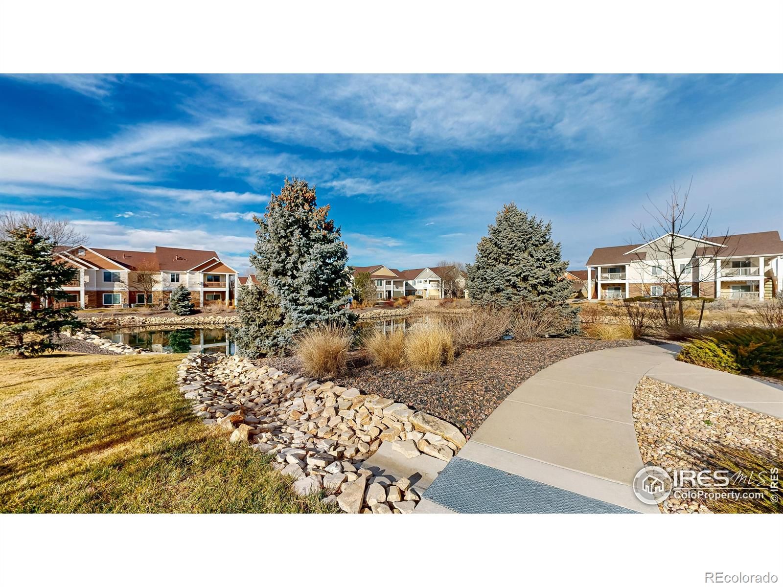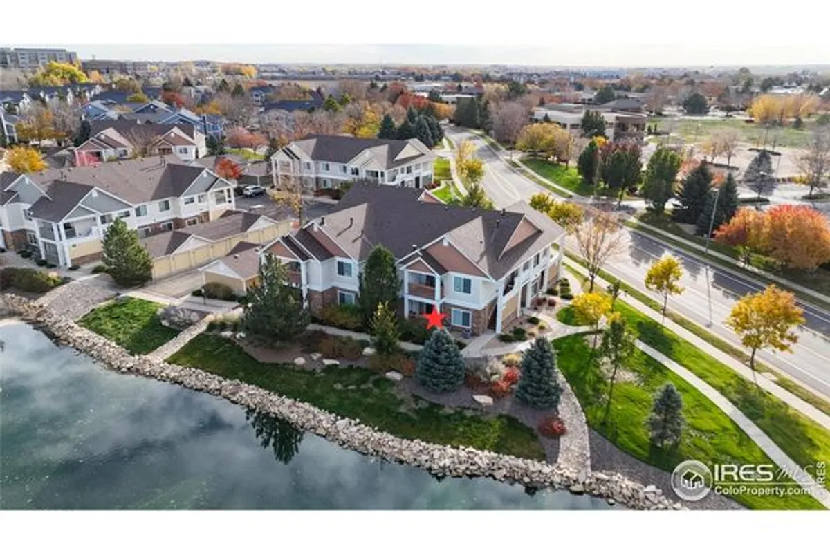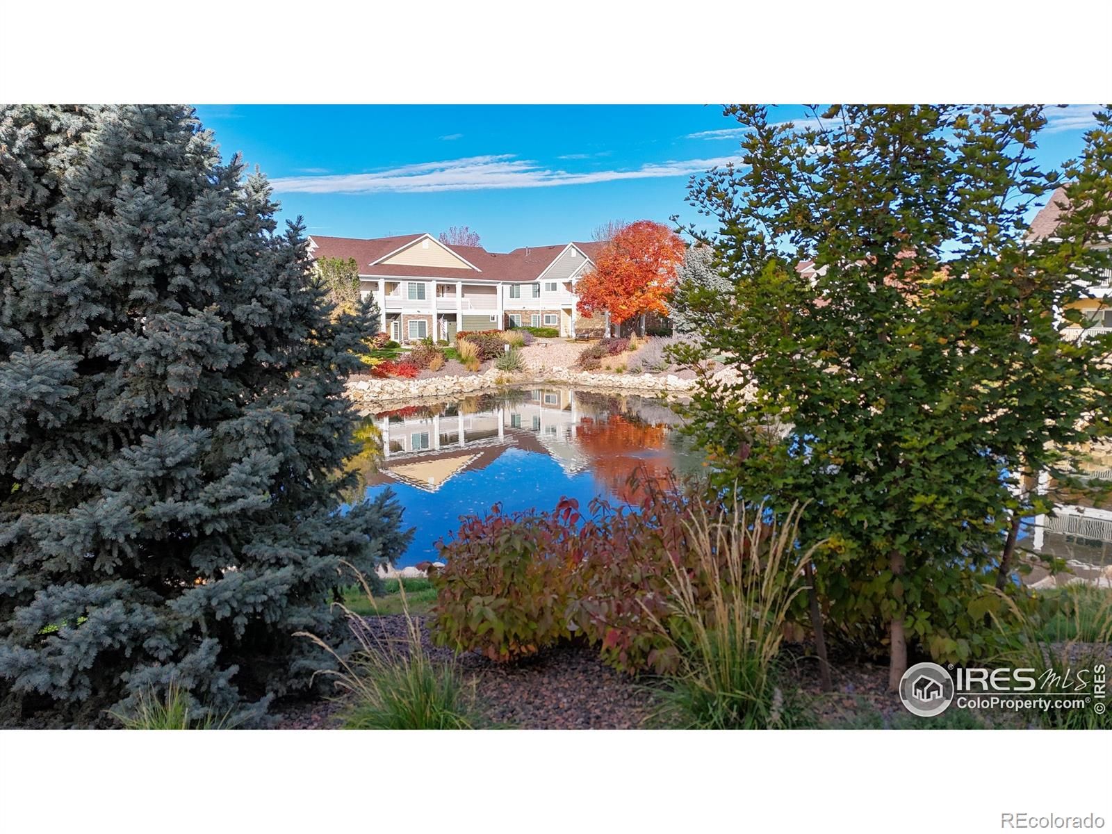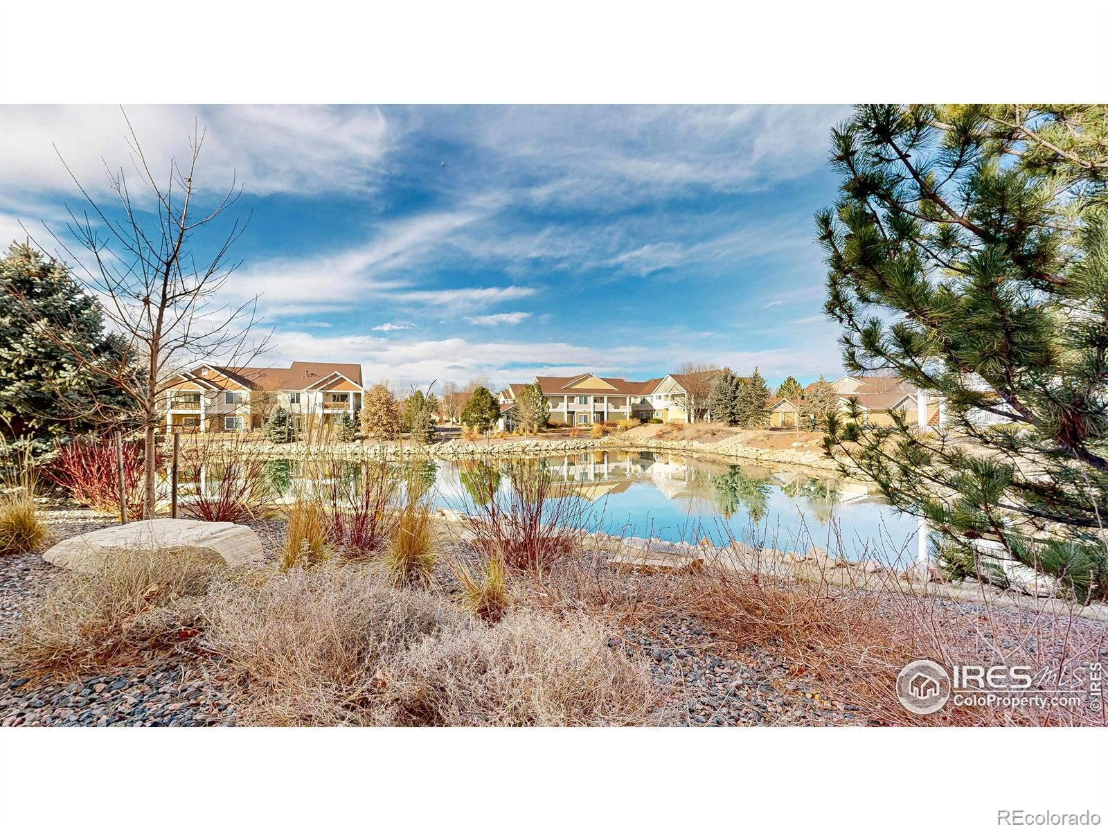 Amazing location with serene pond views! Relax on your west-facing patio and enjoy daily visits from ducks and geese overlooking the picturesque pond. This desirable first-floor condo offers a more open feel, with the entrance facing Hahns Peak Drive rather than another building. The Aspen-the largest floor plan at Lakeshore at Centerra-features 1,120 square feet, 2 bedrooms, and 2 bathrooms, all on one level with no stairs. The open-concept kitchen flows seamlessly into the living room, complete with a cozy gas fireplace. Black cabinetry adds a modern touch throughout, complemented by stylish tile in both bathrooms. The spacious primary suite is a true retreat, featuring an en-suite bath with a luxurious soaking tub, shower, dual sinks, and a huge walk-in closet. A detached one-car garage (#6) is conveniently located just around the corner. Enjoy resort-style living with HOA amenities that include a pool, hot tub, fitness center, and clubhouse. HOA dues also cover water, sewer, trash, exterior maintenance and insurance, lawn care, and snow removal-making this home truly low-maintenance. Explore 3.5 miles of scenic walking trails around nearby Equalizer and Houts Lakes, and take advantage of all that Centerra has to offer: restaurants, Target, shopping, Medical Center of the Rockies, and quick access to I-25. Located within the High Plains K-8 School area. No Metro District tax! Buyer to cooperate with a 1031 Exchange. Seller is a licensed real estate agent in the State of Colorado.