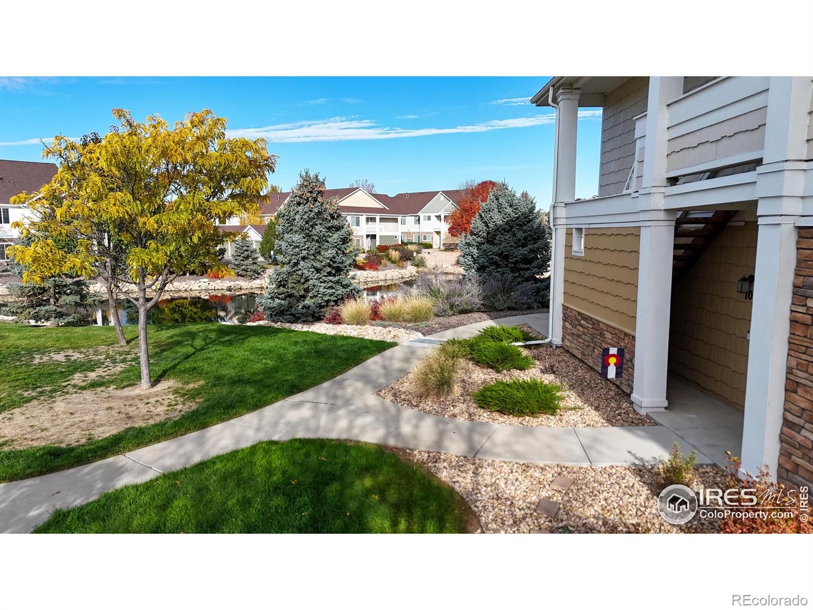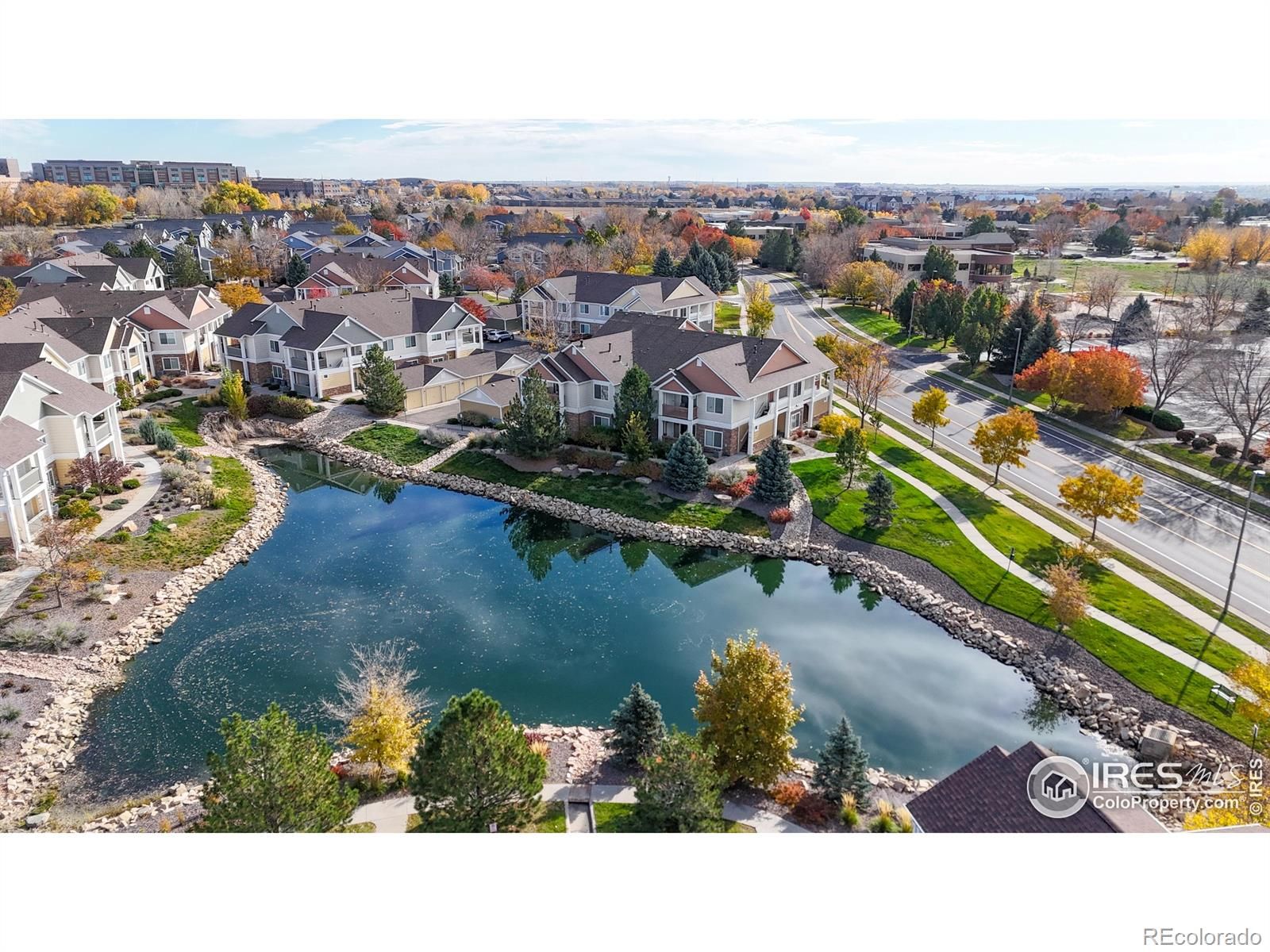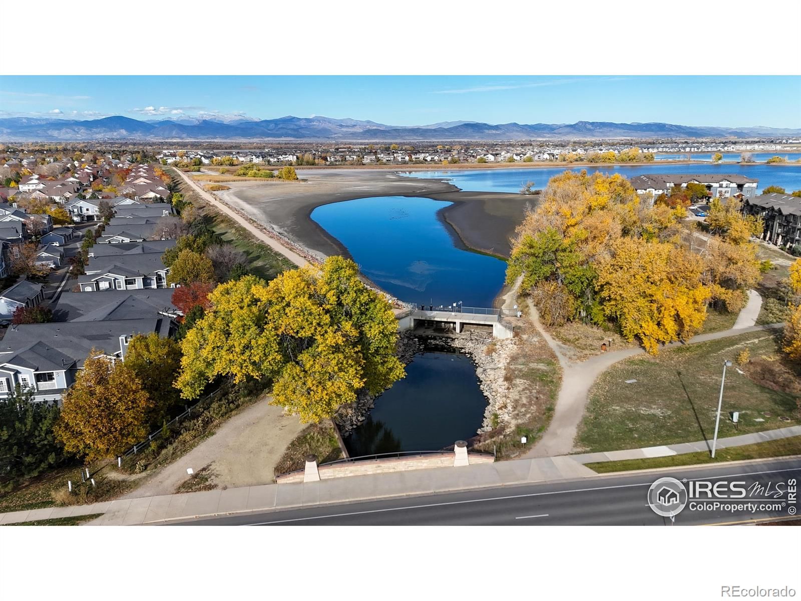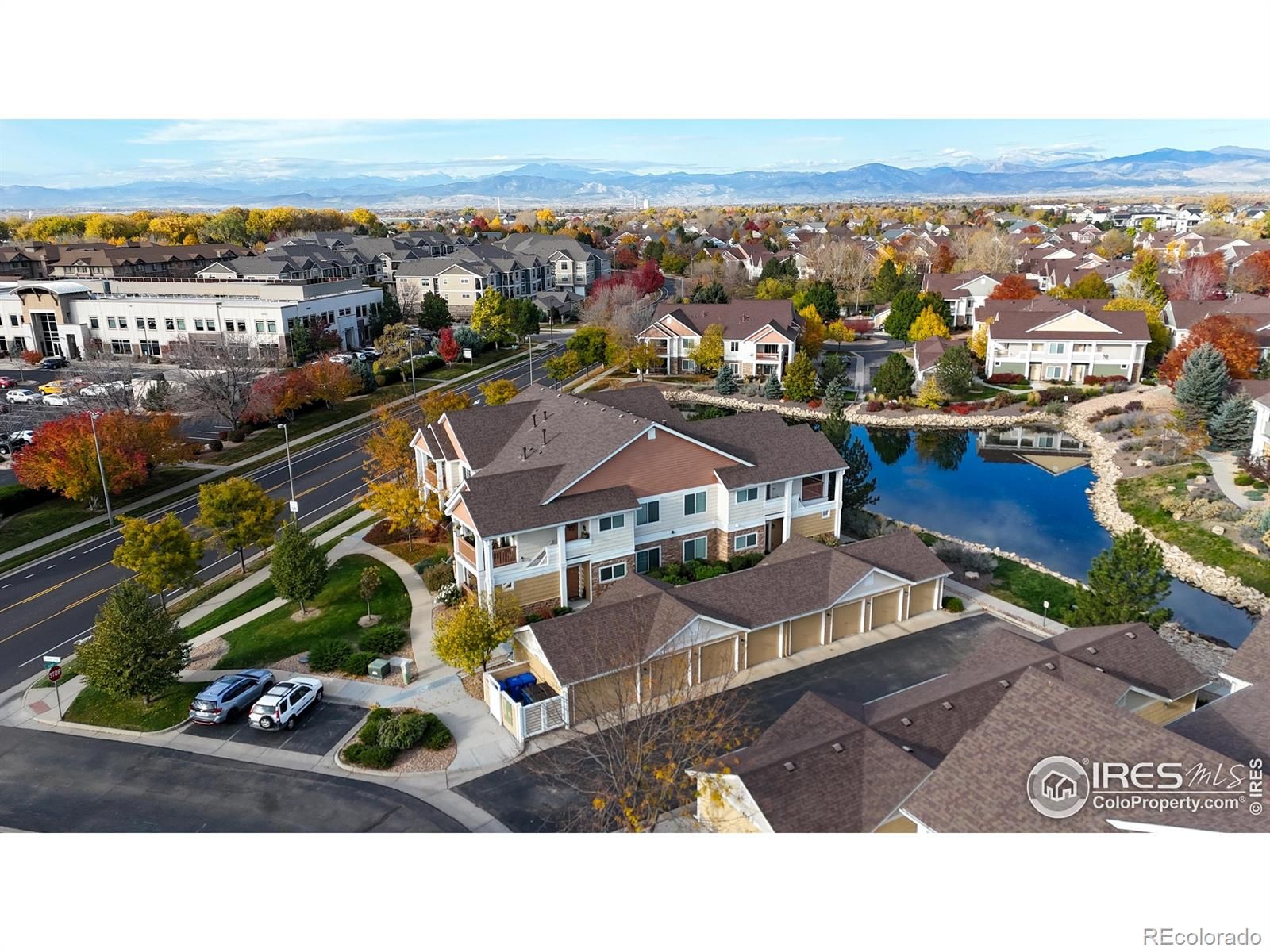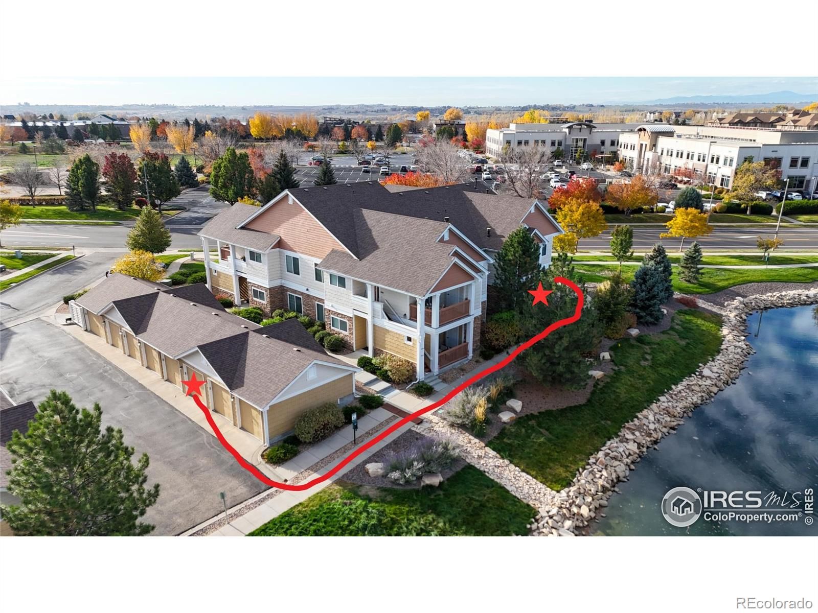 Amazing location with serene pond views! Relax on your west-facing patio and enjoy daily visits from ducks and geese overlooking the picturesque pond. This desirable first-floor condo offers a more open feel, with the entrance facing Hahns Peak Drive rather than another building. The Aspen-the largest floor plan at Lakeshore at Centerra-features 1,120 square feet, 2 bedrooms, and 2 bathrooms, all on one level with no stairs. The open-concept kitchen flows seamlessly into the living room, complete with a cozy gas fireplace. Black cabinetry adds a modern touch throughout, complemented by stylish tile in both bathrooms. The spacious primary suite is a true retreat, featuring an en-suite bath with a luxurious soaking tub, shower, dual sinks, and a huge walk-in closet. A detached one-car garage (#6) is conveniently located just around the corner. Enjoy resort-style living with HOA amenities that include a pool, hot tub, fitness center, and clubhouse. HOA dues also cover water, sewer, trash, exterior maintenance and insurance, lawn care, and snow removal-making this home truly low-maintenance. Explore 3.5 miles of scenic walking trails around nearby Equalizer and Houts Lakes, and take advantage of all that Centerra has to offer: restaurants, Target, shopping, Medical Center of the Rockies, and quick access to I-25. Located within the High Plains K-8 School area. No Metro District tax! Buyer to cooperate with a 1031 Exchange. Seller is a licensed real estate agent in the State of Colorado.