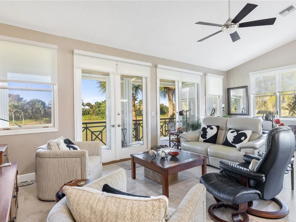 Spacious 3-bedroom townhouse with all living space on the 2nd floor for better views in desirable Grand Harbor! With vaulted ceilings and a large screened balcony, this bright home features many windows that bring in natural light and offers stunning, unobstructed panoramic golf course views. Beautifully updated and meticulously maintained, it includes numerous upgrades, such as some hurricane-impact windows and newer flooring. Perfect for serene, comfortable living and entertaining. Don’t miss this gem!