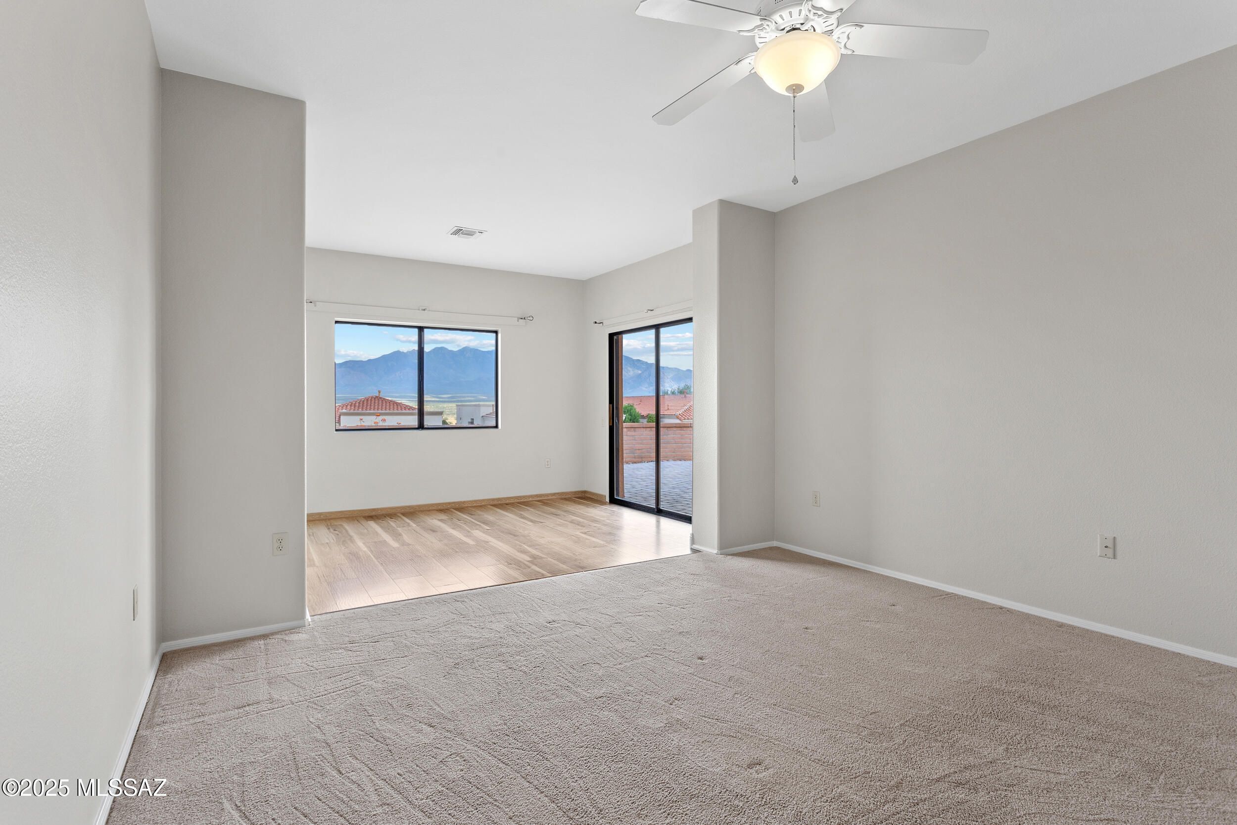 Incredible home with spectacular Santa Rita Mountain Panoramic VIEWS! Enjoy your morning coffee and relax on your covered bricked east facing patio looking to your manicured landscaping while gazing at the warm colors of Madera Canyon. With a gated courtyard in the front of the home for security and convenience. Upon entering you'll find light filled main living areas that capture mountain views from every window. Enjoy meals with friends in separate dining area that adjoins Great Room. Bedrooms are spacious with ample storage. NO POLY! Plumbing re-piped 2025. In addition to 2 parking spaces, the garage includes golf cart parking, workshop space, and epoxy flooring. Other home improvements include upgraded flooring, sun-shades throughout, new fixtures, and fresh new paint!