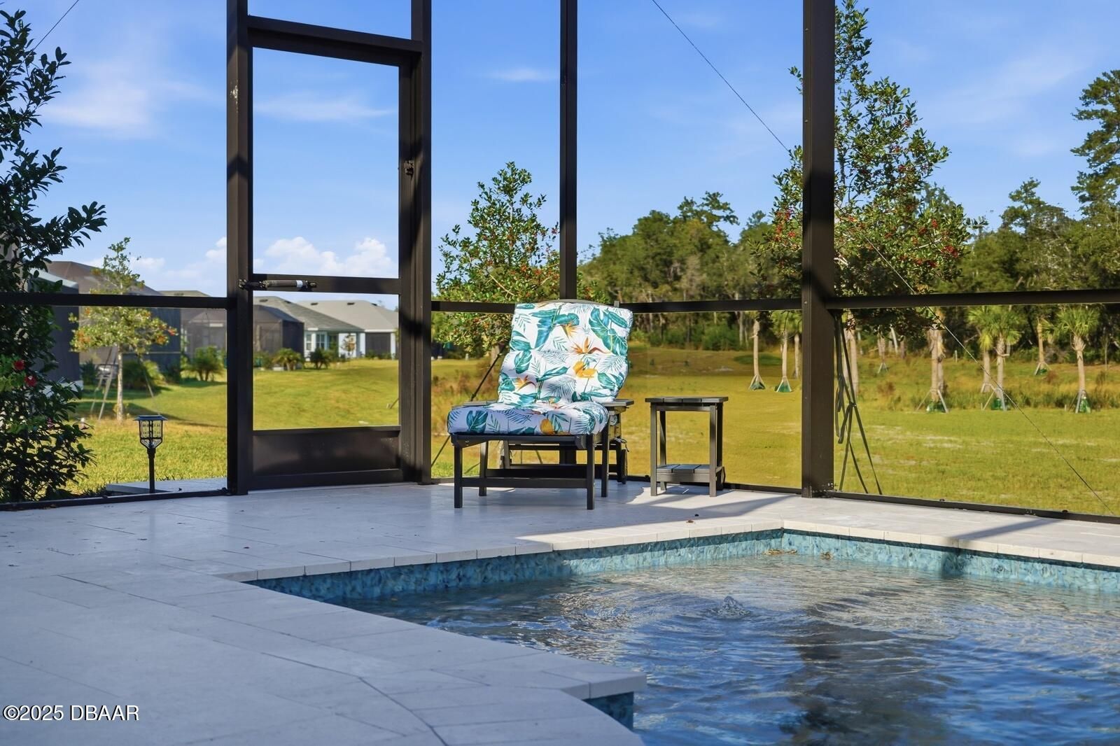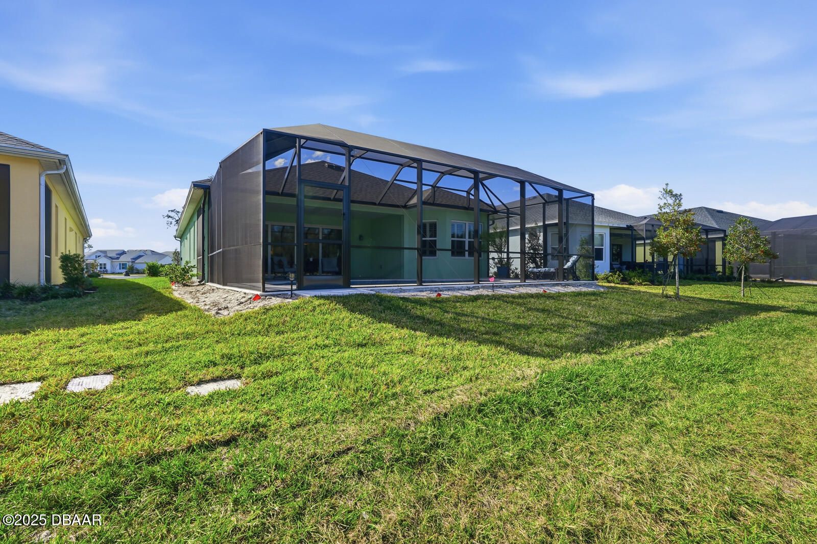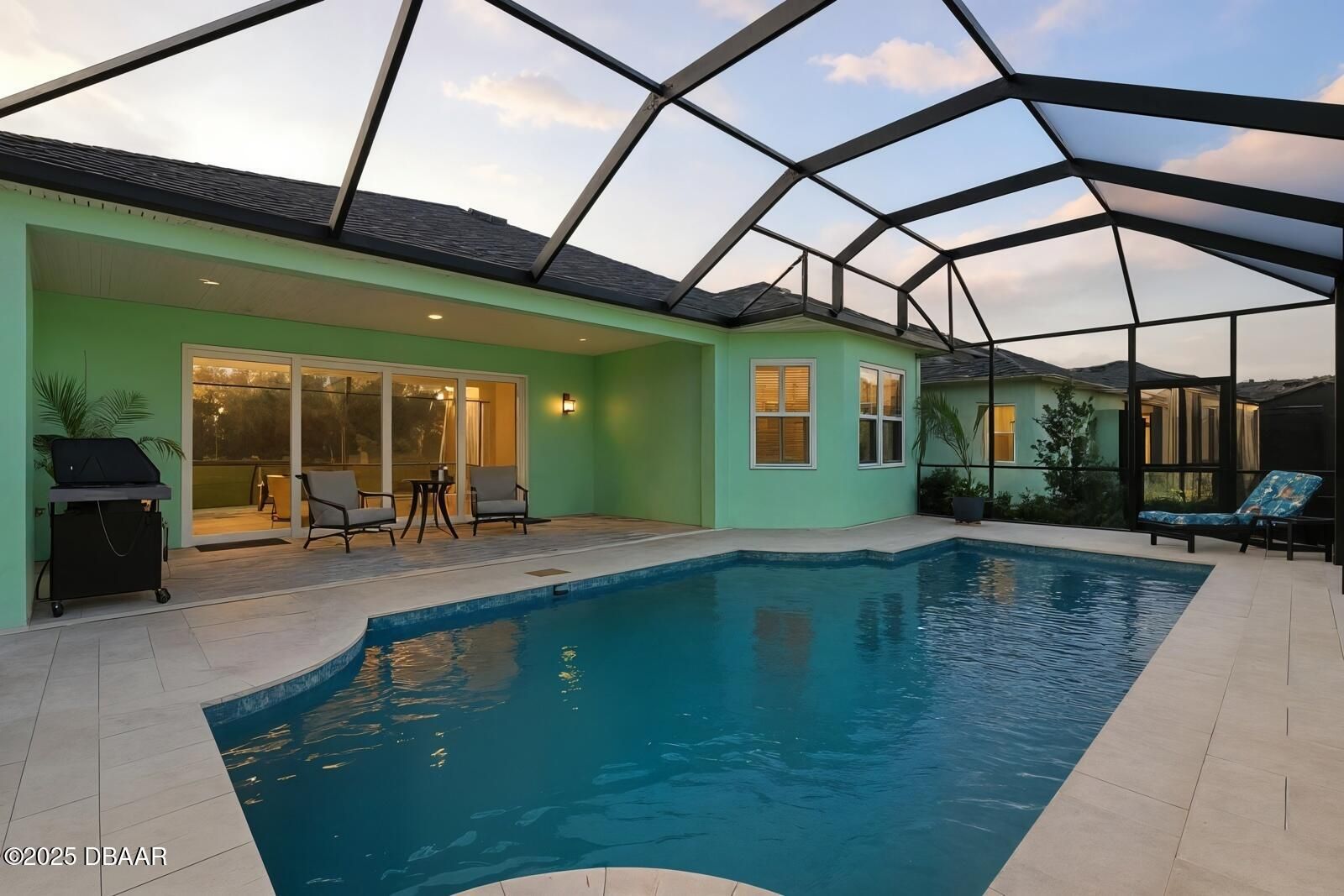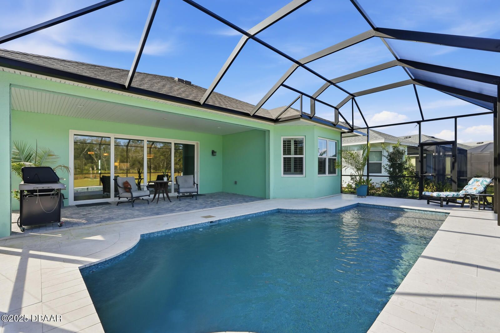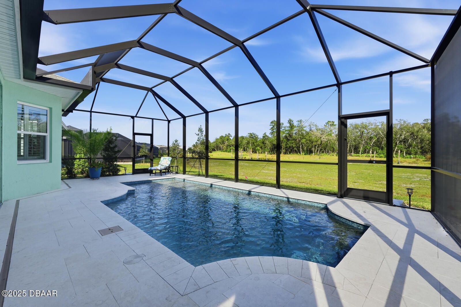 THIS IS THE LIFE! Step inside this gorgeous, single family home, the sought-after BREEZE BAY model WITH POOL in Latitude Margaritaville Daytona Beach and get your first glimpse of your new life in paradise! Only a year old, this 2 bed, 2½ bath beauty has everything you are looking for including a BRAND NEW SALTWATER POOL, recently added. Walking in the door, after taking in the elegant and welcoming entryway, you'll notice glass doors leading to the den, outfitted nicely with a wet bar, upper cabinets with glass doors and space for a wine fridge or kegerator, whichever you prefer! Continuing down the hallway, the space opens up to a stunning open-concept kitchen, dining area and great room. Imagine the entertaining you'll do with a kitchen island this size! With high-end cabinets, quartz countertops, under-cabinet lighting, soft-close doors and drawers, and an upgraded vent over the cooktop, this kitchen is a chef's delight. Top quality flooring runs ... throughout the home with wood-look laminate flooring in the main living areas and tiled bathrooms and laundry. The main bedroom suite is as luxurious as you'd expect with a tropical feature wall and views out the triple windows facing open-space preserves and the lanai. His and Hers walk-in closets, and a full bath with two separate sinks and vanities, a water closet and a roomy corner shower complete your private oasis. Guests will enjoy privacy at the opposite end of the home, as well, with a spacious bedroom and ensuite full bath of their own. Let's step through the triple-slider glass doors to the lanai. There's a large under-roof area for outdoor dining or entertaining you're sure to enjoy. Built in October of 2025, this new saltwater pool is surrounded by a Travertine tile deck and has a heating and cooling system for perfect temperature swimming every time! Plus, it's all inside a new screen enclosure allowing you to enjoy the preserve views any time of day without uninvited insects or grass and leaves finding their way into your pool. This just may be the house of your dreams! Other features include 8' doors and plantation shutters throughout the home, plus a convenient half bath near the entry. Natural gas is available at the stove, laundry dryer and on the lanai for a grill hook-up. There's also hurricane-rated windows, a laundry room with a utility sink and upper and lower cabinets, additional LED lighting throughout the home and an HVAC Comfort Package for humidity control. Everything you need for your new luxurious yet laid back lifestyle. Speaking of lifestyle... Margaritaville offers resort-style amenities, a private beach club, four heated pools, a state-of-the-art gym, and a town center that's a hub of live entertainment. Dine at the Bar and Chill restaurant, get creative at the pottery studio, or craft woodwork in the community woodshop. Furry friends will love the Barkaritaville dog park! Golf cart access to several shopping options make daily errands convenient AND enjoyable! Learn more about the Margaritaville lifestyle and schedule a showing of this gorgeous home TODAY!