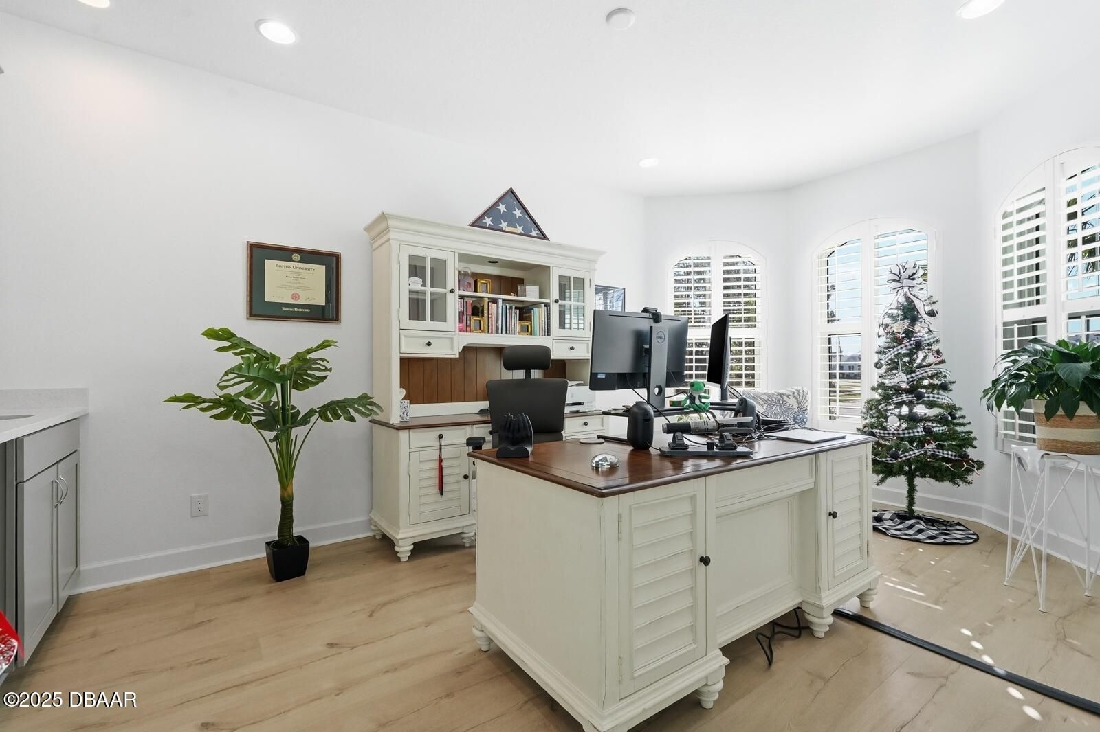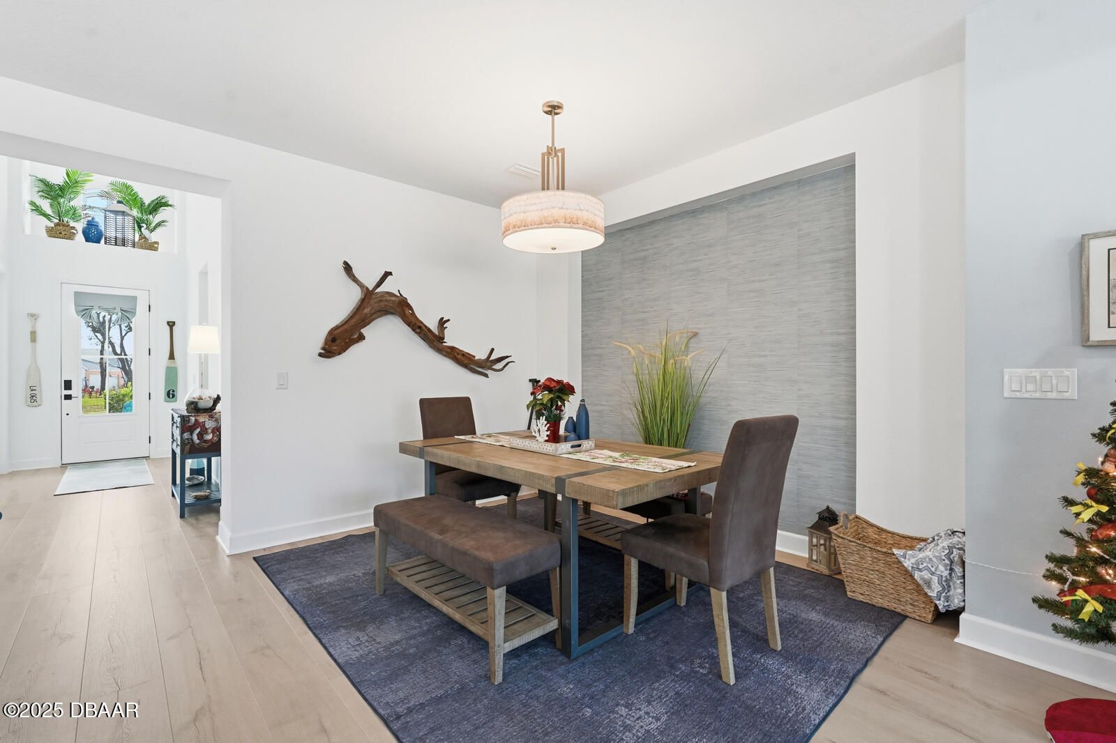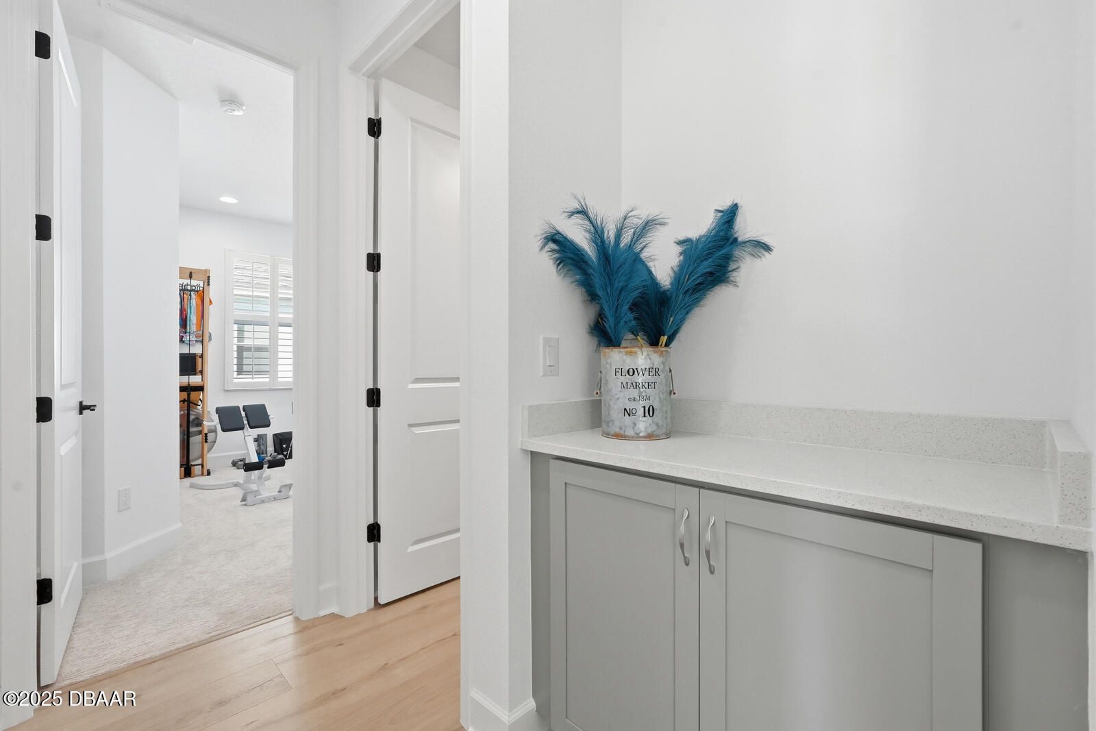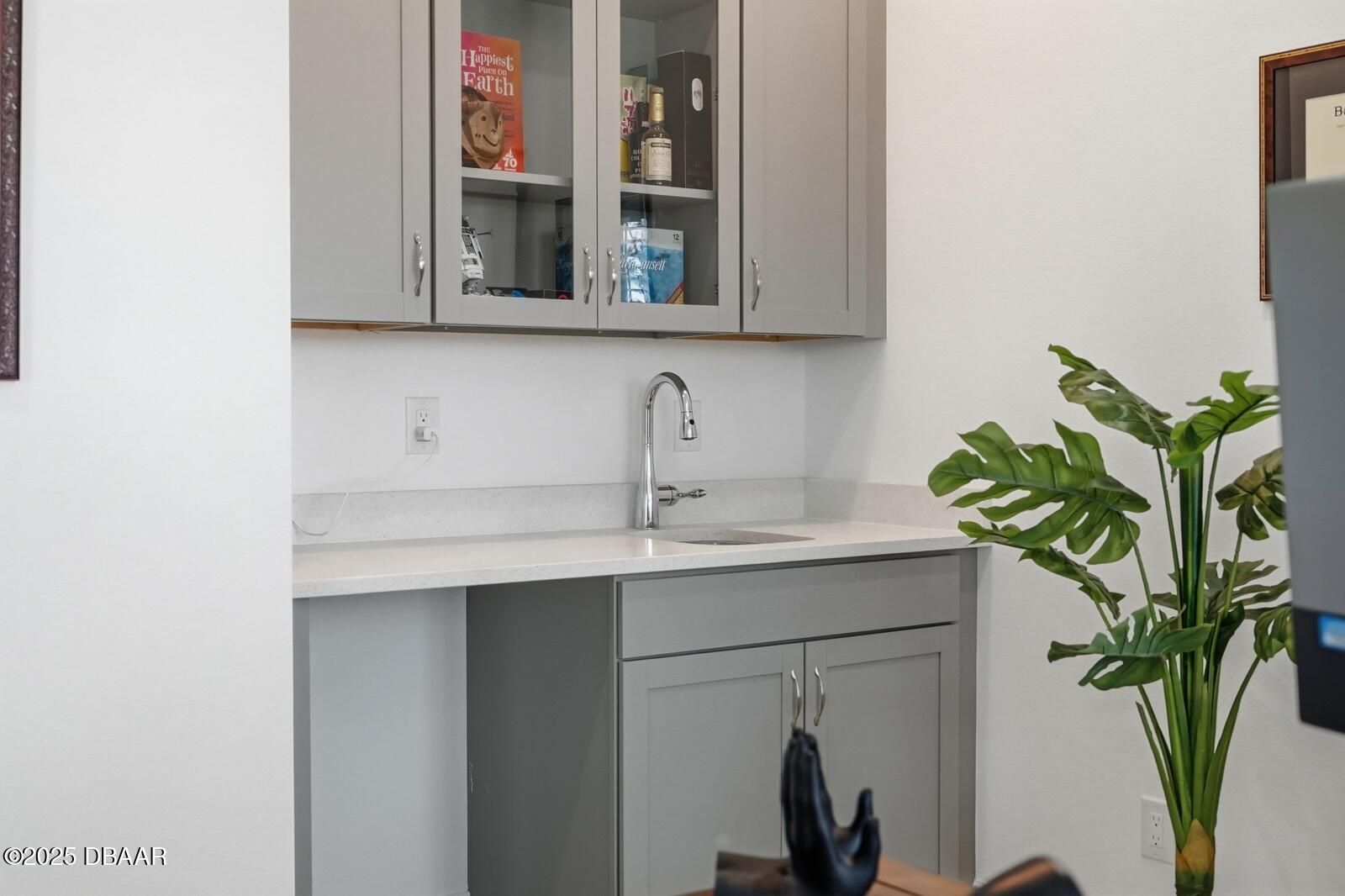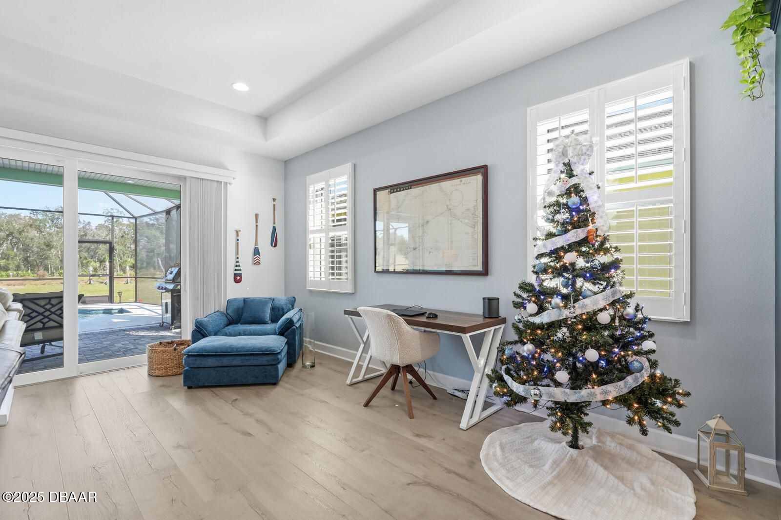 THIS IS THE LIFE! Step inside this gorgeous, single family home, the sought-after BREEZE BAY model WITH POOL in Latitude Margaritaville Daytona Beach and get your first glimpse of your new life in paradise! Only a year old, this 2 bed, 2½ bath beauty has everything you are looking for including a BRAND NEW SALTWATER POOL, recently added. Walking in the door, after taking in the elegant and welcoming entryway, you'll notice glass doors leading to the den, outfitted nicely with a wet bar, upper cabinets with glass doors and space for a wine fridge or kegerator, whichever you prefer! Continuing down the hallway, the space opens up to a stunning open-concept kitchen, dining area and great room. Imagine the entertaining you'll do with a kitchen island this size! With high-end cabinets, quartz countertops, under-cabinet lighting, soft-close doors and drawers, and an upgraded vent over the cooktop, this kitchen is a chef's delight. Top quality flooring runs ... throughout the home with wood-look laminate flooring in the main living areas and tiled bathrooms and laundry. The main bedroom suite is as luxurious as you'd expect with a tropical feature wall and views out the triple windows facing open-space preserves and the lanai. His and Hers walk-in closets, and a full bath with two separate sinks and vanities, a water closet and a roomy corner shower complete your private oasis. Guests will enjoy privacy at the opposite end of the home, as well, with a spacious bedroom and ensuite full bath of their own. Let's step through the triple-slider glass doors to the lanai. There's a large under-roof area for outdoor dining or entertaining you're sure to enjoy. Built in October of 2025, this new saltwater pool is surrounded by a Travertine tile deck and has a heating and cooling system for perfect temperature swimming every time! Plus, it's all inside a new screen enclosure allowing you to enjoy the preserve views any time of day without uninvited insects or grass and leaves finding their way into your pool. This just may be the house of your dreams! Other features include 8' doors and plantation shutters throughout the home, plus a convenient half bath near the entry. Natural gas is available at the stove, laundry dryer and on the lanai for a grill hook-up. There's also hurricane-rated windows, a laundry room with a utility sink and upper and lower cabinets, additional LED lighting throughout the home and an HVAC Comfort Package for humidity control. Everything you need for your new luxurious yet laid back lifestyle. Speaking of lifestyle... Margaritaville offers resort-style amenities, a private beach club, four heated pools, a state-of-the-art gym, and a town center that's a hub of live entertainment. Dine at the Bar and Chill restaurant, get creative at the pottery studio, or craft woodwork in the community woodshop. Furry friends will love the Barkaritaville dog park! Golf cart access to several shopping options make daily errands convenient AND enjoyable! Learn more about the Margaritaville lifestyle and schedule a showing of this gorgeous home TODAY!