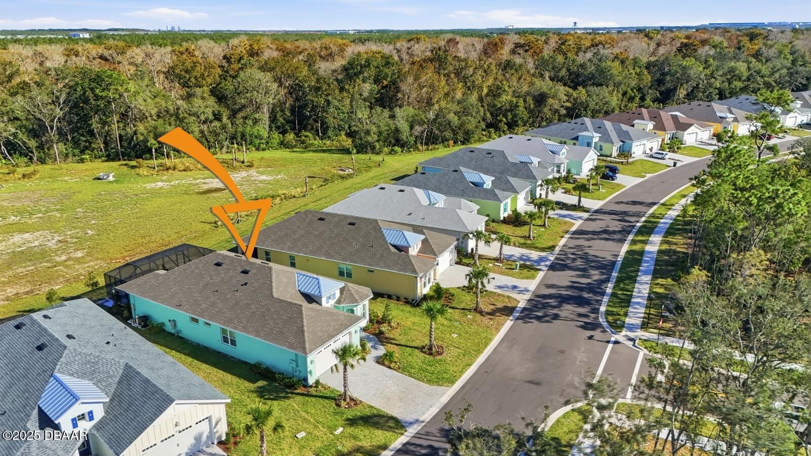 THIS IS THE LIFE! Step inside this gorgeous, single family home, the sought-after BREEZE BAY model WITH POOL in Latitude Margaritaville Daytona Beach and get your first glimpse of your new life in paradise! Only a year old, this 2 bed, 2½ bath beauty has everything you are looking for including a BRAND NEW SALTWATER POOL, recently added. Walking in the door, after taking in the elegant and welcoming entryway, you'll notice glass doors leading to the den, outfitted nicely with a wet bar, upper cabinets with glass doors and space for a wine fridge or kegerator, whichever you prefer! Continuing down the hallway, the space opens up to a stunning open-concept kitchen, dining area and great room. Imagine the entertaining you'll do with a kitchen island this size! With high-end cabinets, quartz countertops, under-cabinet lighting, soft-close doors and drawers, and an upgraded vent over the cooktop, this kitchen is a chef's delight. Top quality flooring runs ... throughout the home with wood-look laminate flooring in the main living areas and tiled bathrooms and laundry. Your bedroom floors are covered with a luxurious, high-pile carpet you'll look forward to sinking your feet into each morning. The main bedroom suite is as luxurious as you'd expect with a tropical feature wall and views out the triple windows facing open-space preserves and the lanai. His and Hers walk-in closets, and a full bath with two separate sinks and vanities, a water closet and a roomy corner shower complete your private oasis. Guests will enjoy privacy at the opposite end of the home, as well, with a spacious bedroom and ensuite full bath of their own. Let's step through the triple-slider glass doors to the lanai. There's a large under-roof area for outdoor dining or entertaining you're sure to enjoy. Built in October of 2025, this new saltwater pool is surrounded by a Travertine tile deck and has a heating and cooling system for perfect temperature swimming every time! Plus, it's all inside a new screen enclosure allowing you to enjoy the preserve views any time of day without uninvited insects or grass and leaves finding their way into your pool. This just may be the house of your dreams! Other features include 8' doors and plantation shutters throughout the home, plus a convenient half bath near the entry. Natural gas is available at the stove, laundry dryer and on the lanai for a grill hook-up. There's also hurricane-rated windows, a laundry room with a utility sink and upper and lower cabinets, additional LED lighting throughout the home and an HVAC Comfort Package for humidity control. Everything you need for your new luxurious yet laid back lifestyle. Speaking of lifestyle... Margaritaville offers resort-style amenities, a private beach club, four heated pools, a state-of-the-art gym, and a town center that's a hub of live entertainment. Dine at the Bar and Chill restaurant, get creative at the pottery studio, or craft woodwork in the community woodshop. Furry friends will love the Barkaritaville dog park! Golf cart access to several shopping options make daily errands convenient AND enjoyable! Learn more about the Margaritaville lifestyle and schedule a showing of this gorgeous home TODAY!