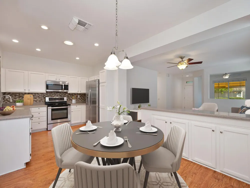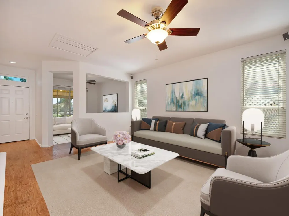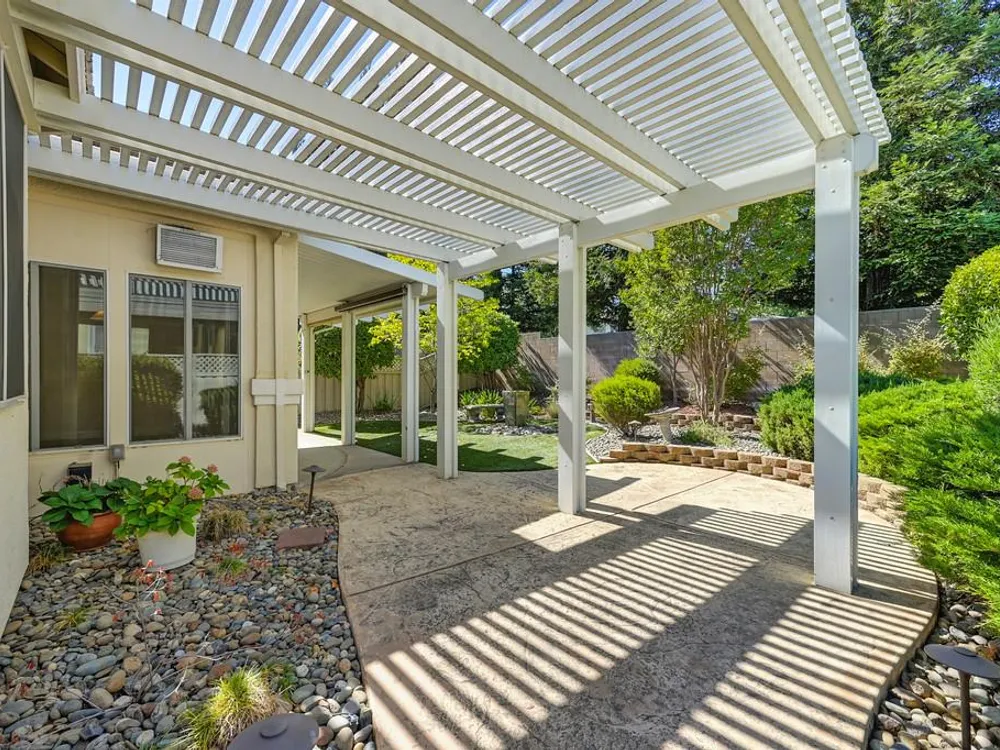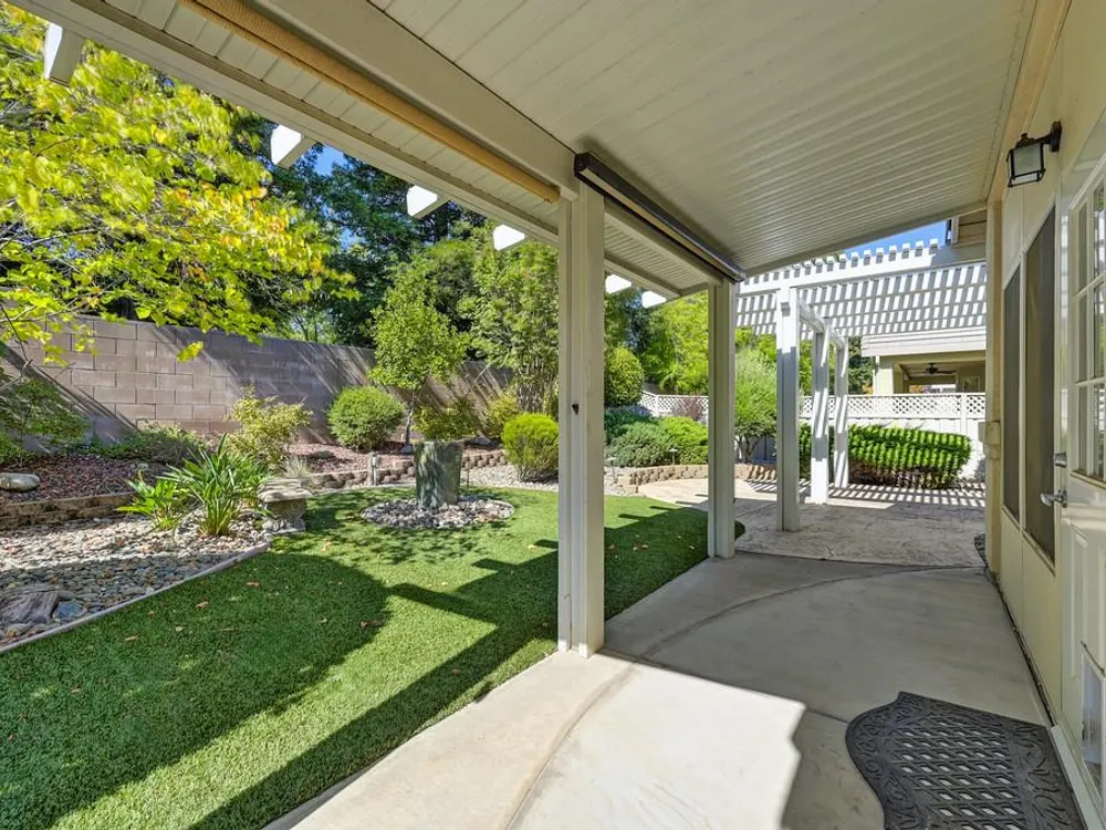 Welcome to this charming Meadow plan home in the highly desirable Sun City Roseville 55 plus active community. This 2 bedroom, 2 bath home also includes an office or den and an enclosed sunroom, providing versatile space for work, hobbies, or relaxation. The home has great curb appeal and features a very low maintenance backyard with a turf lawn that requires no mowing and an equally easy to care for front yard. The kitchen boasts granite countertops, upgraded backsplash, white cabinets, and stainless steel appliances, with the washer, dryer, and refrigerator included. Bathrooms have been thoughtfully updated for a modern touch. Enjoy added comfort and energy savings with solar screens, two overhangs, sun blocking shades, a whole house fan, and solar tubing. With Roseville Electric, your energy costs are significantly lower, adding to the already impressive efficiency of this home. A spacious 2 car garage provides convenience and storage. Residents enjoy resort style amenities including golf, pools, tennis, pickleball, bocce, walking trails, the Timbers Restaurant and Bar, a fitness center, and a wide variety of activity clubs. With no Mello Roos, low HOA, this move in ready home blends comfort, style, and an active lifestyle.