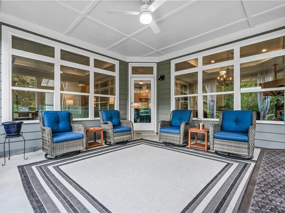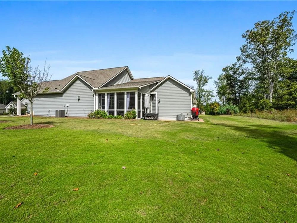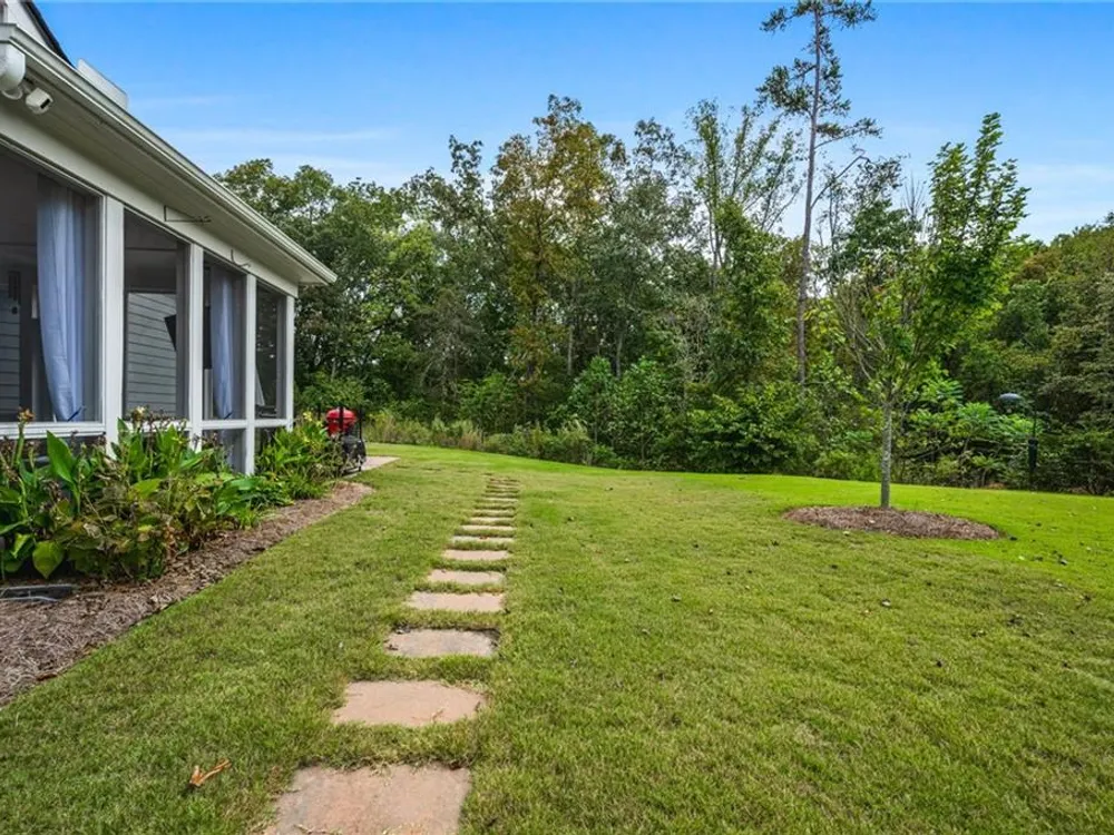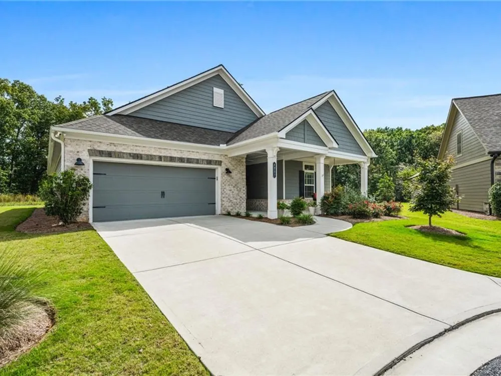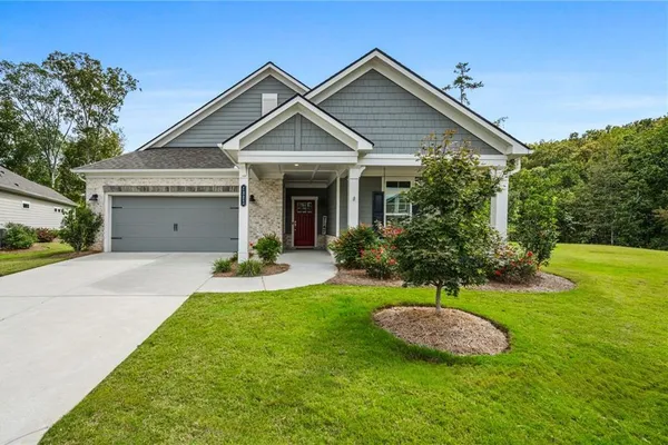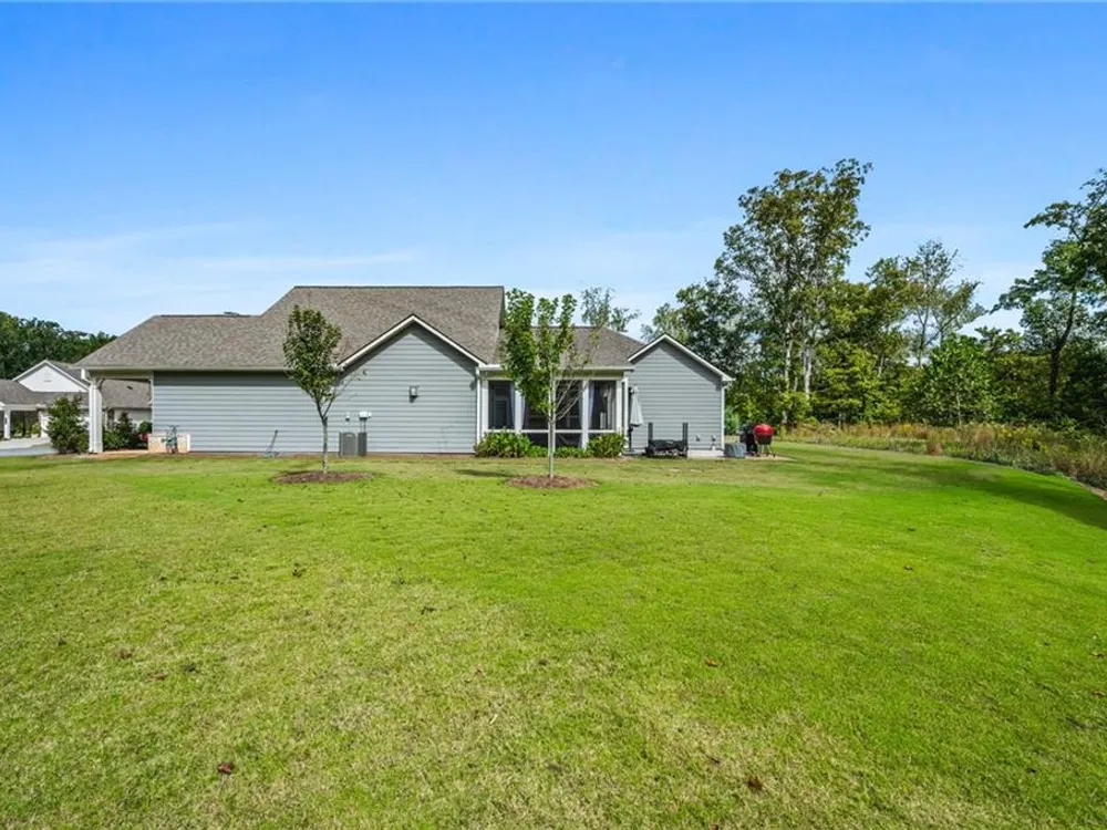 Elegant Garden Home -- Impeccable Upgrades & Serene Setting -- Nestled at the end of a quiet cul-de-sac in one of the area's most desirable communities, this exceptional garden home combines refined design, luxurious finishes, and thoughtful functionality. Spared no expense in its construction, the home showcases numerous upgrades and custom touches throughout, offering the perfect blend of comfort, quality, and sophistication. The inviting front porch -- with charming swing -- sets the tone for the elegance found within. Inside, an open, light-filled floor plan showcases expansive windows overlooking the beautifully manicured backyard and wooded landscape, with the gentle sounds of Allatoona Creek flowing through the county-owned property below. The living room features custom built-in bookcases and is pre-wired for surround sound, creating an inviting space for both relaxing and entertaining. The gourmet kitchen impresses with granite countertops, upgraded farmhouse sink, and abundant cabinetry. Adjacent, the laundry room offers a utility sink and additional built-in cabinets, all crafted with attention to detail. The primary suite is a serene retreat with a custom closet system and a spa-inspired no-step shower featuring a built-in bench and overhead rain shower head. Both bathrooms are enhanced with modern bidets, reflecting a commitment to luxury and comfort. The spacious secondary bedroom is complemented by a large bathroom with a shower/tub combination. A generous study with French doors provides versatility -- perfect for a home office, hobby room, or guest quarters with space for a Murphy bed or daybed. Outdoors, the extended back patio and large screened-in porch -- wired for speakers --create a seamless connection to nature and serve as an inviting extension of the living space. Situated on one of the largest lots in the neighborhood, the property offers rare privacy and tranquility yet maintains a sense of community. Additional highlights include: * Oversized garage with raised flooring, built-in cabinetry by Artisan, and extra storage * Custom closet system in storage room * Lawn sprinkler system for easy maintenance * Active community offering clubs, trivia nights, and special events throughout the year! This home has been meticulously maintained and is presented in pristine condition -- ideal for the discerning buyer seeking a move-in-ready residence that embodies quality and sophistication. This is a 55+ active adult community that allows up to 20% of residents under 55 in accordance with federal housing guidelines.