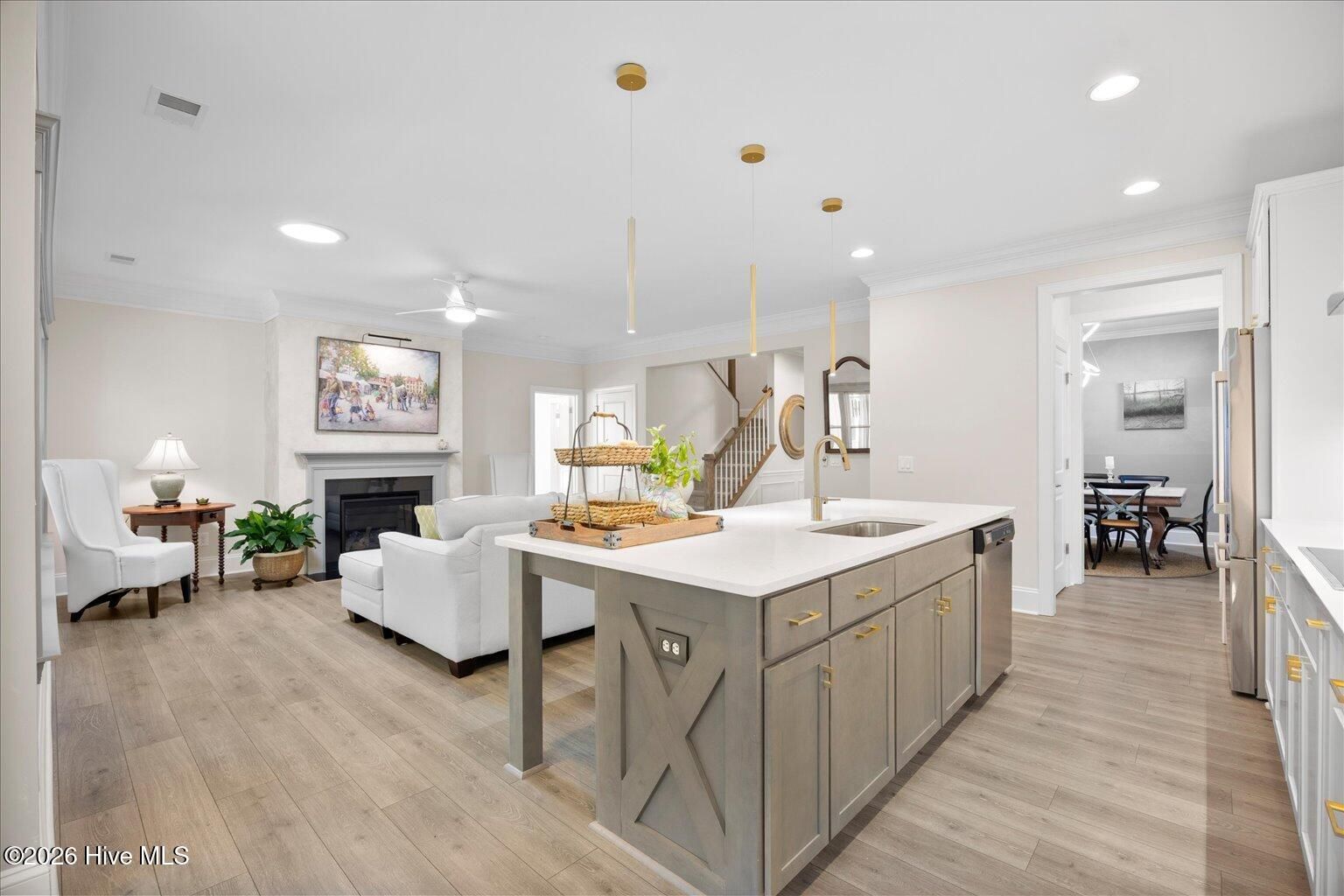 - Master Downstairs, Walk-In Closet(s), High Ceilings, Solid Surface Counters, Kitchen Island, Ceiling Fan(s), Pantry, Blinds