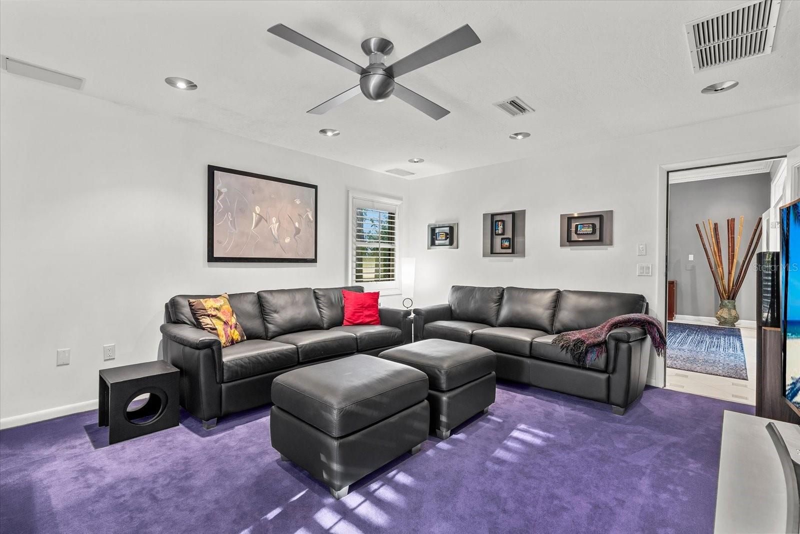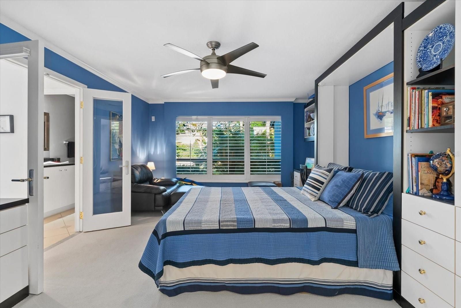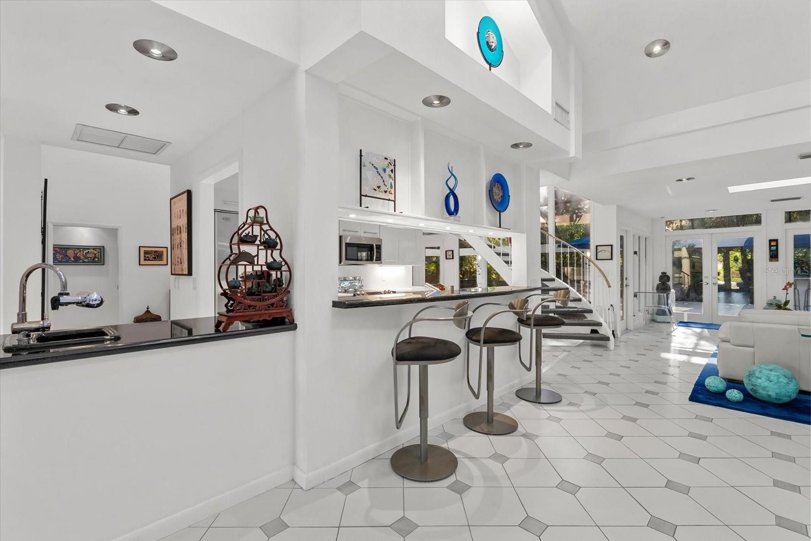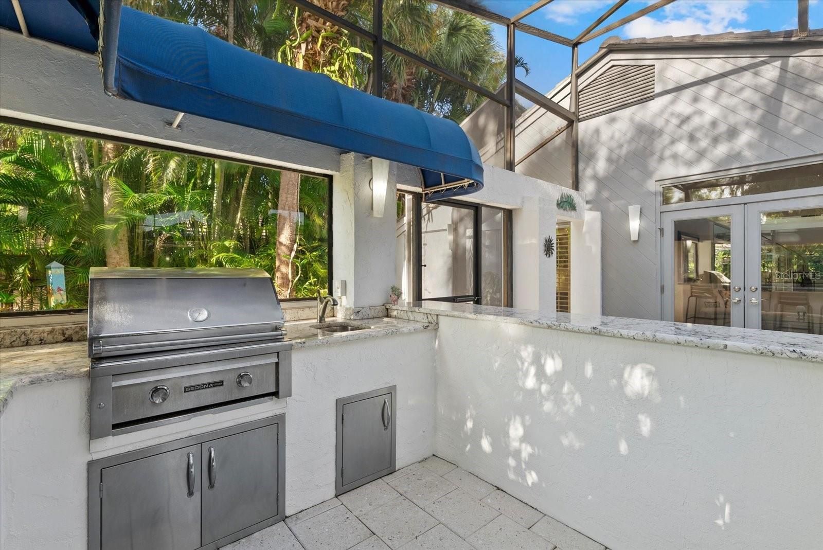 Tucked within the winding, tree-lined streets of one of Sarasota's most coveted west of trail communities, this architectural gem offers a rare opportunity to own a signature custom home in The Landings. With over 3,800 square feet of living space, four bedrooms, four full baths, and a powder room, this 1983 residence is the epitome of elevated design - where bold architectural character meets serene, sanctuary-style living. Soaring vaulted ceilings and dramatic spiral stairwells set the tone from the moment you enter. An elevated library nook invites quiet retreat, while custom stained glass windows cast beautifully filtered light throughout the day. A dedicated meditation space adds a dimension of wellness rarely found in residential design - your own private escape to find balance and calm. The outdoor living experience has been thoughtfully reimagined. A resurfaced private pool anchors the expansive lanai, now complemented by a generous outdoor kitchen ideal for entertaining or simply savoring the Florida lifestyle in style. Life at The Landings extends well beyond your front door. Winding roads shaded by mature canopy trees, neighborhood lakes, parks, and nature trails create an idyllic backdrop for morning walks, cycling, and quiet reflection. Residents enjoy direct access to Roberts Bay, and the community's optional Racquet Club offers swimming, tennis, and lessons just a short bike ride away — a lifestyle as active or as tranquil as you choose. This is more than a home. It is a retreat, a statement, and a community.