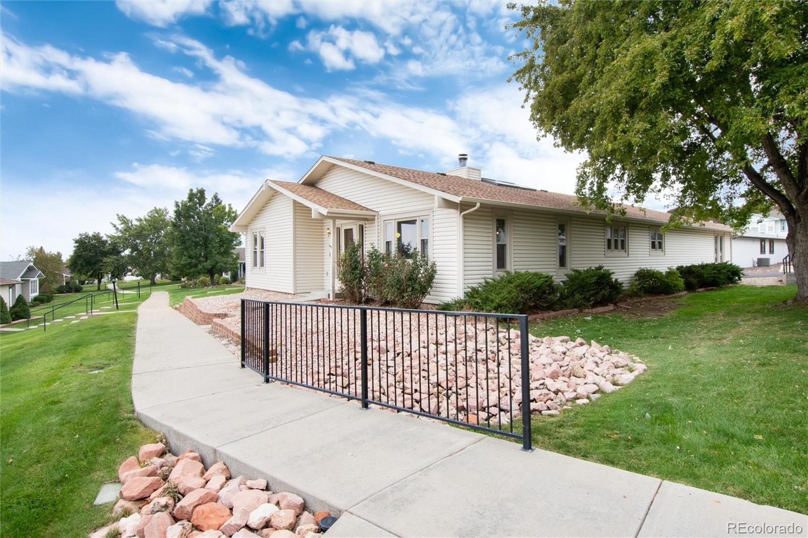 Welcome to 49 Carla Way, a charming retreat nestled in the heart of Broomfield's desirable 55+ community. This timeless single-story home, built in 1981, offers a rare find with 3 bedrooms and 2 bathrooms, set within the tranquil Gate N Green Community. As you step inside, a welcoming foyer opens up to an expansive living area where you can relax in a sunken conversation space by the cozy fireplace. The kitchen is a delight for any cook, featuring a spacious island perfect for meal preparation, and a breakfast bar that seamlessly connects to the family room. Enjoy dining in the elegant formal dining room or savor casual meals in the versatile covered sunroom, complete with skylights and a ceiling fan, an ideal space for an office, reading nook, or craft area. The primary bedroom is a peaceful oasis, complete with a sizeable closet and a luxurious 5-piece bath. Two additional bedrooms offer plush new carpet and ample closet space, with one leading to a private enclosed patio. Benefit from the convenience of an attached garage with ample storage cabinets. This pet-friendly abode also includes central air conditioning a dedicated laundry area for added comfort and freshly painted throughout the home. The self-managed Gate N Green gated community enhances your lifestyle with amenities such as a clubhouse, pool, gym, pond, and lush gardens, making every day feel like a getaway. Experience the elegance and charming character of this lovely Broomfield home, thoughtfully designed for your delight.