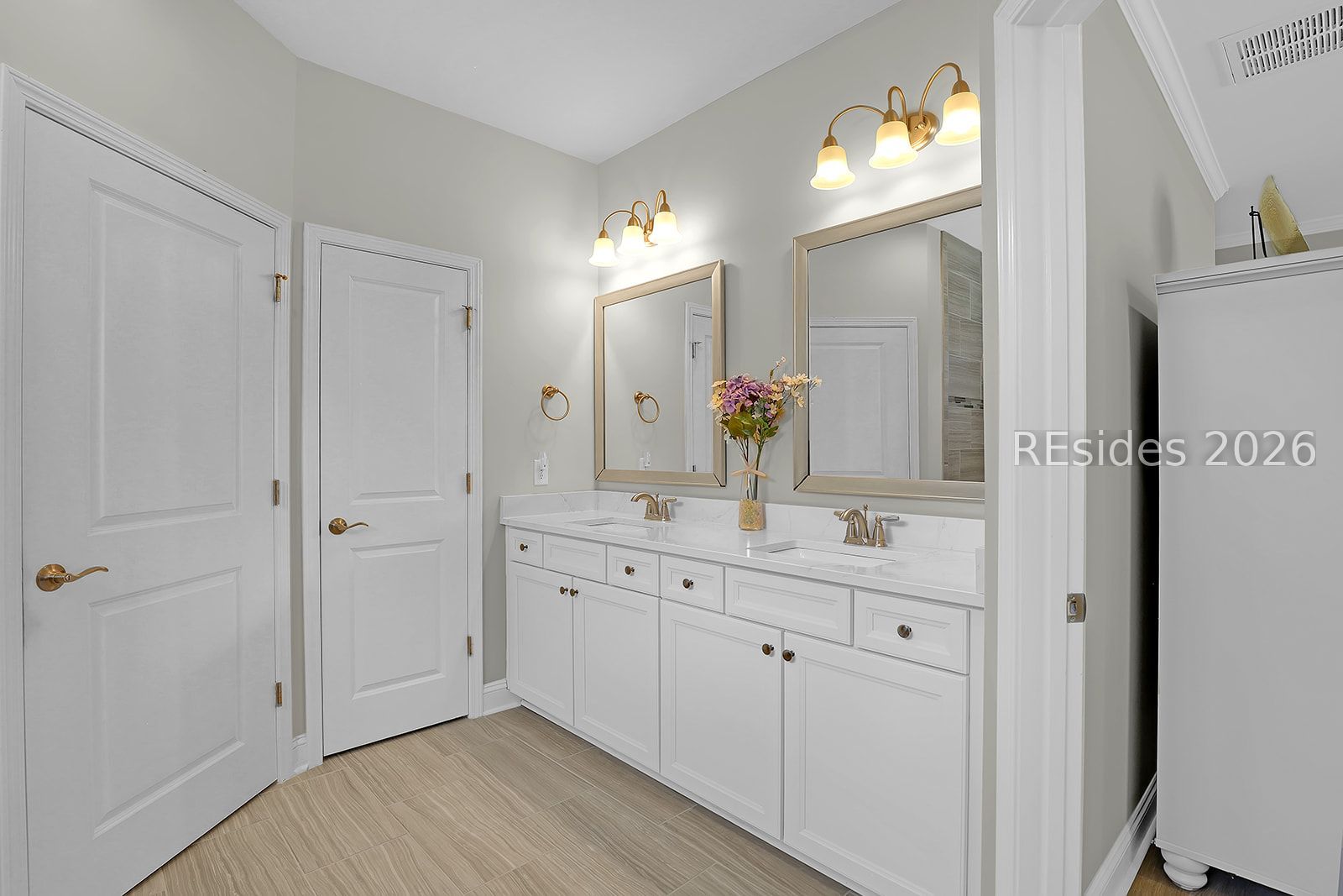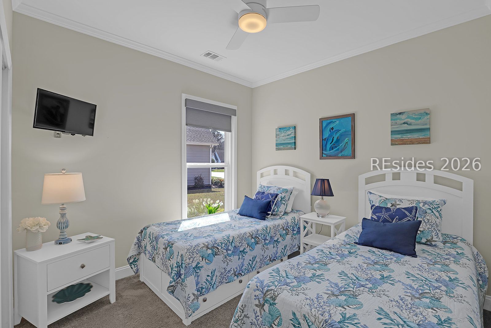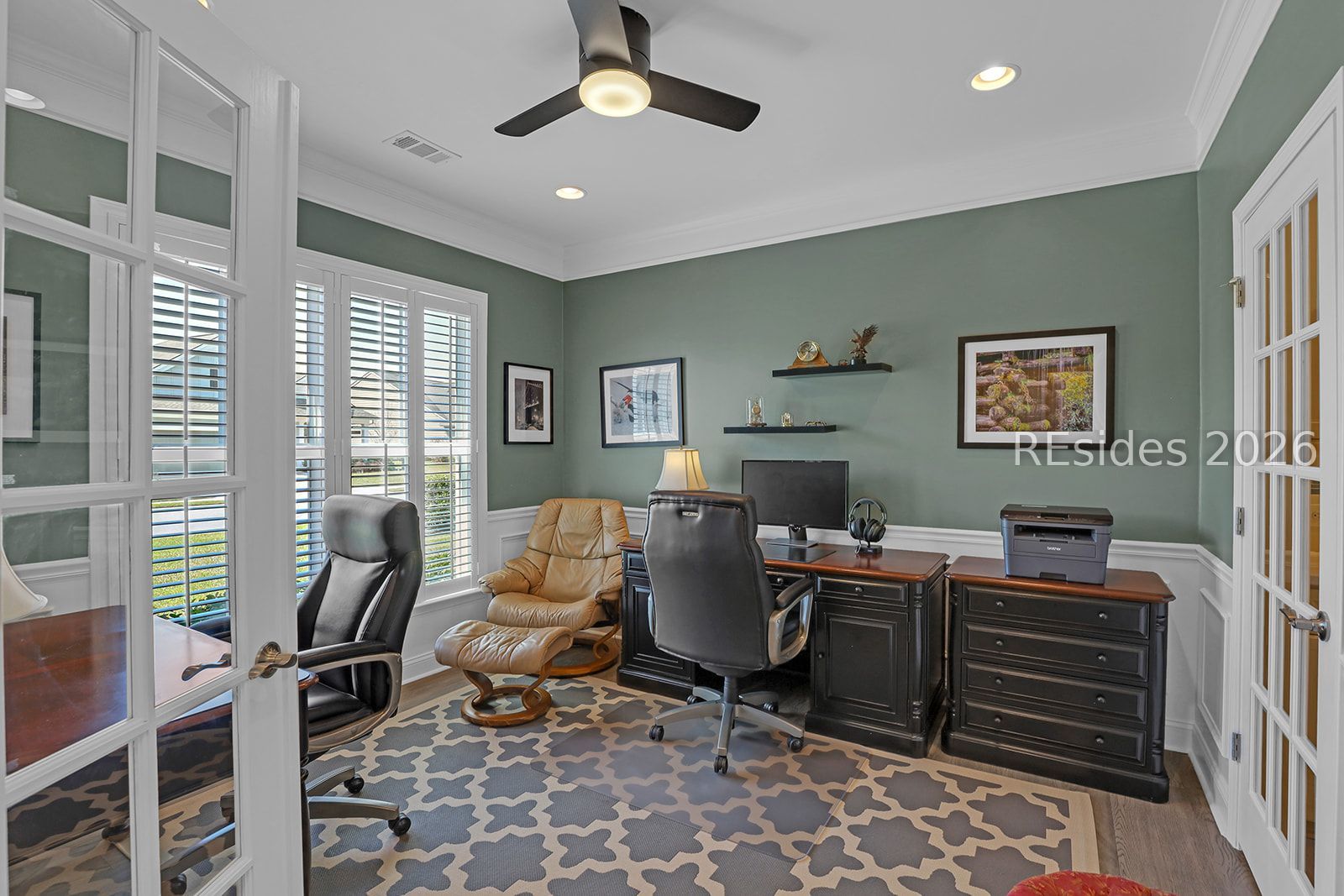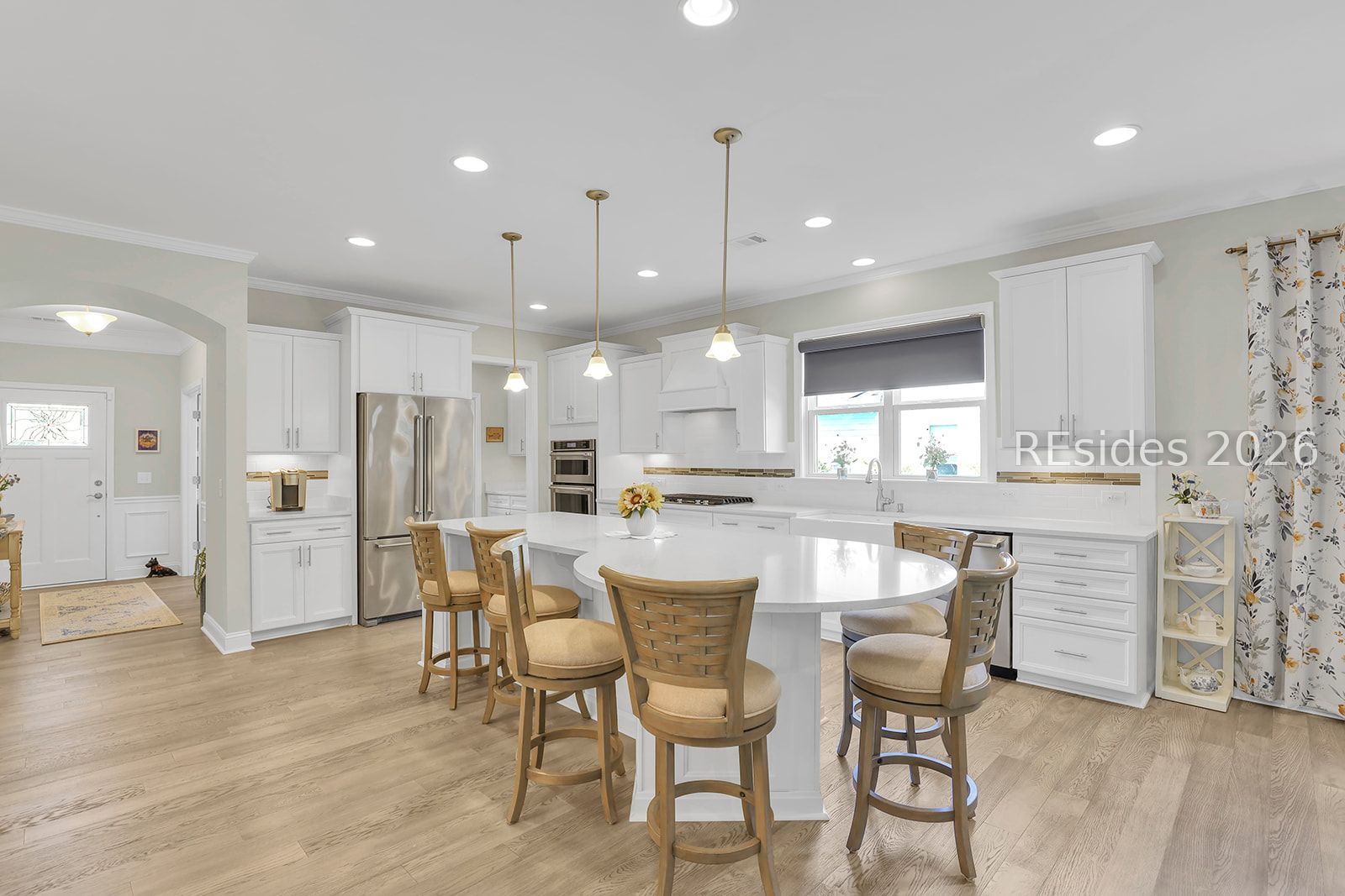 Located on one of the friendliest streets in The Haven, a vibrant 55+ community of just 500 homes, this beautifully appointed residence offers the perfect blend of comfort, convenience, and active lifestyle living with amenities to keep you as busy as you wish. Designed with both everyday living and hosting in mind, this home features 3 bedrooms plus a library, providing ideal accommodations for guests or flexible living space. At the heart of the home, the chef-inspired kitchen showcases stunning white-veined quartz countertops, stainless KitchenAid appliances, white cabinetry, and a generous center island with abundant seating, making it the natural gathering place for family and friends. The spacious great room features a cozy gas fireplace and flows seamlessly into a dining area large enough to accommodate a full dining suite-perfect for entertaining. Enjoy year-round Lowcountry outdoor living on the screened porch with vinyl sliding windows and its own mini-split heating and air system, creating a comfortable retreat in every season. The primary suite offers a luxurious oversized tiled shower, double vanities, and a customized walk-in closet, providing both style and function. This thoughtfully designed home also includes an impressive list of upgrades and convenience features, including permanent stairs to a floored walk-in attic for over-garage storage, customized pantry and storage room, a 22KW Generac generator, roll-down hurricane shutters, plantation shutters, and an air-purifier ionizer system. A wonderful opportunity to enjoy Lowcountry living in one of the area's most welcoming active adult communities.