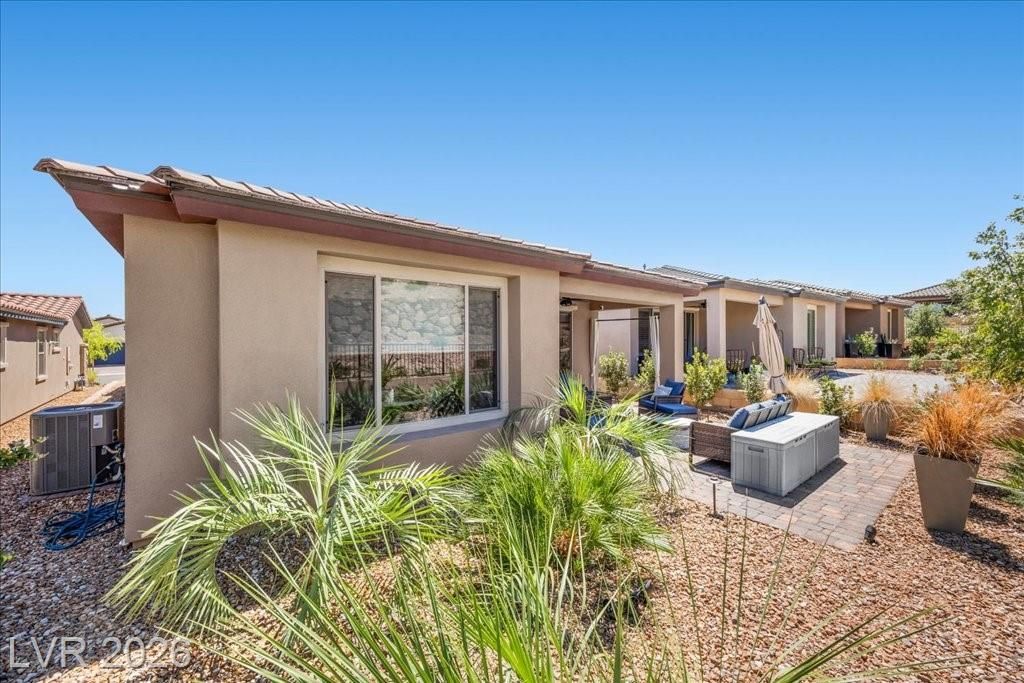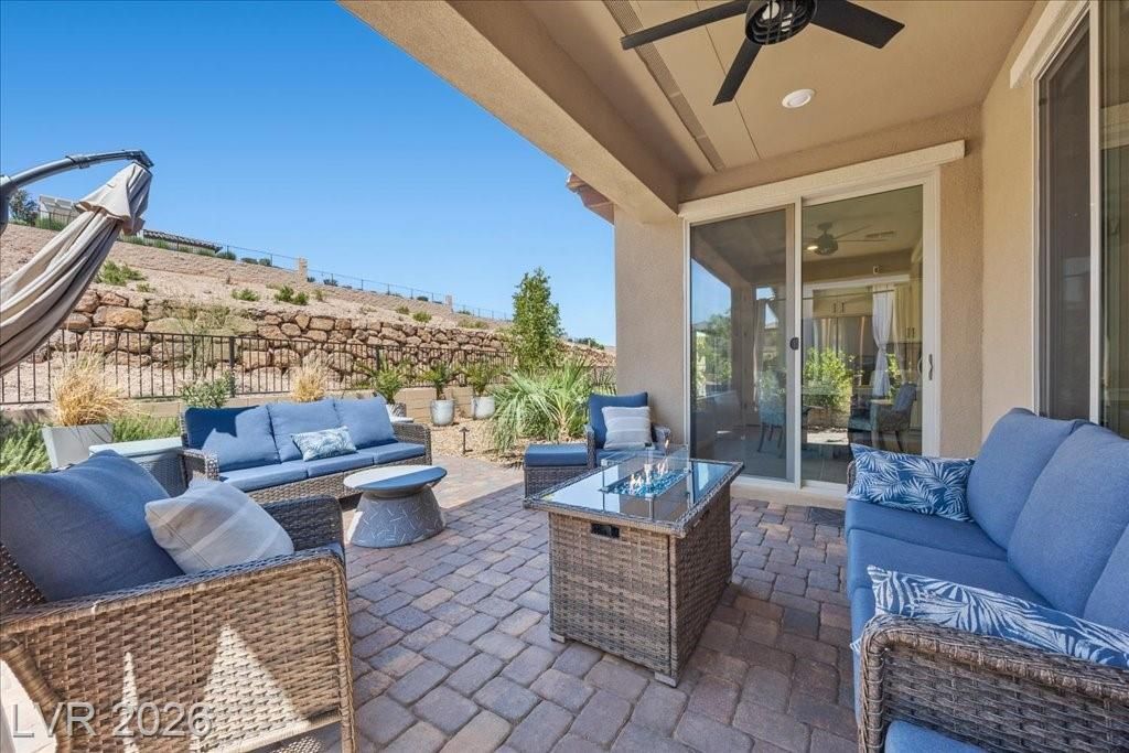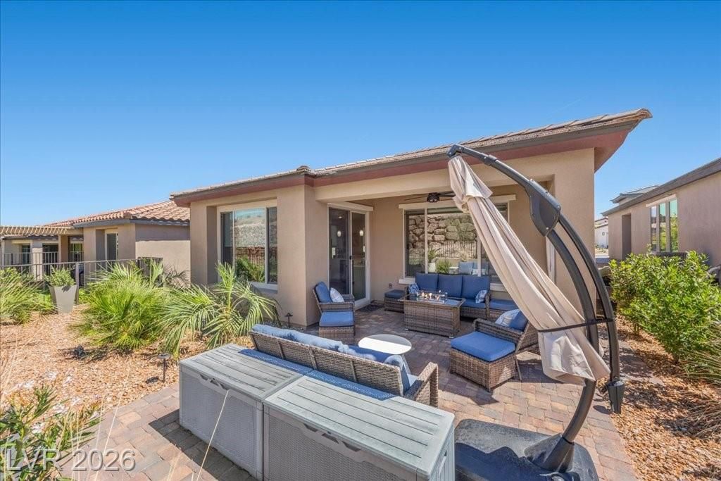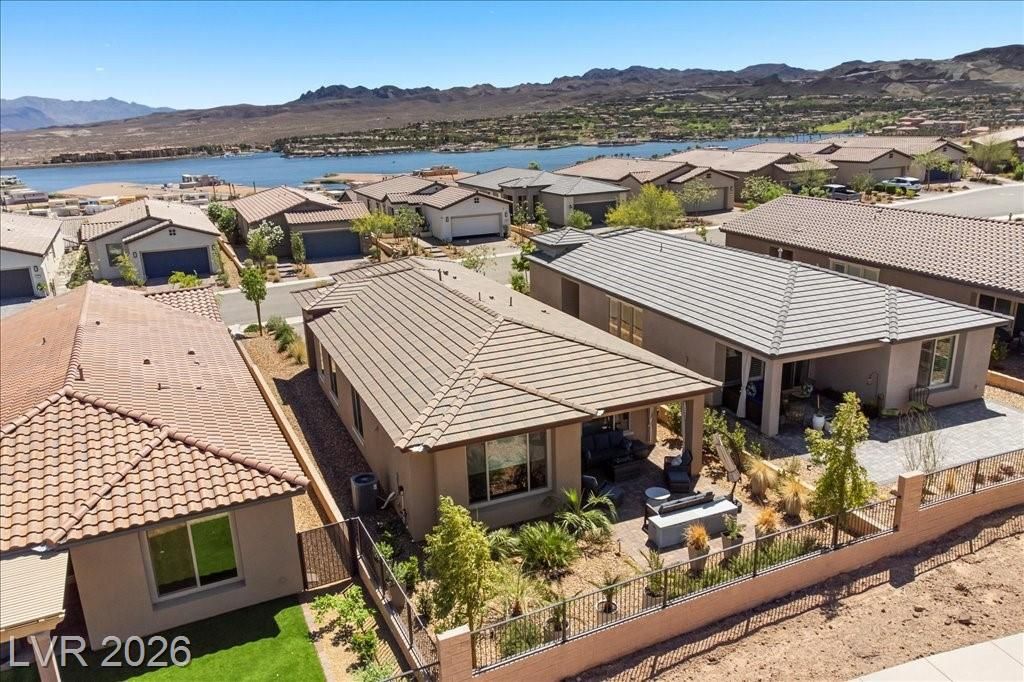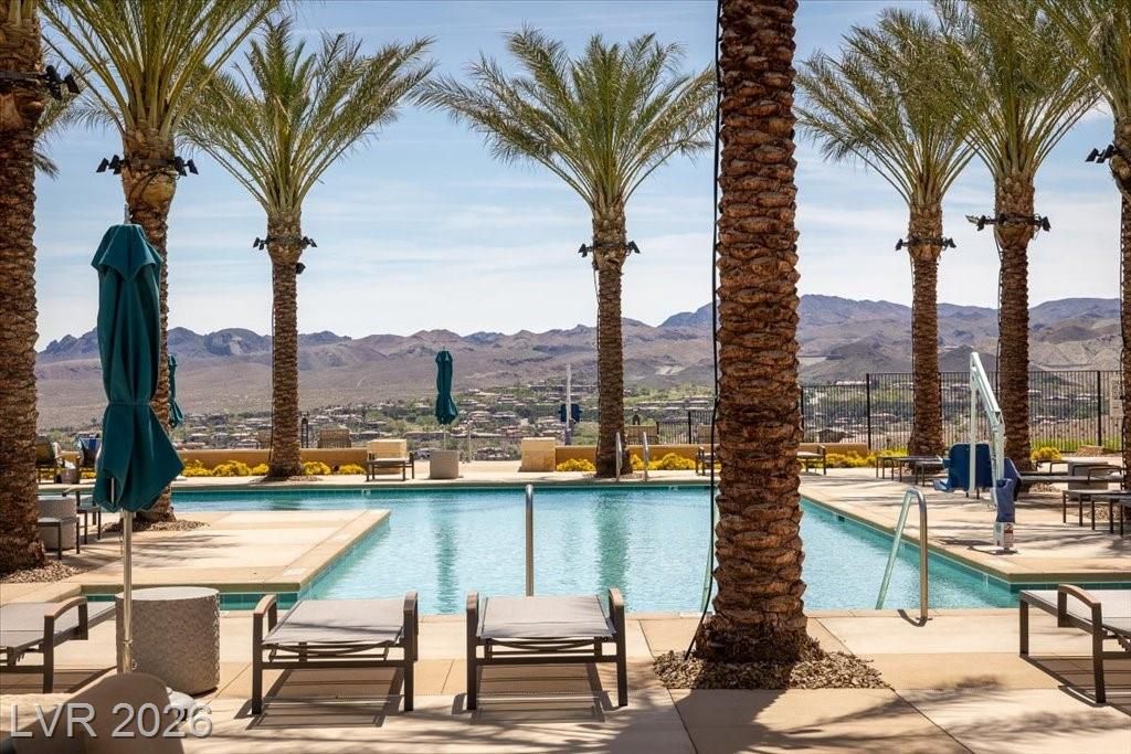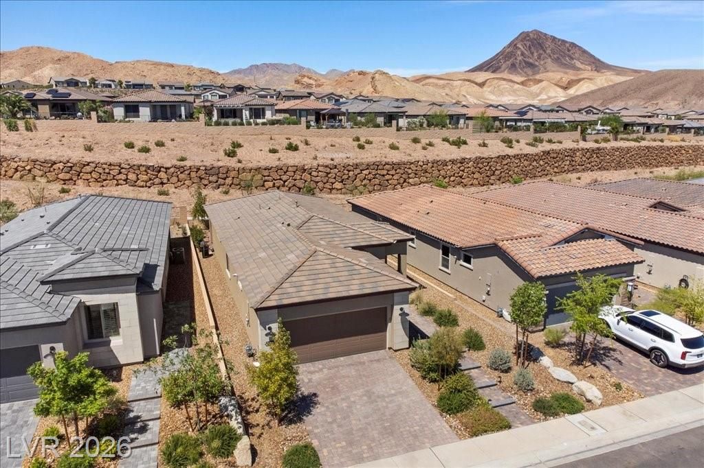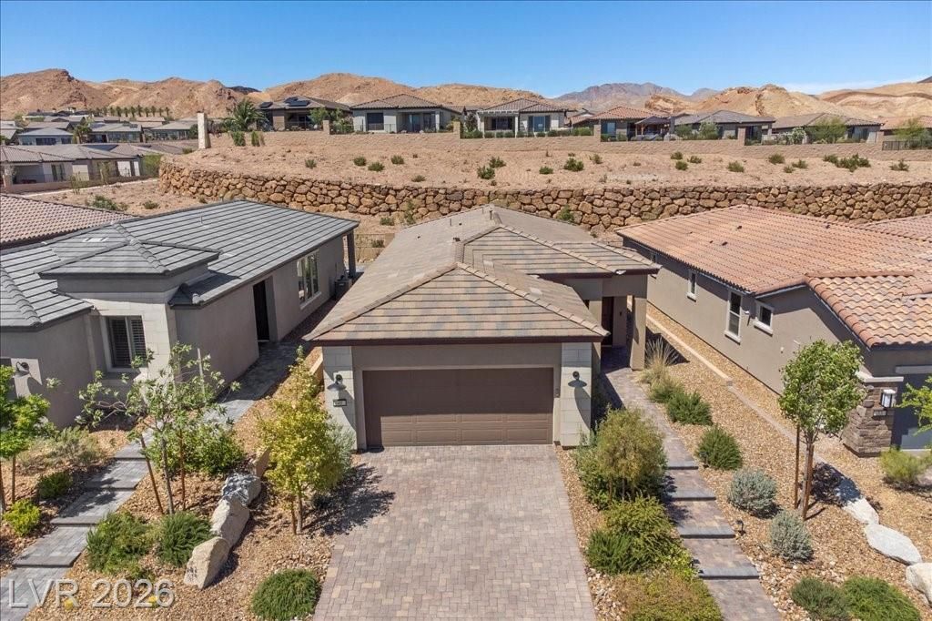 Live in the award-winning Del Webb community of Lake Las Vegas! This stunning newer home has been meticulously cared for and decorated like a model. Premium location with no neighbors directly behind, plus beautiful mountain views. Enjoy a fenced in tropical backyard with lush landscaping and custom lighting for the perfect evening ambiance. Bright open floor plan with soaring ceilings, abundant windows, and natural light. Modern tile flooring throughout main living areas carpet in bedrooms. Upgraded kitchen features quartz countertops, breakfast bar, and stainless steel appliances. Primary suite is privately separated from the secondary bedroom, with walk-in closets. Water softener filtration system, tankless water heater, and spacious laundry room with cabinets and sink. Resort-style clubhouse amenities with incredible views! This home is not to be missed as you will love to call this your home!