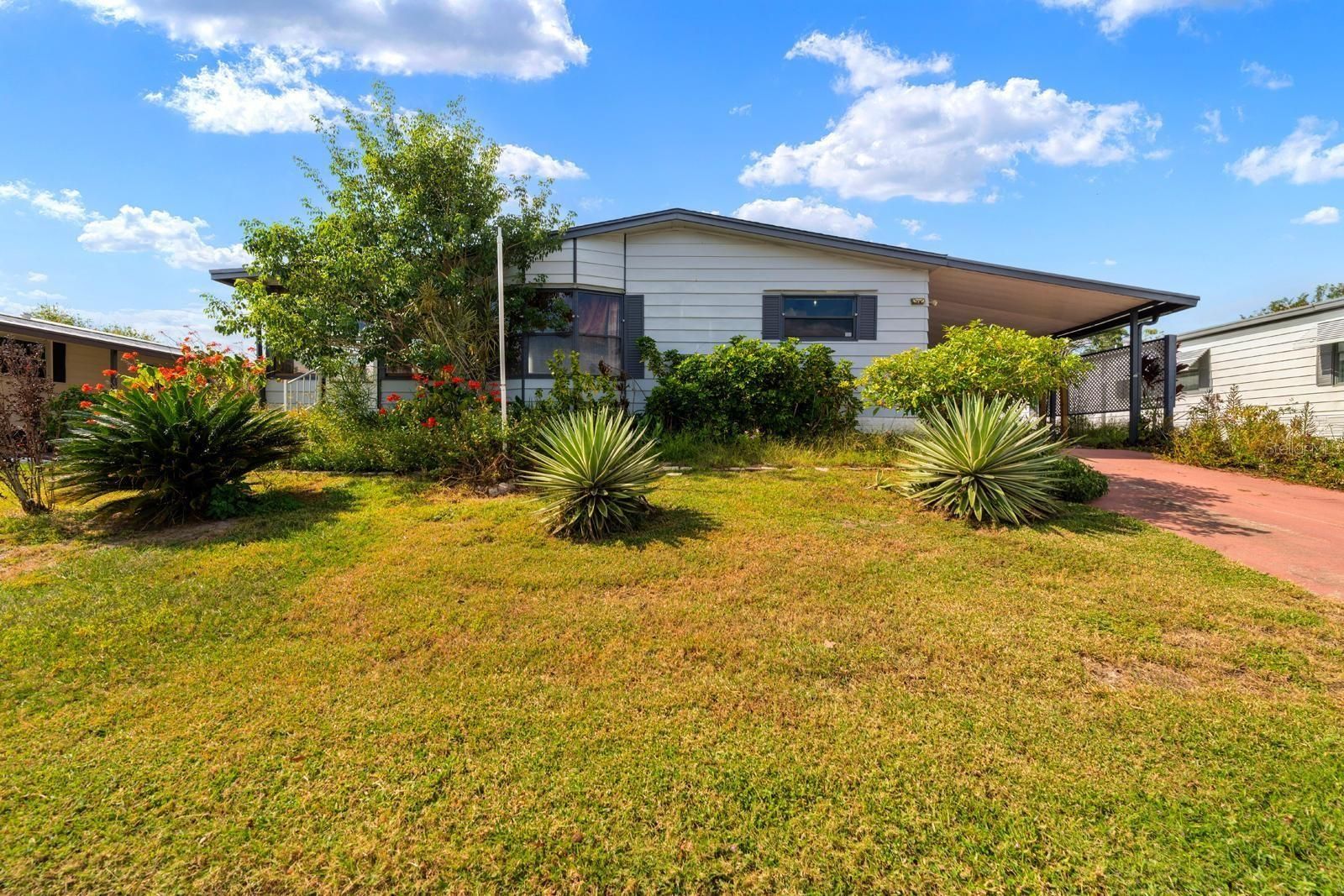 Hurry—this one won’t last! Step inside this warm, inviting, and well-maintained 2-bedroom, 2-bath home located in the highly sought-after 55+ community of Foxwood Lake Estates. From the moment you enter, you’ll love the spacious open layout, vaulted ceilings, and natural light streaming through the bay window and sliding glass doors that lead to the enclosed Florida room—a perfect spot for morning coffee or quiet afternoons. The kitchen features a convenient pantry, breakfast bar, and plenty of counter space, while the large master suite offers a walk-in closet, private bath with walk-in shower, and enough space for a cozy sitting area or home office. The guest bedroom and bath provide ample comfort for visitors, and the inside laundry room with cabinets adds extra convenience and storage. Enjoy the benefit of owning your land—no lot rent! The property also includes a two-car carport and storage room for all your essentials. Foxwood Lake Estates offers a vibrant lifestyle with a clubhouse, heated pool overlooking a scenic pond, and a full calendar of community activities. Conveniently located near I-4, you’ll have easy access to medical facilities, restaurants, and shopping malls, plus you’re only 35 minutes from Disney and 45 minutes from two international airports. Don’t miss this chance to live the Florida lifestyle you’ve been dreaming of—schedule your showing today!