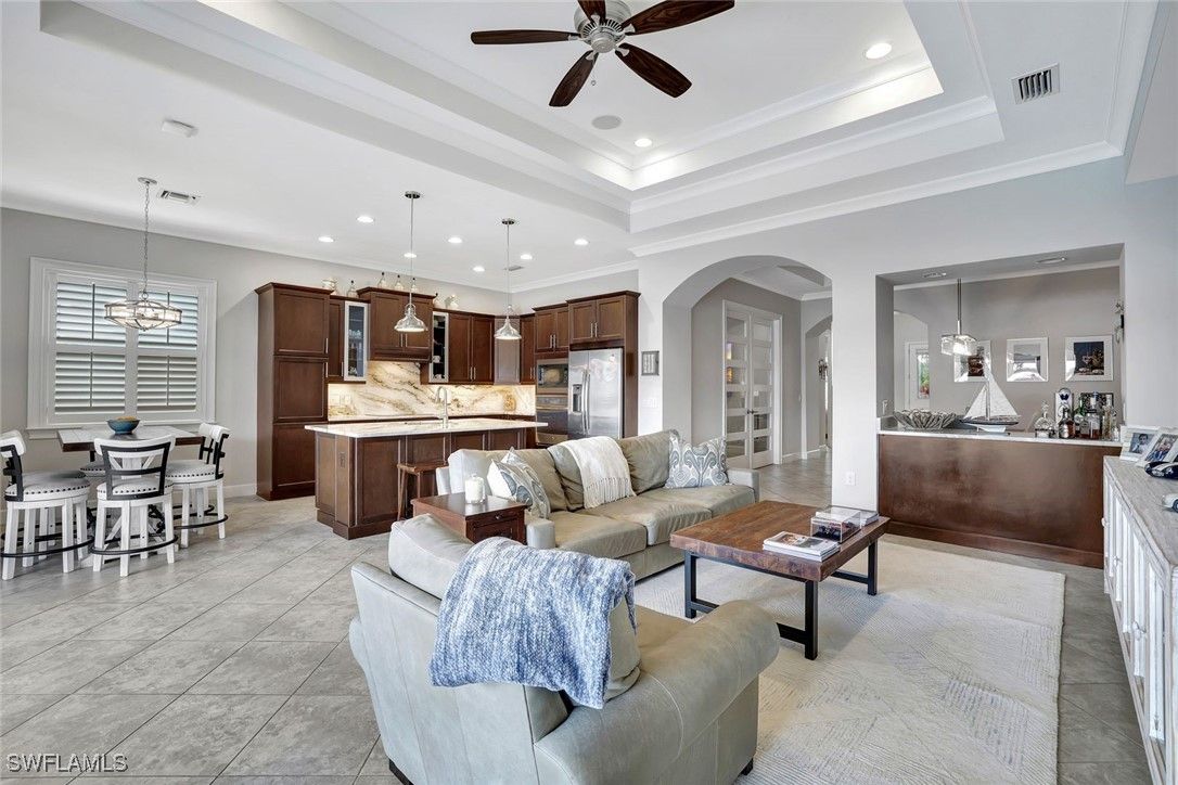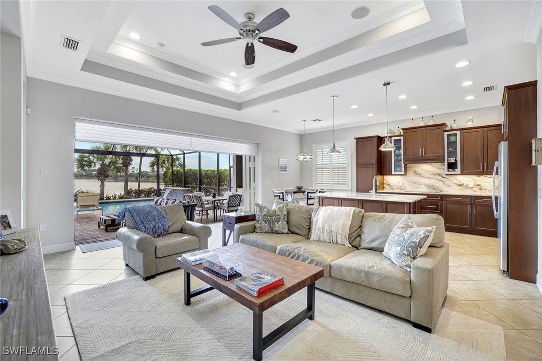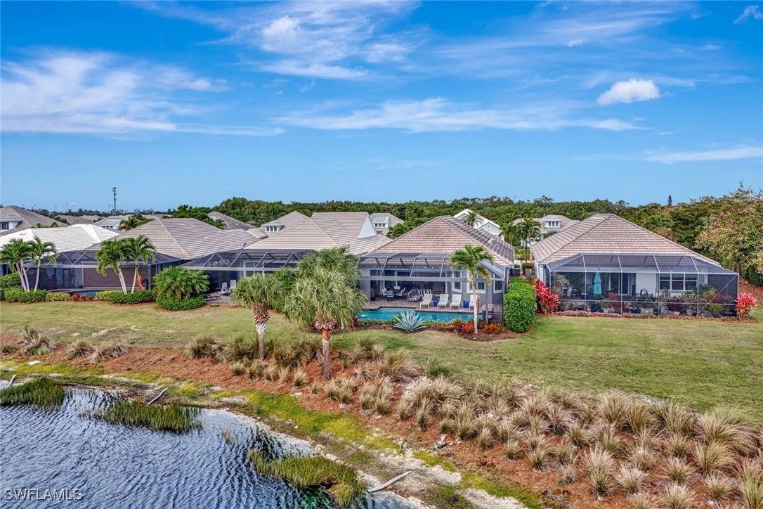 DO NOT MISS OUT!!! A Rare Offering with EXPANSIVE LONG LAKE VIEWS!!! Exceptional ultra- private residence showcasing one of the most breathtaking and rarely available long lake views in The Isles of Collier Preserve. From the moment you enter, your gaze is drawn through the home to the shimmering water beyond—an immediate sense of serenity that defines this refined coastal retreat. By night, the scene transforms into pure drama with upgraded pool and landscape lighting reflecting beautifully across the lake. Resort-Style Outdoor Living at Its Finest! Designed to celebrate the Naples indoor-outdoor lifestyle, the home opens to a sparkling pool framed by an upgraded panoramic cage for uninterrupted water views. Two elegant waterfall features anchor each end of the pool, creating a tranquil, resort-inspired atmosphere. An outdoor kitchen and shaded lounge areas overlook the water—perfect for alfresco dining, entertaining, or quiet moments of relaxation in a truly tropical setting. The expansive Great Room is the heart of the home, enhanced by a fully retractable impact-rated sliding glass door system that seamlessly blends indoor and outdoor living. Soaring 10- and 12-foot tray ceilings amplify the open, airy feel, while the thoughtfully designed ALAMANDA floor plan offers 3 bedrooms plus a den and 3 baths.The den, accented with French doors, provides a versatile space for a home office or private retreat. Impact windows, doors, and sliders throughout offer both peace of mind and polished style. The chef’s eat-in kitchen is both stunning and functional, featuring an induction cooktop, wall oven and microwave, and an oversized conversation island that naturally becomes the gathering place for family and guests. Flowing effortlessly into the dining and living areas—and out to the screened lanai—the layout is ideal for both intimate evenings and larger gatherings. The split-bedroom design ensures privacy for all. The owner’s suite is a true sanctuary, offering peaceful pool and lake views and a dream-worthy walk-in closet large enough to accommodate a center island. A space designed for luxury, comfort, and calm. The two-car garage is enhanced with a custom rack lift system, providing storage for a third vehicle or additional out-of-the-way storage—perfect for car enthusiasts or those who value smart design. Upgrades include: Wired Sonos speakers, Plantation shutters, upgraded landscape and pool lighting package. Experience the pinnacle of luxury coastal living where nature and elegance coexist in perfect harmony. Residents enjoy world-class amenities including preserved natural landscapes, biking and kayaking trails, resort-style pools, tennis and pickleball courts, a state-of-the-art fitness center, clubhouse, and the waterfront Overlook Bar & Grill. Welcome to The Isles of Collier Preserve—one of Naples’ most special and sought-after communities.