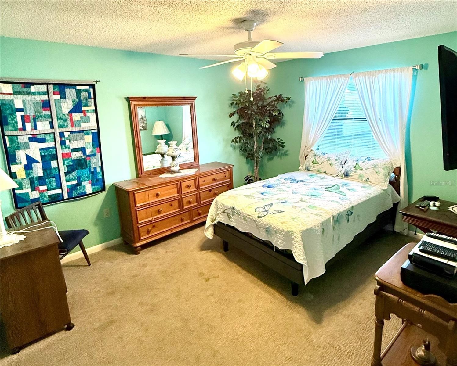 - Ceiling Fan(s), Eat-in Kitchen, Living/Dining Room, Main Level Primary, Split Bedrooms, Walk-In Closet(s), Window Treatments