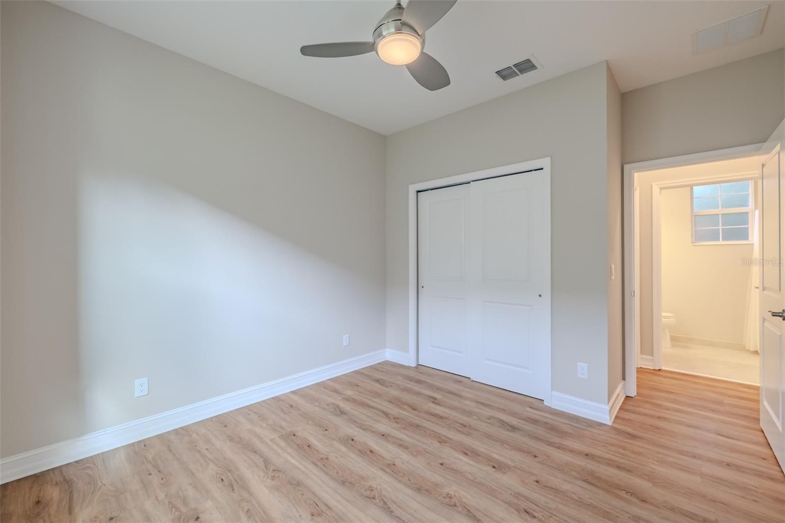 - Ceiling Fan(s), Eat-in Kitchen, High Ceilings, Living/Dining Room, Open Floorplan, Main Level Primary, Solid Surface Counters, Solid-Wood Cabinets, Thermostat, Walk-In Closet(s)