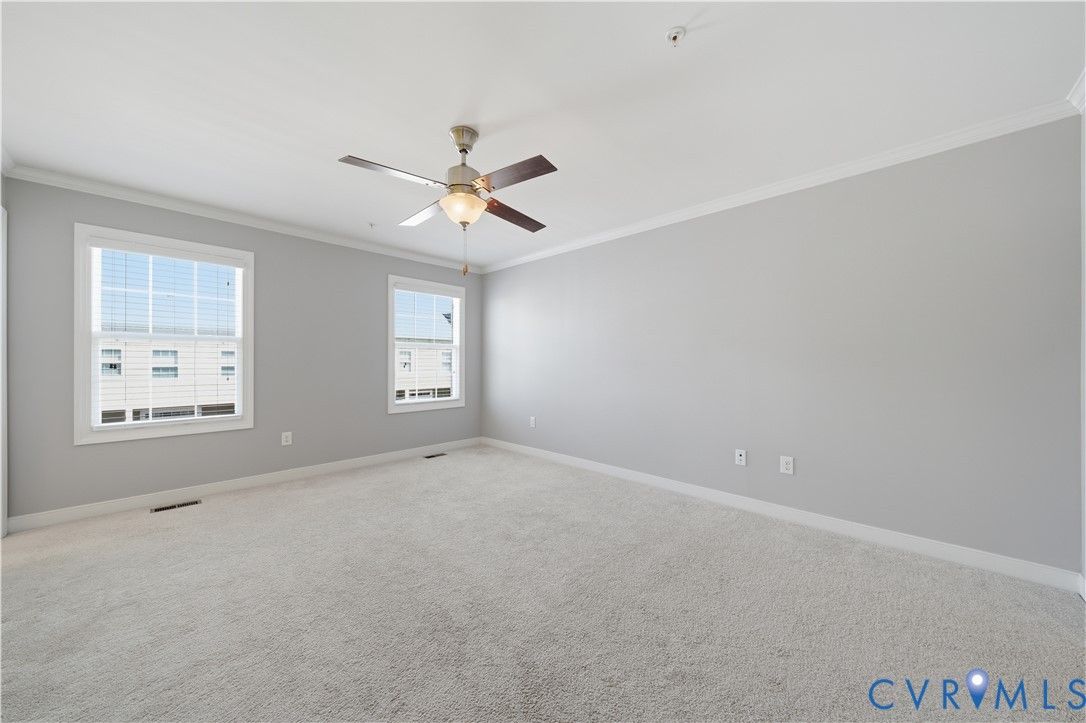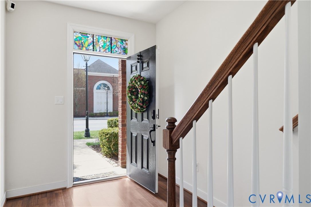 This elegant 4-story brick townhome in New Town Williamsburg offers exceptional convenience with grocery stores, restaurants, banks, fitness centers, medical offices, and local shops all within walking distance. Colonial Williamsburg, William & Mary, Busch Gardens, and Water Country USA are just minutes away. The versatile floor plan is ideal for multi-generational living, featuring three private suites, each with its own full bathroom and walk-in closet. One suite is located on the first floor, providing a great option for guests, in-laws, or older children, while two additional suites are on the third floor. The second level features an open-concept layout with a spacious living room, dining area, and half bath. The kitchen is equipped with gas cooking, a granite island, and a brand new LG French door refrigerator. The living room includes an electric fireplace and UHD Curved TV with Surround Sound. The adjacent porch offers a gas hookup for grilling. Laundry Room on 3rd Level with new Samsung Washer & Dryer. The fourth floor includes a sitting area that opens to a rooftop terrace with expansive views, ideal for outdoor enjoyment. The HOA has recently completed exterior improvements, including soft washing, new trim and paint, siding replacement, and a full roof replacement. Community amenities include a pool and organized events throughout the year.
