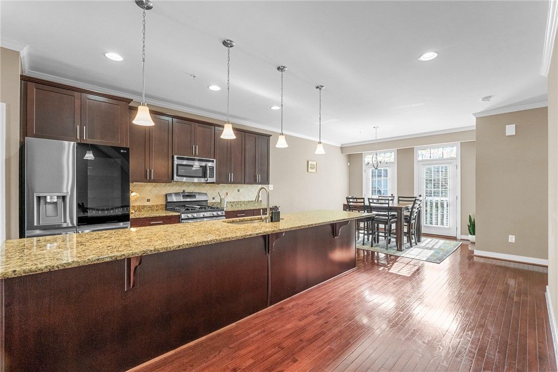 Elegant 4-story brick New Town Williamsburg townhome features 3 private primary suites with large baths and walk-in closets, an open 2nd-floor living area with chef’s kitchen, huge granite island, and gas range. Includes curved UHD TV with surround sound, designer fireplace, and porch with gas hookup. Third floor offers 2 grand suites and laundry with new Samsung appliances. First-floor suite great for guests plus 2-car garage. Fourth floor adds a sitting room and large rooftop patio. Smart tech, blinds/drapes, and strong HOA with recent exterior upgrades including full roof replacement all included. Prime location-3 grocery stores within minutes plus HomeGoods, World Market, Michael’s, Ulta, restaurants, banks, Starbucks, a new Riverside Health facility. All within the area of New Town are Regal Cinema, Planet Fitness, Panera, Bonefish Grill, Barnes & Noble, & more. Quick access to bus route, Target, Publix, Belk, Colonial Williamsburg, William & Mary, and Busch Gdn.