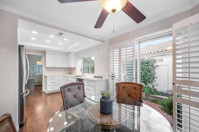 Welcome to Ocean Hills Country Club, one of Oceanside's most sought-after 55+ gated communities. Situated on a quiet cul-de-sac, this beautifully upgraded Costa Esmeralda floor plan offers 2 bedrooms and 2 bathrooms and lives primarily like a single-level residence, with a versatile upstairs loft ideal for a guest room, home office, hobby space, or den. The home features a thoughtfully remodeled kitchen, newer furnace and A/C, newer windows, upgraded kitchen and appliances and a newer water heater-providing comfort, efficiency, and peace of mind. Elegant details such as wainscoting, crown molding, and plantation shutters throughout add timeless charm. Custom built-in cabinetry in the living room, primary bedroom, and secondary bedroom offers both style and exceptional storage. Enjoy an unmatched resort-style lifestyle with access to a 27,000-square-foot clubhouse, an 18-hole executive golf course with no green fees, a solar-heated saltwater pool and spa, and lighted pickleball and tennis courts. The community also offers over 40 social clubs, a dog park, RV parking, and 24-hour security, creating an active, secure, and vibrant environment. An exceptional opportunity to enjoy Southern California 55+ living with comfort, community, and resort-style amenities.