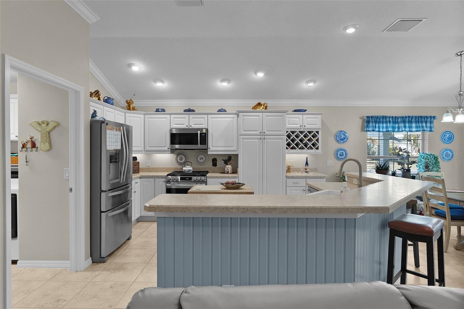 Beautifully maintained 3-bedroom, 2-bath home on a private corner lot in the Village of La Belle. Location, location, location! Close to Belle Glade Championship Country Club, with a friendly neighborhood pool just down the street and Burnsed Family Recreation Center only a short golf cart ride away. Conveniently located near shopping, including Walmart and Publix, as well as banks, healthcare facilities, and restaurants—all just minutes away. This home features an open floor plan with volume ceilings, crown molding, luxury vinyl plank and tile flooring, and abundant natural light. The kitchen offers white cabinetry, stainless steel appliances, breakfast bar, casual dining nook, and built-in wine rack. The spacious primary suite includes a tray ceiling, dual vanities, walk-in tiled shower, and custom walk-in closet. Guest accommodations include generously sized bedrooms, including a spacious guest room and a newly remodeled guest bathroom. Enjoy year-round living in the enclosed glass lanai, plus a pergola-covered patio for outdoor relaxation and added privacy. Additional features include a 2-car garage plus golf cart garage with epoxy flooring, indoor laundry with cabinetry, Nova water filtration system, and a 4-seat Yamaha golf cart included. Most furniture is included, making this home move-in ready. Home is equipped with gas service (rare in the area), with the option to convert back to electric if desired. Convenient access to golf, recreation, dining, shopping, and neighborhood amenities by golf cart.