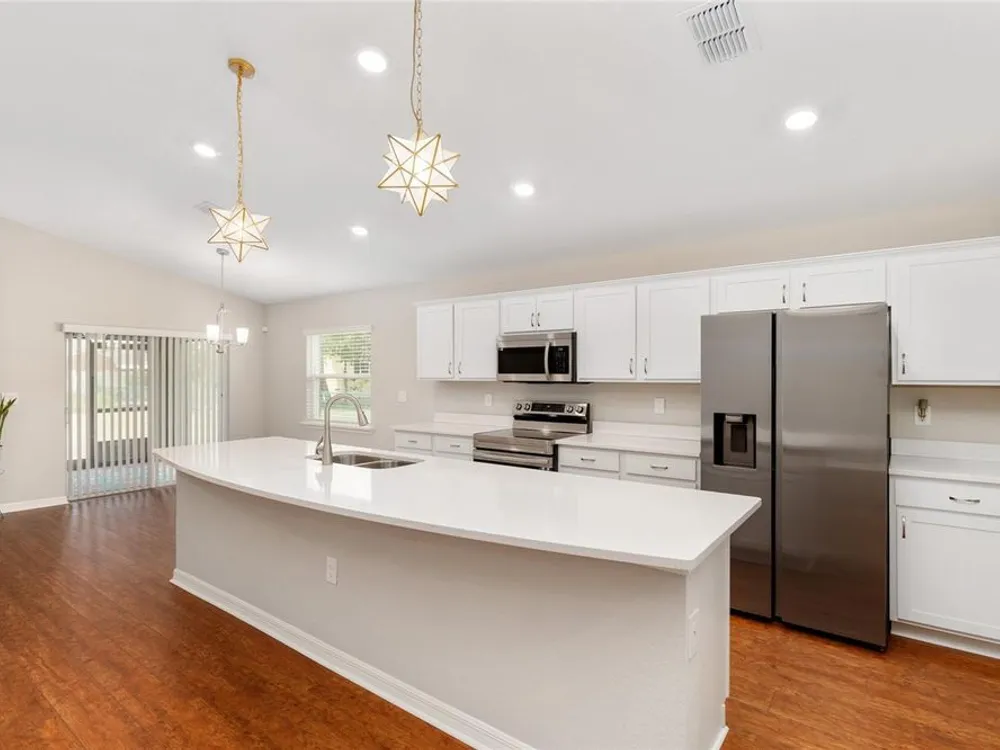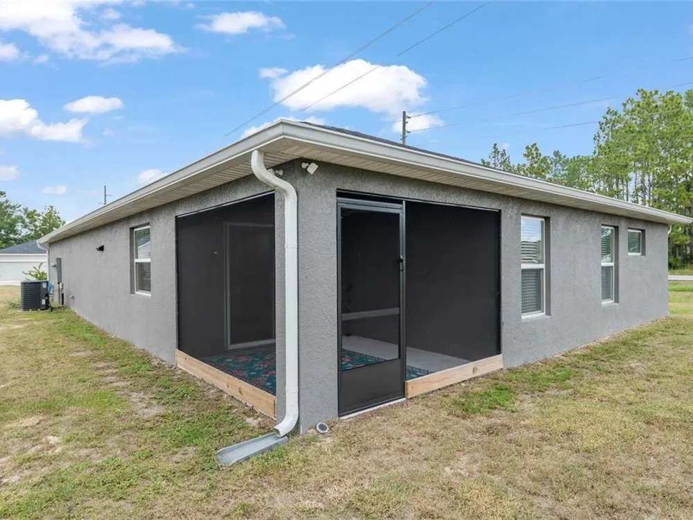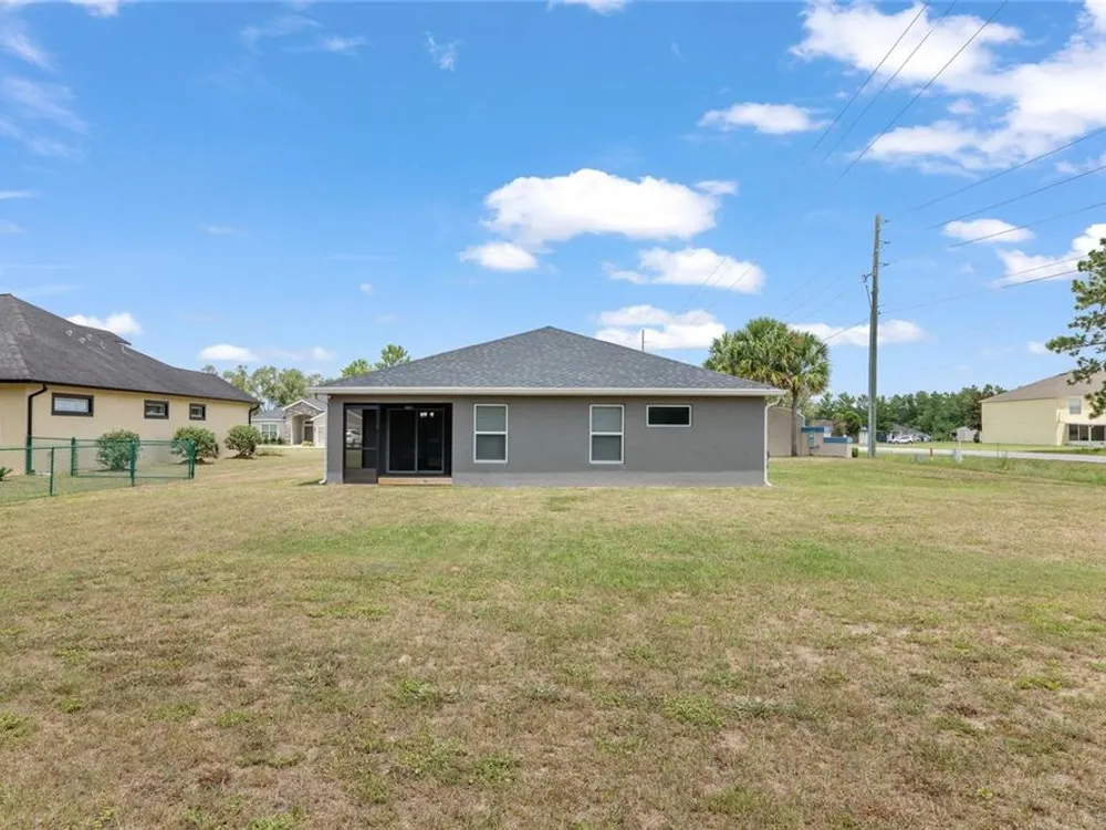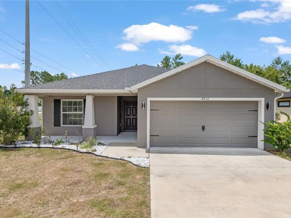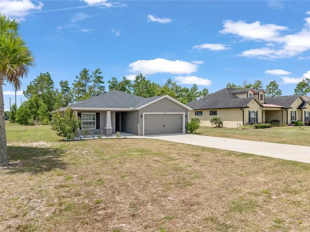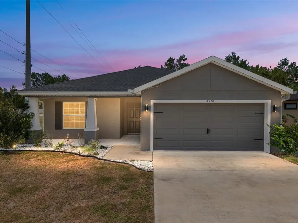 *Price Improvement* One or more photo(s) has been virtually staged. This 2022 Highland Homes - built home is packed with thoughtful upgrades and modern comforts, making it truly move-in ready. This home offers both beauty and peace of mind with smart features, stylish finishes, and a thoughtfully designed layout, all tucked within the sought-after Marco Polo II (all-ages) community, well-kept neighborhood where owners take pride. Situated on a spacious corner lot just under 1/2 an acre, you’ll have room to breathe while still enjoying a prime, central Ocala location that keeps you close to everything. The neighborhood bus stop for the nearby elementary and middle schools is just steps from your front door, making mornings a breeze for families. From the moment you arrive, you’ll notice the timeless charm of the front porch and the attention to detail inside. This 4 bedroom, 2 bath home features an open, split floor plan with luxury vinyl plank flooring throughout, absolutely no carpet! The home’s volume ceilings create a spacious, elegant feel. The kitchen is designed to blend form and function with a counter-height bar, walk-in pantry, and ample cabinet and counter space. Formal and casual dining areas offer flexible living options for everyday meals or entertaining. The owner’s suite is a true retreat with a large walk-in closet and spa-inspired ensuite featuring dual vanities, a garden tub, tiled walk-in shower, and a private toilet room. Upgrades include: Fully enclosed screened lanai with ceiling fan, epoxy-coated garage floors, upgraded light fixtures throughout, security system and Wi-Fi rechargeable exterior cameras, USB and USB-C outlets installed throughout the home, window blinds on all windows, and permanent exterior lighting for year-round curb appeal. Schedule your private showing today and experience the comfort and quality this home has to offer.