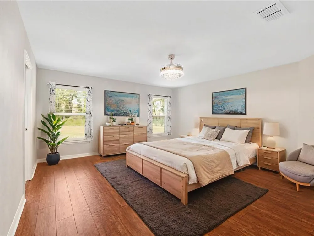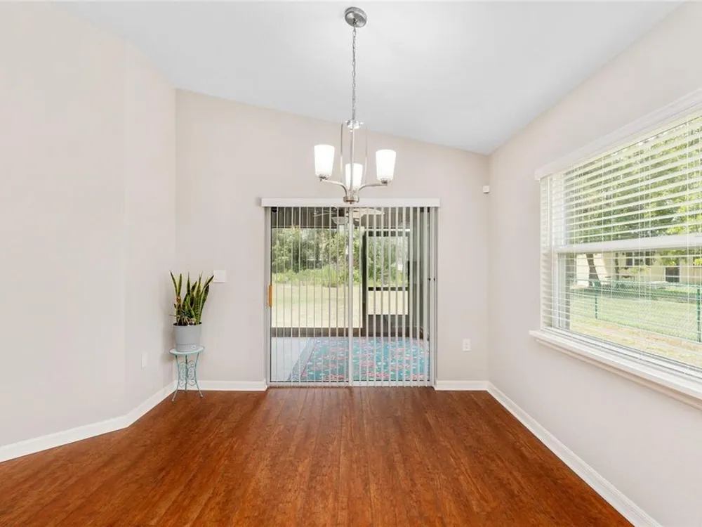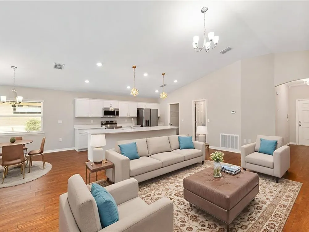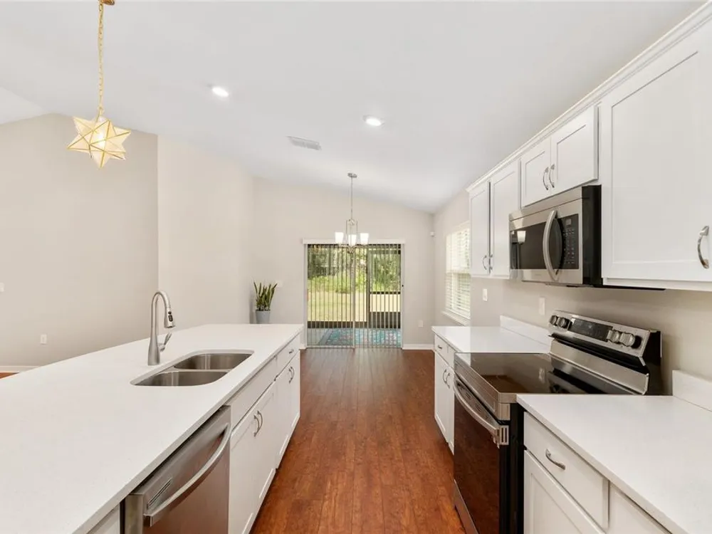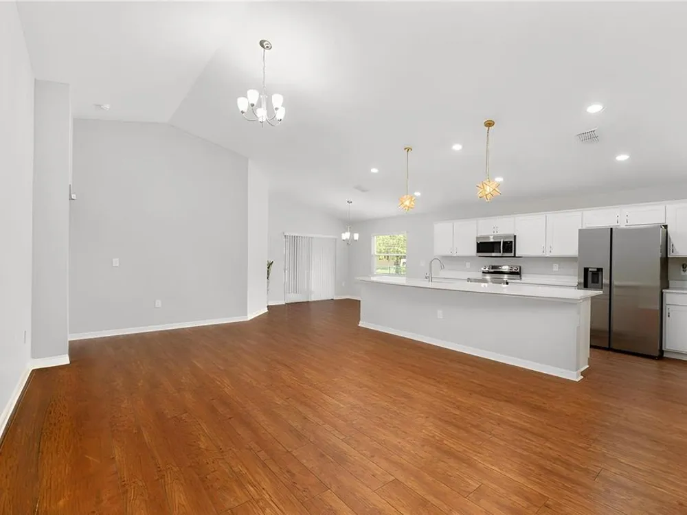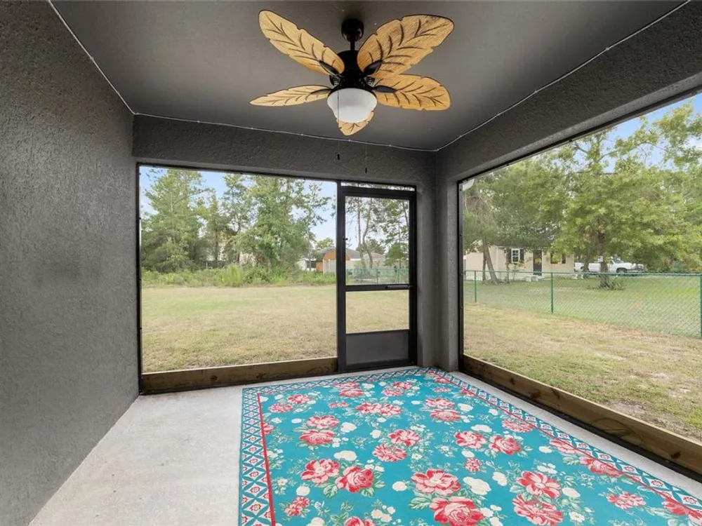 *Price Improvement* One or more photo(s) has been virtually staged. This 2022 Highland Homes - built home is packed with thoughtful upgrades and modern comforts, making it truly move-in ready. This home offers both beauty and peace of mind with smart features, stylish finishes, and a thoughtfully designed layout, all tucked within the sought-after Marco Polo II (all-ages) community, well-kept neighborhood where owners take pride. Situated on a spacious corner lot just under 1/2 an acre, you’ll have room to breathe while still enjoying a prime, central Ocala location that keeps you close to everything. The neighborhood bus stop for the nearby elementary and middle schools is just steps from your front door, making mornings a breeze for families. From the moment you arrive, you’ll notice the timeless charm of the front porch and the attention to detail inside. This 4 bedroom, 2 bath home features an open, split floor plan with luxury vinyl plank flooring throughout, absolutely no carpet! The home’s volume ceilings create a spacious, elegant feel. The kitchen is designed to blend form and function with a counter-height bar, walk-in pantry, and ample cabinet and counter space. Formal and casual dining areas offer flexible living options for everyday meals or entertaining. The owner’s suite is a true retreat with a large walk-in closet and spa-inspired ensuite featuring dual vanities, a garden tub, tiled walk-in shower, and a private toilet room. Upgrades include: Fully enclosed screened lanai with ceiling fan, epoxy-coated garage floors, upgraded light fixtures throughout, security system and Wi-Fi rechargeable exterior cameras, USB and USB-C outlets installed throughout the home, window blinds on all windows, and permanent exterior lighting for year-round curb appeal. Schedule your private showing today and experience the comfort and quality this home has to offer.