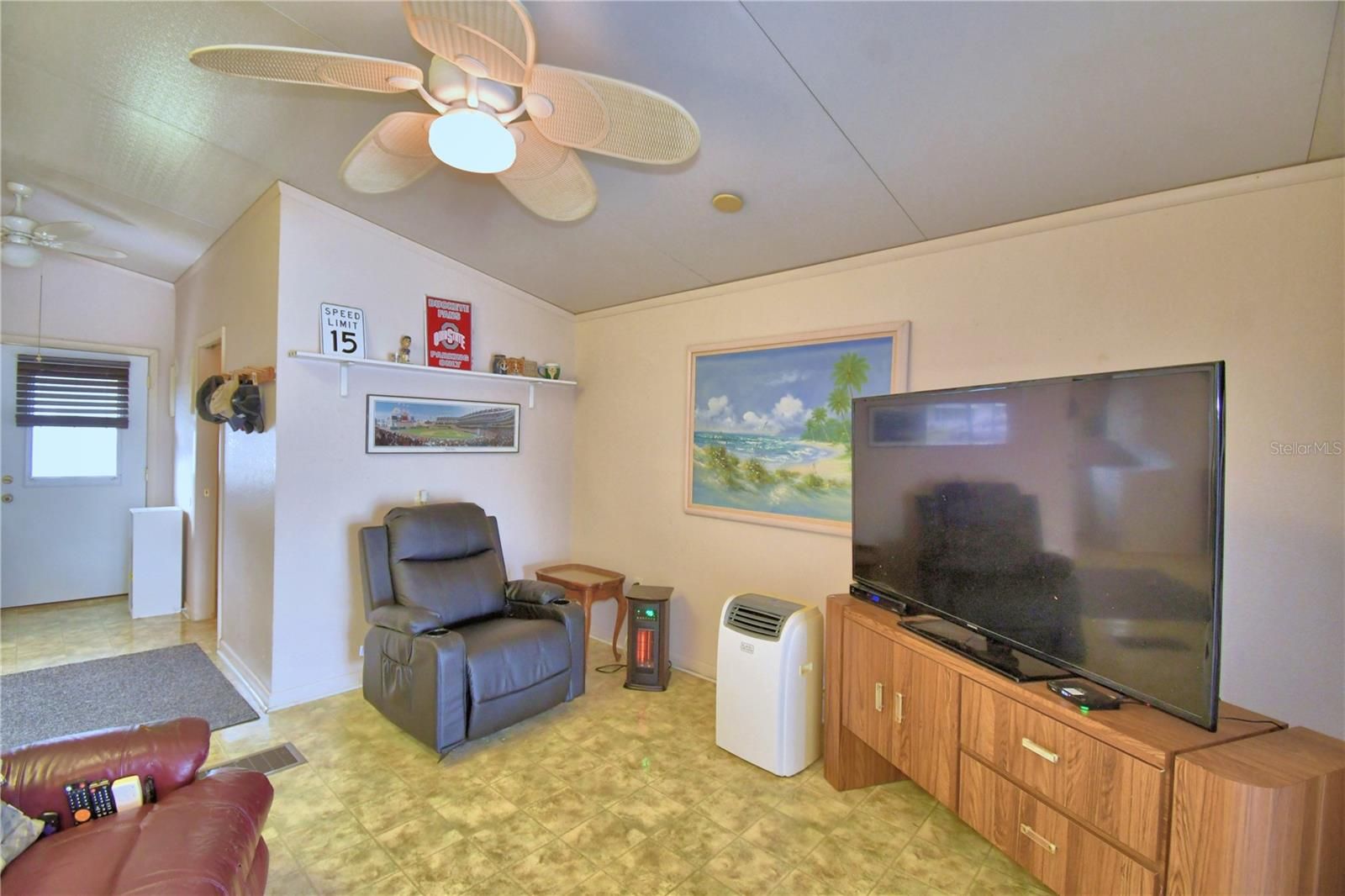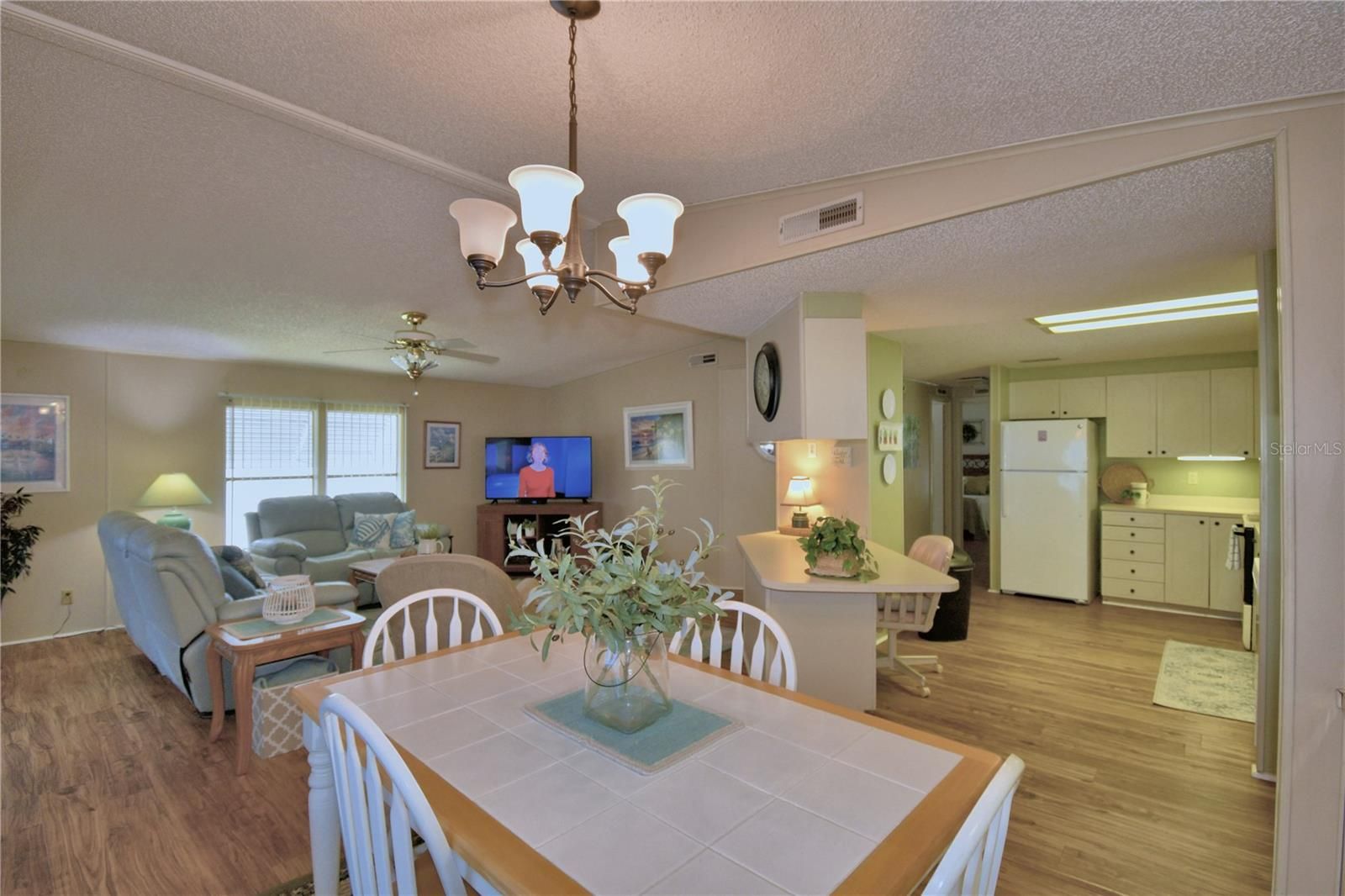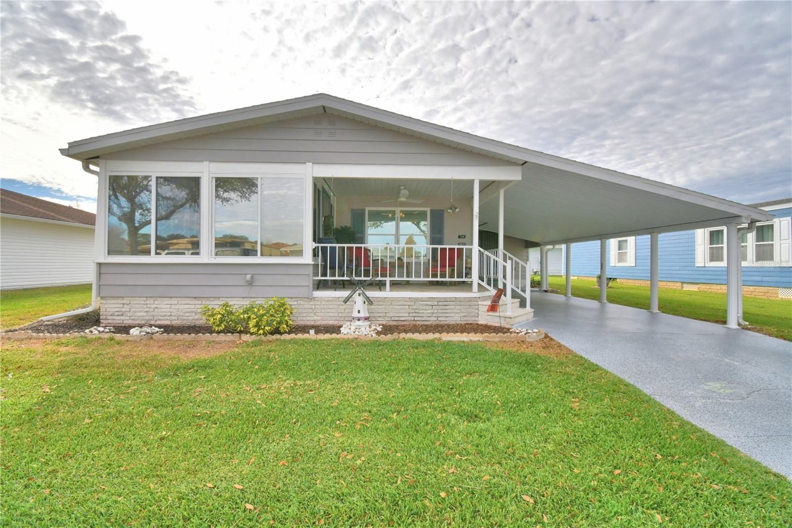 Welcome to carefree living in this beautifully maintained 2-bedroom, 2-bath home located in a gated 55+ community. Enjoy relaxing or catching a sunrise on your covered front porch and the convenience of a short walk to the clubhouse and all community amenities. Enjoy the added living space of a front enclosed lanai—ideal for relaxing or entertaining, and a perfect spot to enjoy Florida weather year around! This fully furnished, turn-key home features higher ceilings and laminate flooring throughout, creating a bright and open feel. The spacious master bedroom features an en suite bathroom with dedicated vanity space, a walk-in shower, and generous walk-in closet. A large bonus room offers flexibility as a potential third bedroom, craft room, or office/den and includes a very spacious storage area/walk-in closet. Separate doors leading to the backyard and another to access the carport. Additional highlights include a large carport, some new light fixtures and ceiling fans, a stacked washer and dryer, newer dishwasher, new glass slider, and the NEW ROOF was installed February 2025!! HOA fees cover lawn care, cable, and internet, making this an ideal home for easy, low-maintenance living. Just bring your suitcase and start enjoying the lifestyle!