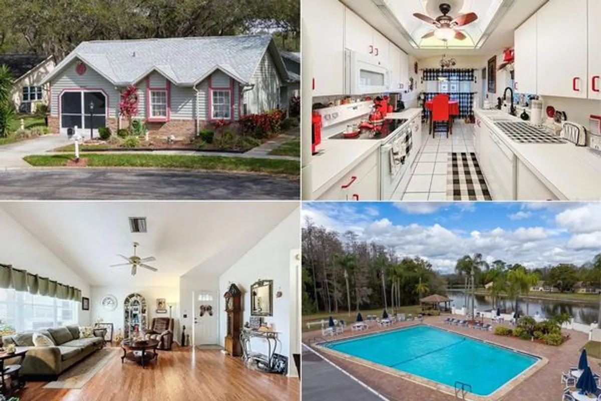 One or more photo(s) has been virtually staged. Beautiful stand-alone condo located in the equally beautiful and popular 55+ community of Heritage Lakes. This 2-bedroom, 2-bathroom 1 car garage home is well maintained and ready for a new homeowner. Enter the home into your open Livingroom and dining room combo space with high ceilings and plenty of natural light. Kitchen includes all major appliances and has plenty of counter space and room for a dinette. Primary bedroom has brand new floors and an on-suite bathroom and walk in closet. Perfect for an owner's retreat. The guest bedroom also has brand new flooring and large closet. This home also features a great patio space for morning coffee next to an empty lot with shade trees and a peaceful atmosphere. The community is just as great as the home. You will be located close to everything in the Trinity area. There is a clubhouse with many activities, clubs, and dances. You will have access to the community pool, tennis, pickle ball and shuffleboard courts. This community is maintenance free including lawncare, house painting, pest control, and irrigation repairs. Roof, A/c and water heater have all been recently replaced. Everything is done. All you have to do is move in and relax!!