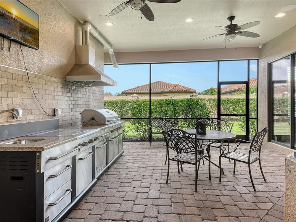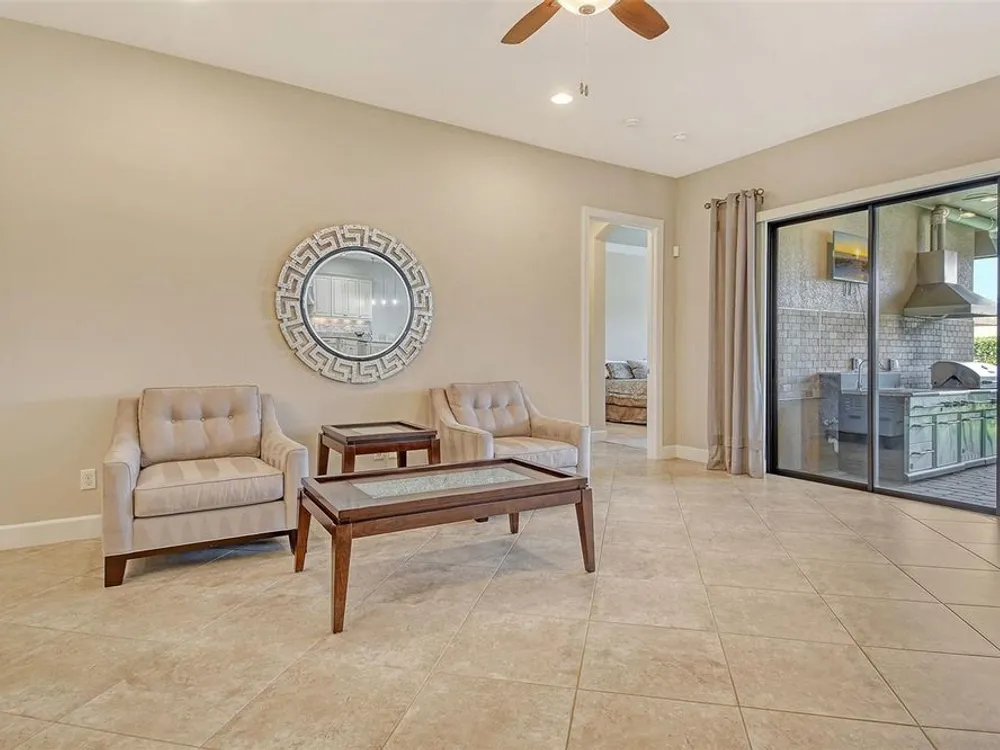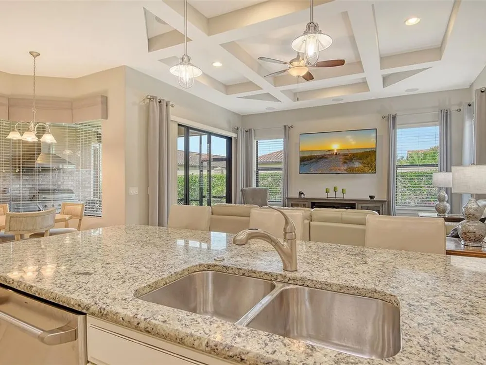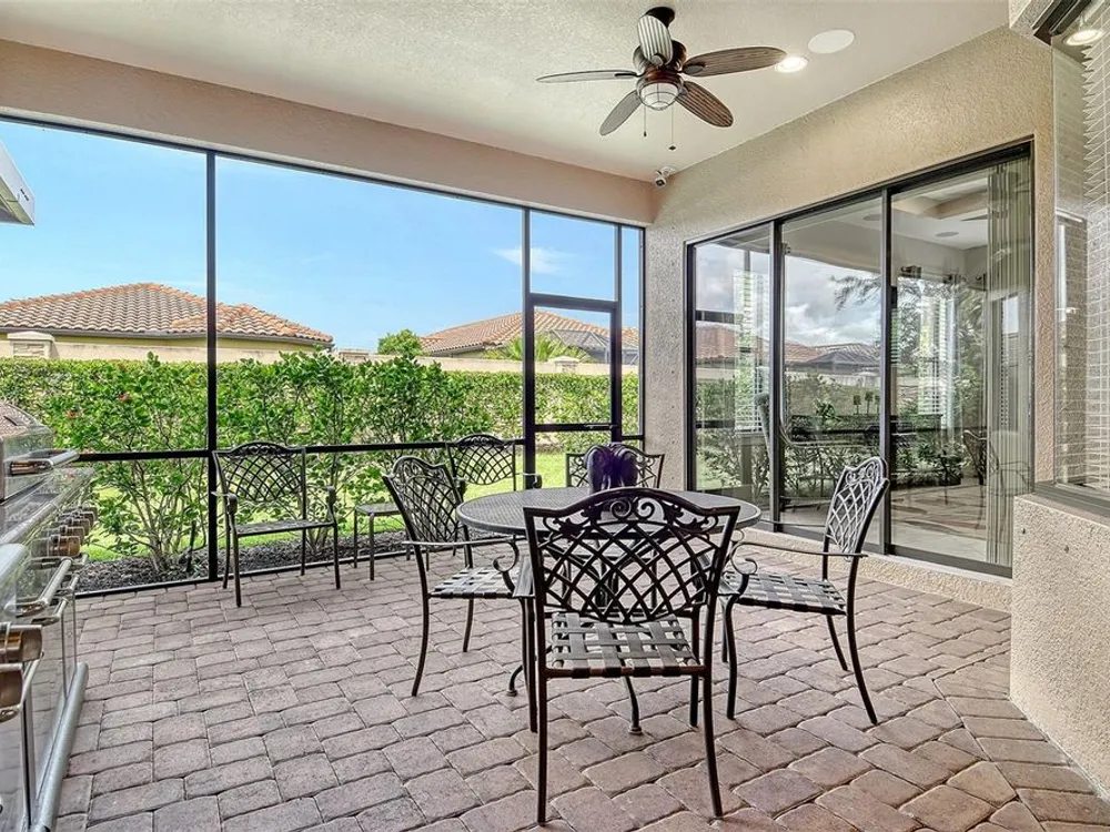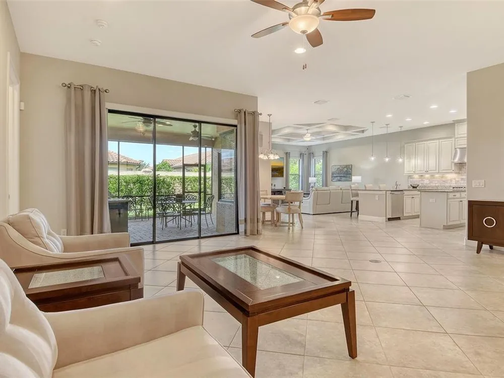 WELCOME HOME to your BELLA CASA VII Floorplan. Very few of this floorplan were built and even fewer become available! Open and airy, this floorplan provides nearly 3000 sq ft of under air living space while delivering the spaciousness desired in a great floorplan with a uniqueness all its own. Offering three bedrooms all on suites with an additional powder room and den! Tray ceiling in the family room brings that special touch to the family room area while keeping the other ceilings in the home transitional in design. The home's neutral color palette makes it a decorator's delight. A large quartz island with pendant lighting along with GE stainless steel appliances including a gas cooktop with built in oven and microwave makes this kitchen highly functional and very attractive. Surround sound throughout. The tandem garage is currently a built-out area which can function in a variety of ways with air condition for a wine room or the current owner would be happy to remove convert it back to open extra garage space. The Full-Home Kohler Generator provides added peace of mind. Home Warranty Included. GOLF MEMBERSHIP IS INCLUDED in the HOA fees. Enjoy playing on your 18-hole championship course as you enjoy all the resort-style amenities provided. Enjoy the onsite world class culinary center. Enjoy all the wonderful dining options for dining out within leaving your private gated community. The Tiki Bar, The Bahama Bar, The Barrel House. Numerous ways to get your steps in -pickle ball courts, tennis, bocce ball then you can cool down on of the two pools and spa. Wellness programs, fitness center with full time activities director on site! Let's not forget the playground and dog park! The home is one block away from all these neighborhood activities. Esplanade Golf and Country Clubs is one of Lakewood Ranch's premier Golf and Country Club Communities and Lakewood Ranch is one of the top ranked Master Planned Community in America! Yes, it is all about the Floorplan and the Location.