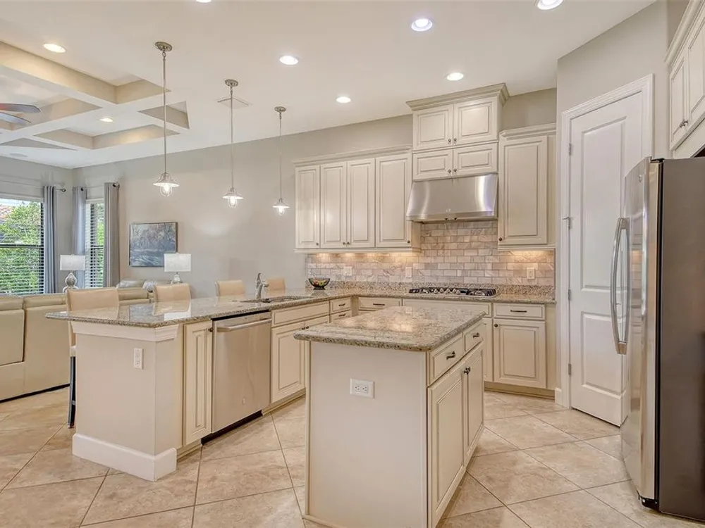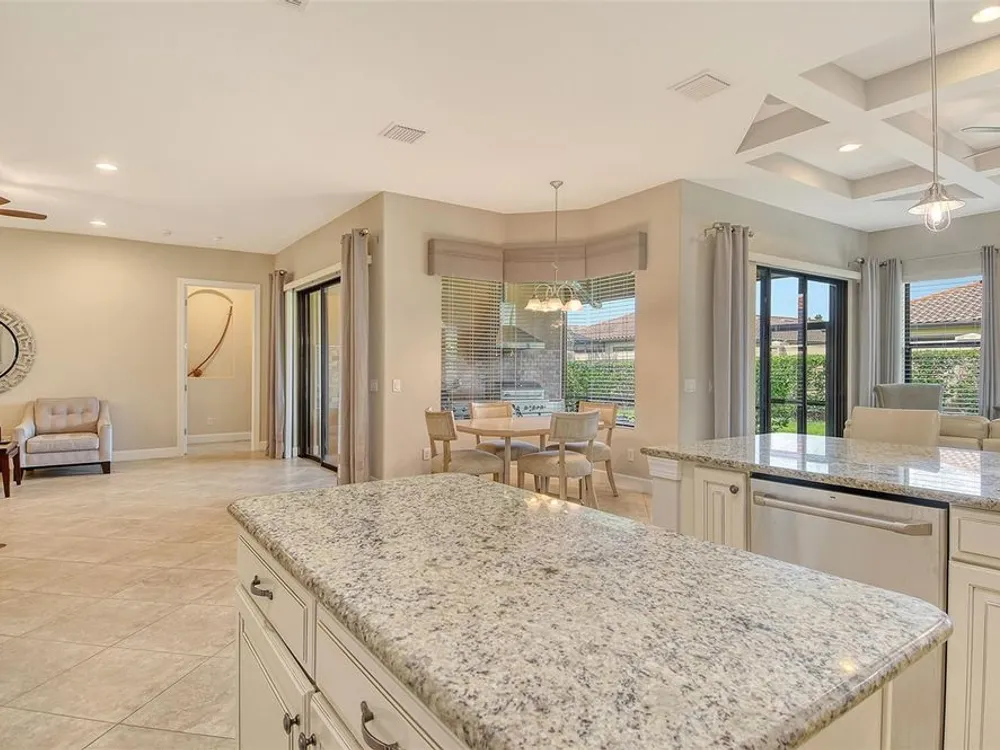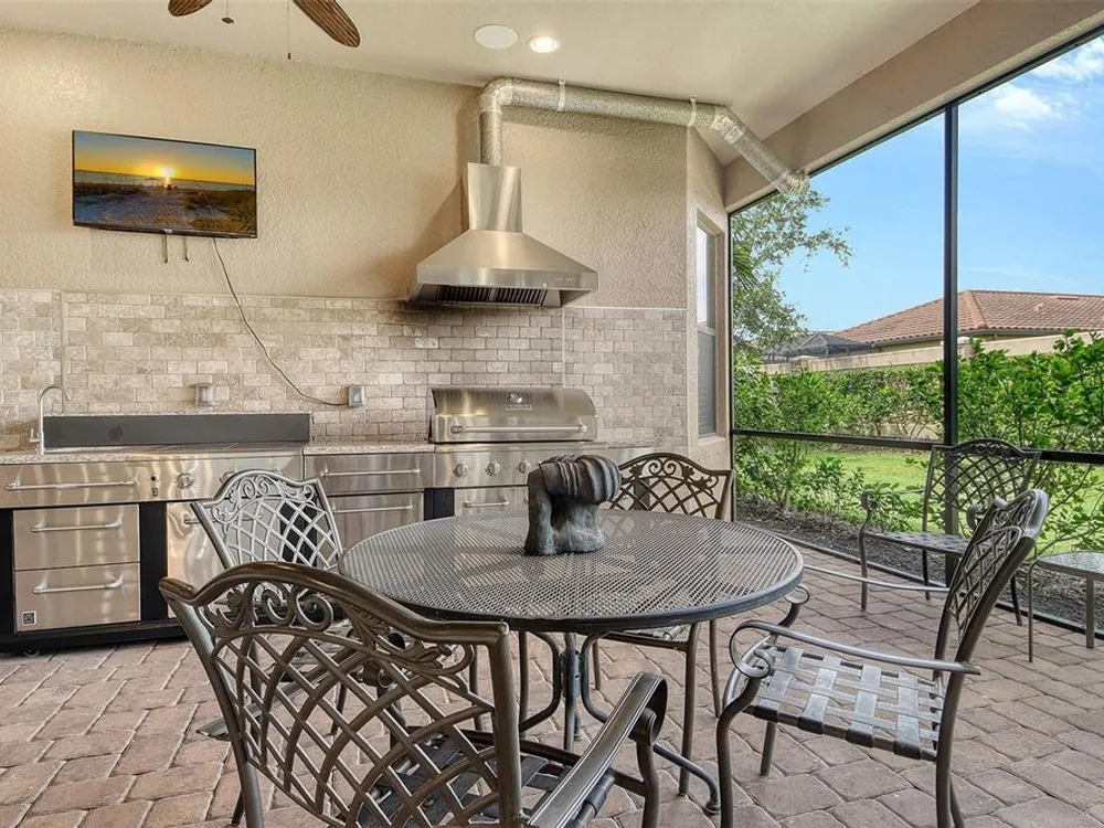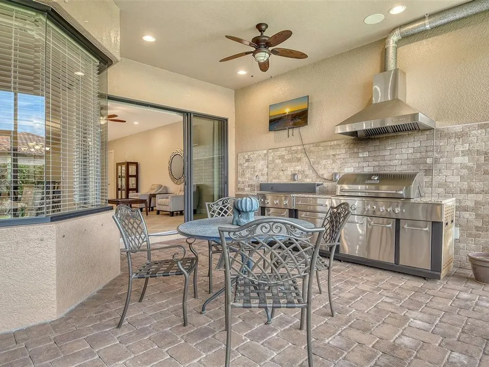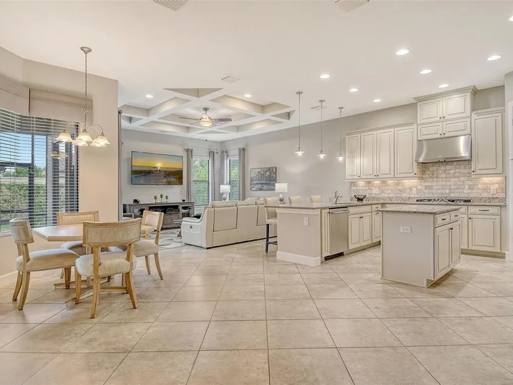 WELCOME HOME to your BELLA CASA VII Floorplan. Very few of this floorplan were built and even fewer become available! Open and airy, this floorplan provides nearly 3000 sq ft of under air living space while delivering the spaciousness desired in a great floorplan with a uniqueness all its own. Offering three bedrooms all on suites with an additional powder room and den! Tray ceiling in the family room brings that special touch to the family room area while keeping the other ceilings in the home transitional in design. The home's neutral color palette makes it a decorator's delight. A large quartz island with pendant lighting along with GE stainless steel appliances including a gas cooktop with built in oven and microwave makes this kitchen highly functional and very attractive. Surround sound throughout. The tandem garage is currently a built-out area which can function in a variety of ways with air condition for a wine room or the current owner would be happy to remove convert it back to open extra garage space. The Full-Home Kohler Generator provides added peace of mind. Home Warranty Included. GOLF MEMBERSHIP IS INCLUDED in the HOA fees. Enjoy playing on your 18-hole championship course as you enjoy all the resort-style amenities provided. Enjoy the onsite world class culinary center. Enjoy all the wonderful dining options for dining out within leaving your private gated community. The Tiki Bar, The Bahama Bar, The Barrel House. Numerous ways to get your steps in -pickle ball courts, tennis, bocce ball then you can cool down on of the two pools and spa. Wellness programs, fitness center with full time activities director on site! Let's not forget the playground and dog park! The home is one block away from all these neighborhood activities. Esplanade Golf and Country Clubs is one of Lakewood Ranch's premier Golf and Country Club Communities and Lakewood Ranch is one of the top ranked Master Planned Community in America! Yes, it is all about the Floorplan and the Location.