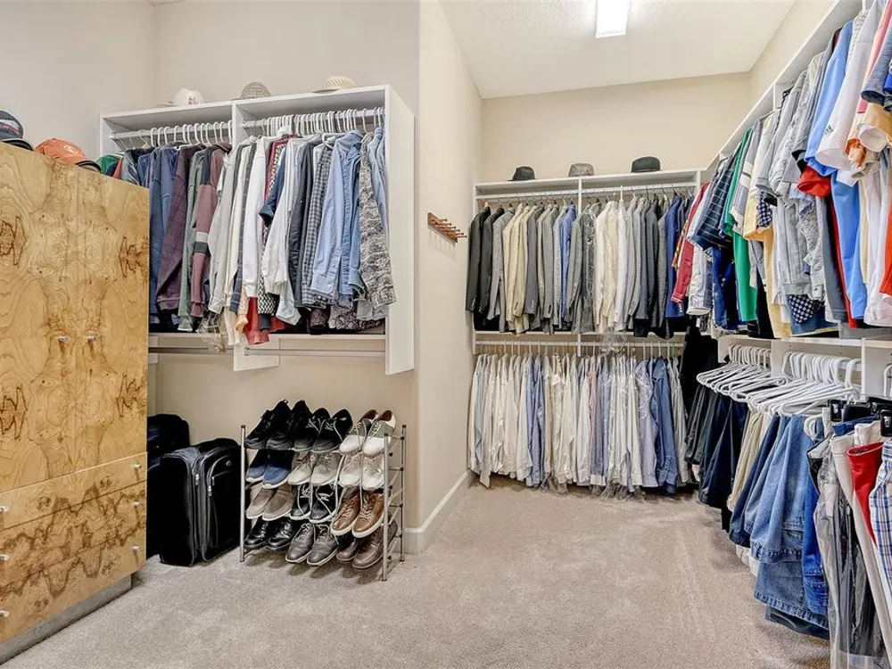 - Eat-in Kitchen, L-Shaped Dining Room, Main Level Primary, Walk-In Closet(s), Window Treatments