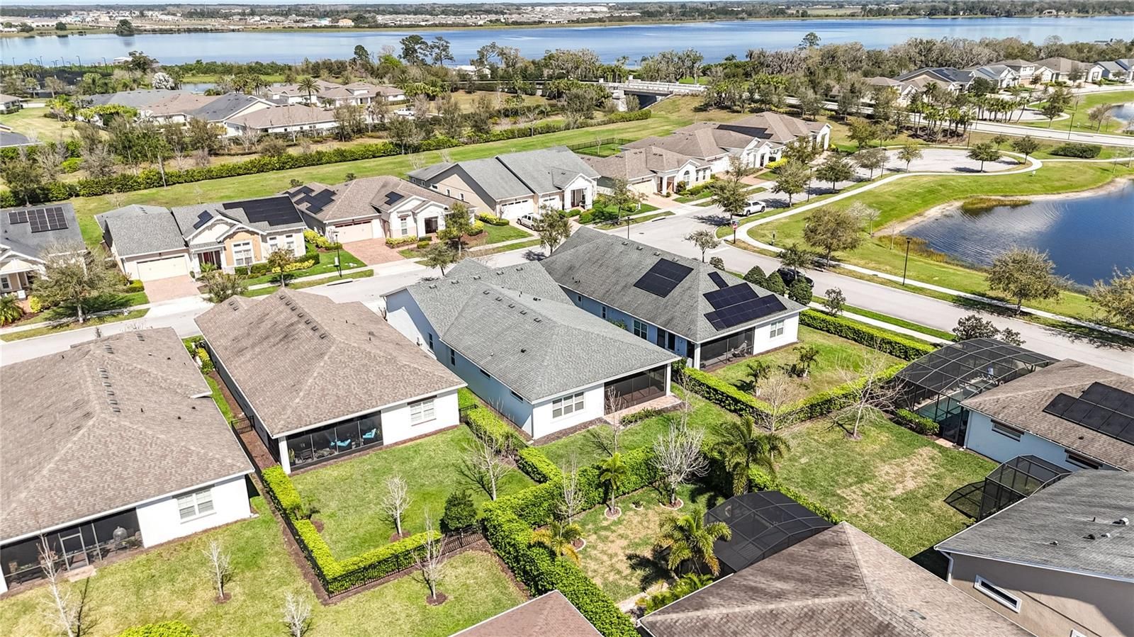 Present owner spent over 10K for upgrades, via., screen walls for the patio, seamless gutters, walkway pavers next to Patio etc., Epoxy Garage floor, Storage racks in Garage. Phase I has four ponds at the four-road junction with a beautiful view of the 4 fountains, making it extremely pleasant to walk around and walk to the club house. It's a 5-minute walk to the club house. Seller offering home warranty with American Home Shield. Marco floor plan located in the well sought after Twin Lakes 55+ Active lifestyle community. This property has so much to offer. 3 Bedrooms and 3 Full baths, you could use the 2nd bedroom as a second master bedroom suite. Den/Study/office area. Step inside to the 10' Ceiling with the flexible layout and neutral coloring custom paint. Large 16' Island. Ceramic Tile throughout home. Kitchen is well equipped with 42" upgraded cabinets, custom glass tile backsplash, double sink, pendant lights, and a very large granite island that accommodates setting for a quick bite. large walk-in pantry, Stainless steel appliances, Gourmet Custom kitchen hood fan, Microwave and oven combination. Separate drop zone area with cabinets and granite countertops. Living room features large glass sliding doors that open all the way for entertaining in the screened in Lanai. Backyard with the upgraded landscaping package & Fence for privacy. Master bedroom with tray ceiling, ceiling fan. Large walk-in closet. Frameless shower doors to master luxurious two separate shower heads & Custom granite vanity. Amenities include a Resort style pool and Lap Pool and 3rd pool on the carriage house side, 20,000 square foot Clubhouse, State of the art Fitness Center, Tennis Courts, Putting Green, Walking Trails, Pickle Ball Court, Fishing, and Pontoon Boats and Jon boat to use on Live Oak Lake! The community has many active and socializing activities to keep you VERY busy!! All of this in a GREAT gated community located in Central Florida close to Lake Nona Medical City, Orlando, Orlando International Airport, Theme Parks, and Brevard Beaches!