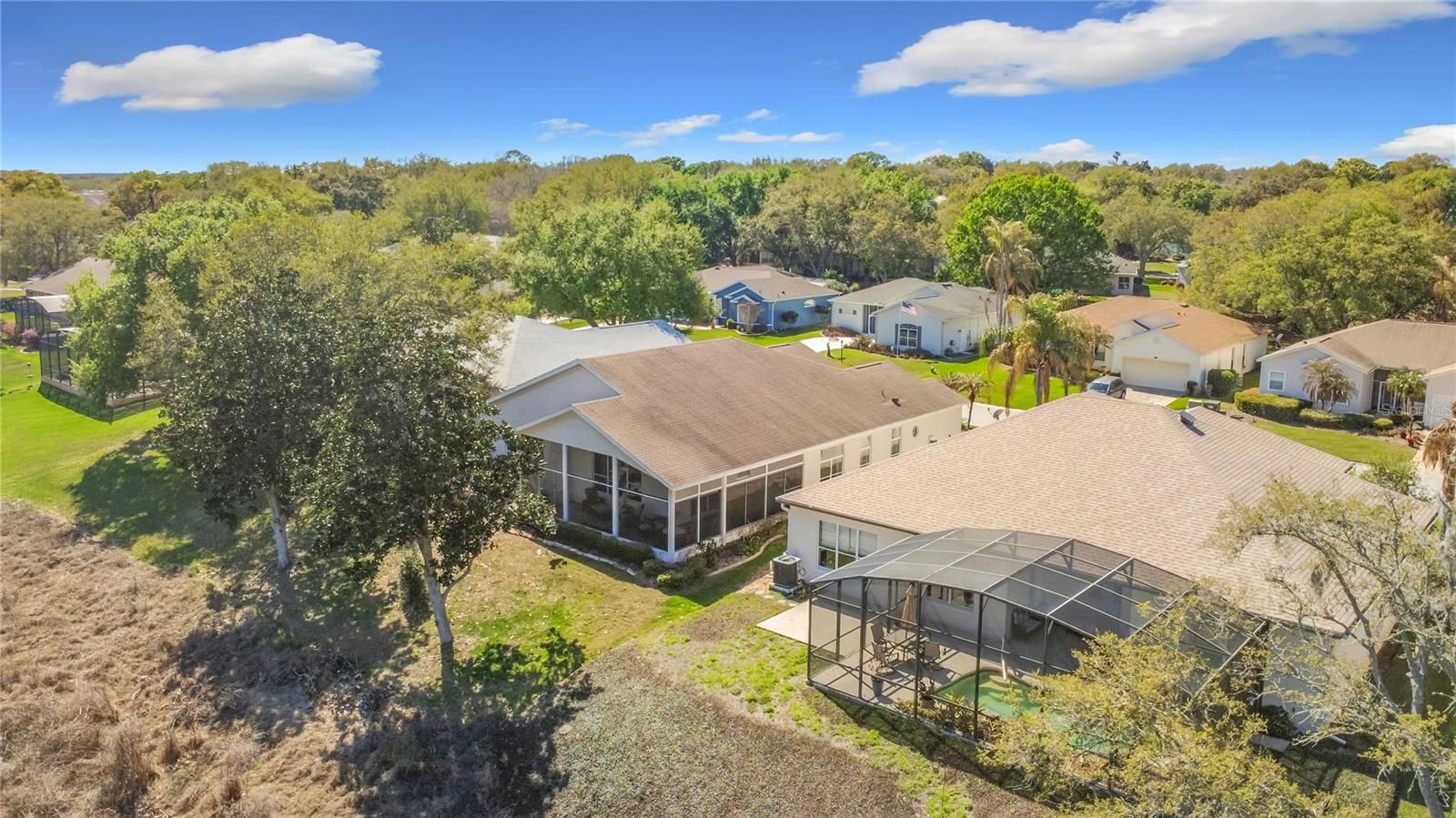 Stunning Golf Course Home Perfect for Entertaining & All Furniture, Furnishings & Golf Cart are Negotiable! Nestled on a quiet cul-de-sac in the charming and sought-after Village of Long Meadow in Plantation at Leesburg, this beautiful home is designed with entertaining in mind. The majestic dining room features elegant crown molding and convenient access to a wet bar, making it perfect for hosting gatherings. The spacious family room, currently used as a game room, offers a versatile space for relaxing or entertaining guests.The open-concept kitchen boasts abundant cabinetry, expansive Corian countertops, and a functional center island, all overlooking the impressive great room. A bright dinette area with French doors opens to a wraparound lanai—ideal for enjoying Florida’s indoor-outdoor lifestyle. The oversized primary suite offers a fantastic walk-in closet with built-in California-style shelving, an additional linen closet, and a luxurious en-suite bath featuring a soaking tub, dual vanities, and a walk-in shower. At the front of the home, you’ll find a charming guest bedroom along with a den/office and a convenient half bath, providing comfort and privacy for visitors. Situated on the scenic Cranes Roost Golf Course, the property offers stunning views and added privacy. Additional highlights include beautiful laminate wood flooring, neutral tile throughout, a roof replaced in April 2018, and a new HVAC system installed in January 2019. This magnificent home combines comfort, style, and a prime golf course location—perfect for enjoying the best of Florida living. The Plantation at Leesburg is A Premier 55+ Active Lifestyle Community. Enjoy leisurely rounds of golf on two beautifully maintained 18-hole championship courses, or stay active on lighted tennis courts perfect for evening matches. Unwind by one of three sparkling pools and Jacuzzis, or embrace a healthy lifestyle with access to world-class fitness centers, volleyball, and pickleball courts. With over 100 planned activities each week, there’s always something exciting to look forward to—whether it’s social gatherings, fitness classes, or hobby clubs. The community is set against a backdrop of scenic, landscaped boulevards and tranquil lakes, offering the perfect setting for fishing, walking, or simply relaxing in nature.Three expansive clubhouses serve as hubs of activity and connection, while an on-site restaurant offers delicious dining just steps from your door, everything you need to enjoy a vibrant, fulfilling lifestyle is right at your fingertips.