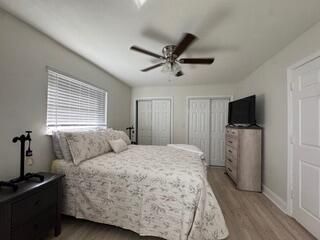 WOW this home is a must see! Freshly painted interior, kit updated with white shaker cabinets, stainless steel appliances, Newer Central AC , both bath rooms recently updated 2025 & 2026 plus a 3rd additional room which is a perfect office or a den, newer washer & dryer & a family room also for additional space, brand new luxury vinyl flooring throughout (2026), upgraded lighting fixtures, 1 car garage for extra storage, hurricane accordion shutters throughout. Make an appointment to see this lovely home. 55+ residents only. FYI mo maintenance of $100 includes lawn & pool service.