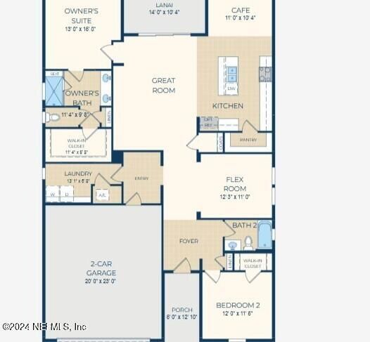 Welcome to the Casper - a thoughtfully designed residence in The Meadows Collection at Reverie at Silverleaf, where luxury meets effortless living. This sophisticated 1,836 square foot home showcases an innovative floor plan that masterfully balances private retreats with engaging social spaces. The owner's suite serves as a personal sanctuary, featuring a spacious walk-in closet and a luxurious en-suite bathroom with dual vanities. The versatile flex room can transform into a third bedroom, home office, or creative studio, adapting seamlessly to your evolving needs. At the heart of the Casper lies a stunning great room that flows naturally into a gourmet kitchen, creating an ideal setting for both everyday living and elegant entertaining. The covered lanai extends your living space outdoors, perfect for enjoying morning coffee or evening relaxation. A dedicated café space adds an intimate touch for casual dining or a cozy reading nook.