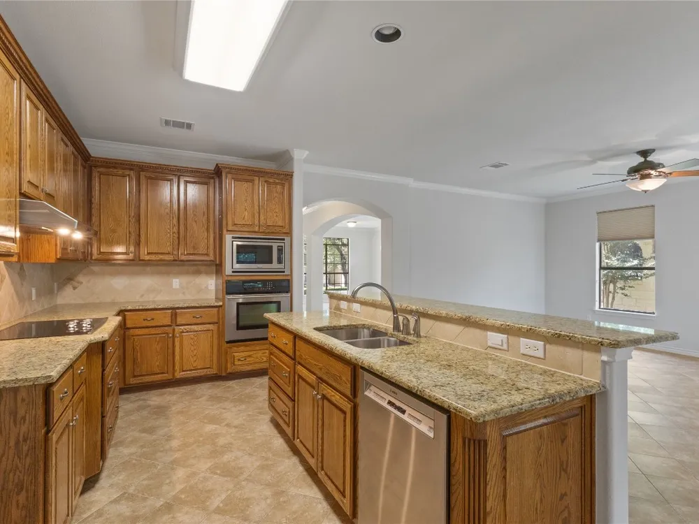 - Built-In Oven, Dishwasher, Electric Cooktop, Exhaust Fan, Gas Water Heater, Microwave, Plumbed For Ice Maker, Refrigerator, Stainless Steel Appliance(s), Vented Exhaust Fan