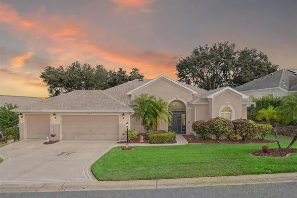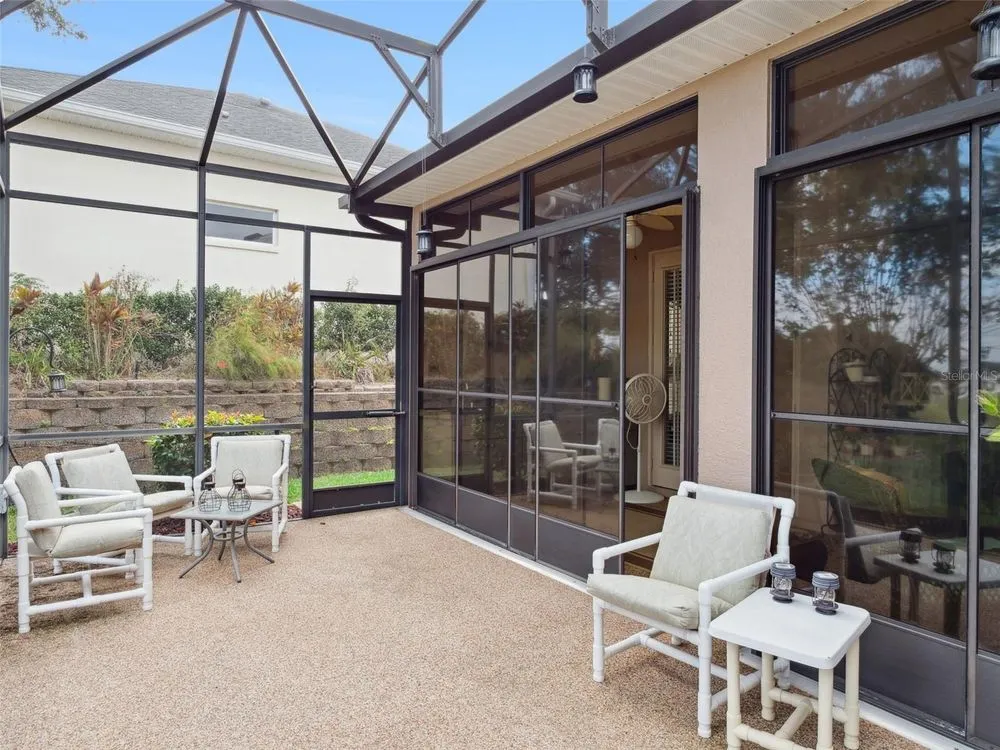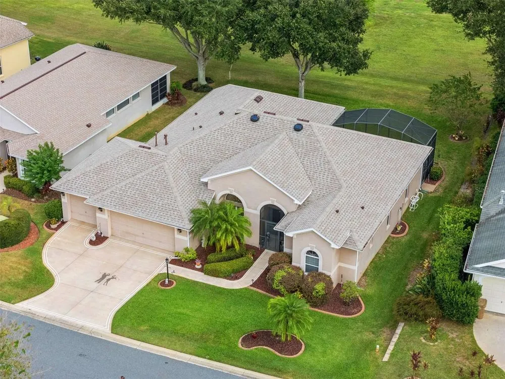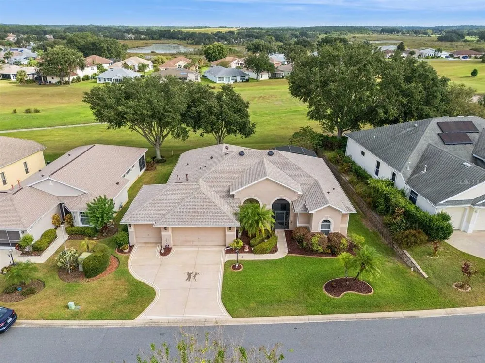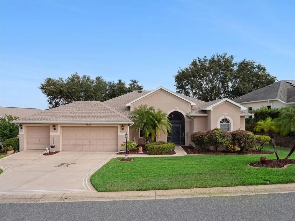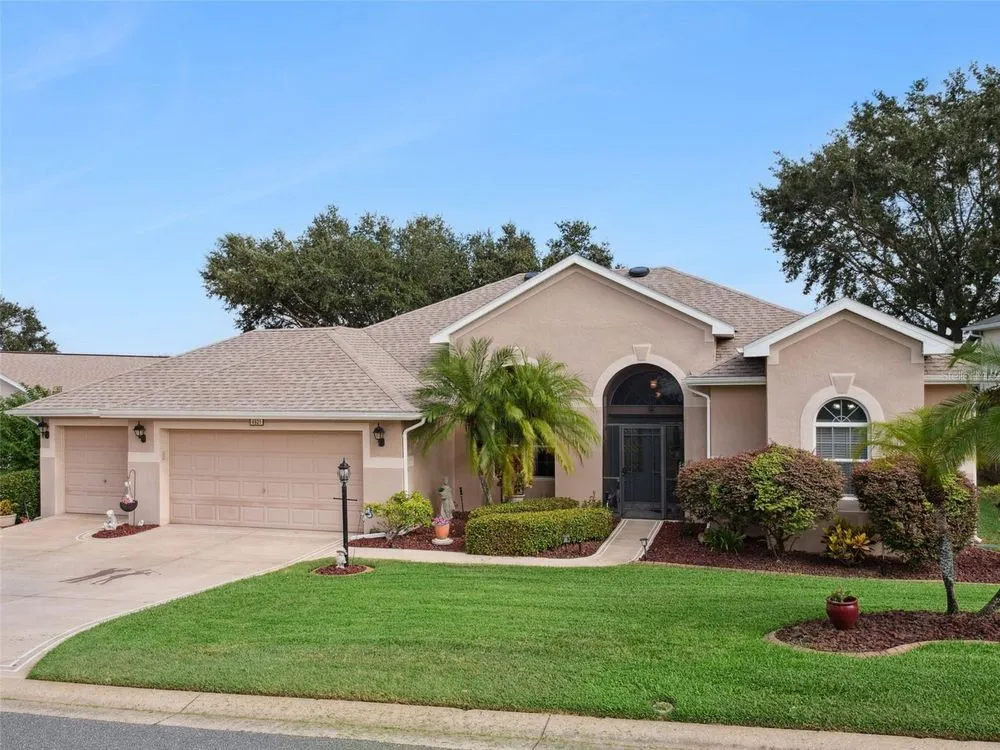 Welcome to your future home! A place where comfort, style, and golf front living come together in perfect harmony. This exceptional three-bedroom, two-bathroom Monarch Model home with a golf cart garage is an unparalleled opportunity for discerning buyers looking for their Florida retreat. A home built for entertaining with stunning curb appeal, guaranteed to captivate you upon arrival. The double door screened entry has a stately elegance and draws your eyes to the 16th fairway through the glass sliding doors. The interior space has been thoughtfully designed with both formal and casual dining and living areas. For the culinary enthusiast, the kitchen features stainless appliances just two years young! Generous prep space with seating, open concept, and access to the Florida Room overlooking the golf course will only pique your interest. The details include crown molding, split bedroom floor plan, a Summer Kitchen with gas grill & sink, Pebble Floor, expanded outdoor area with screen enclosure, and lots of closet space! The primary suite provides it's owners a Roman Shower, Garden Tub, solid surface counters, and private commode. The guest quarters are just as lovely and give your family privacy and comfort with ample closets and plenty of room. Additionally, the home offers built-ins, an extra refrigerator in the golf cart garage, arched windows, and views of the course from nearly every room! If space with high ceilings, views, and gorgeous curb appeal are must-haves, this could be the ONE! 2024 Roof! 2020 HVAC! Call for a tour today! Royal Highlands is an active 55+ golf community with two pools, fitness center, courts, Great Hall, restaurant and more! Great proximity to the turnpike, airports, shopping and amusement parks. Come see what Lake County, Florida has to offer you!